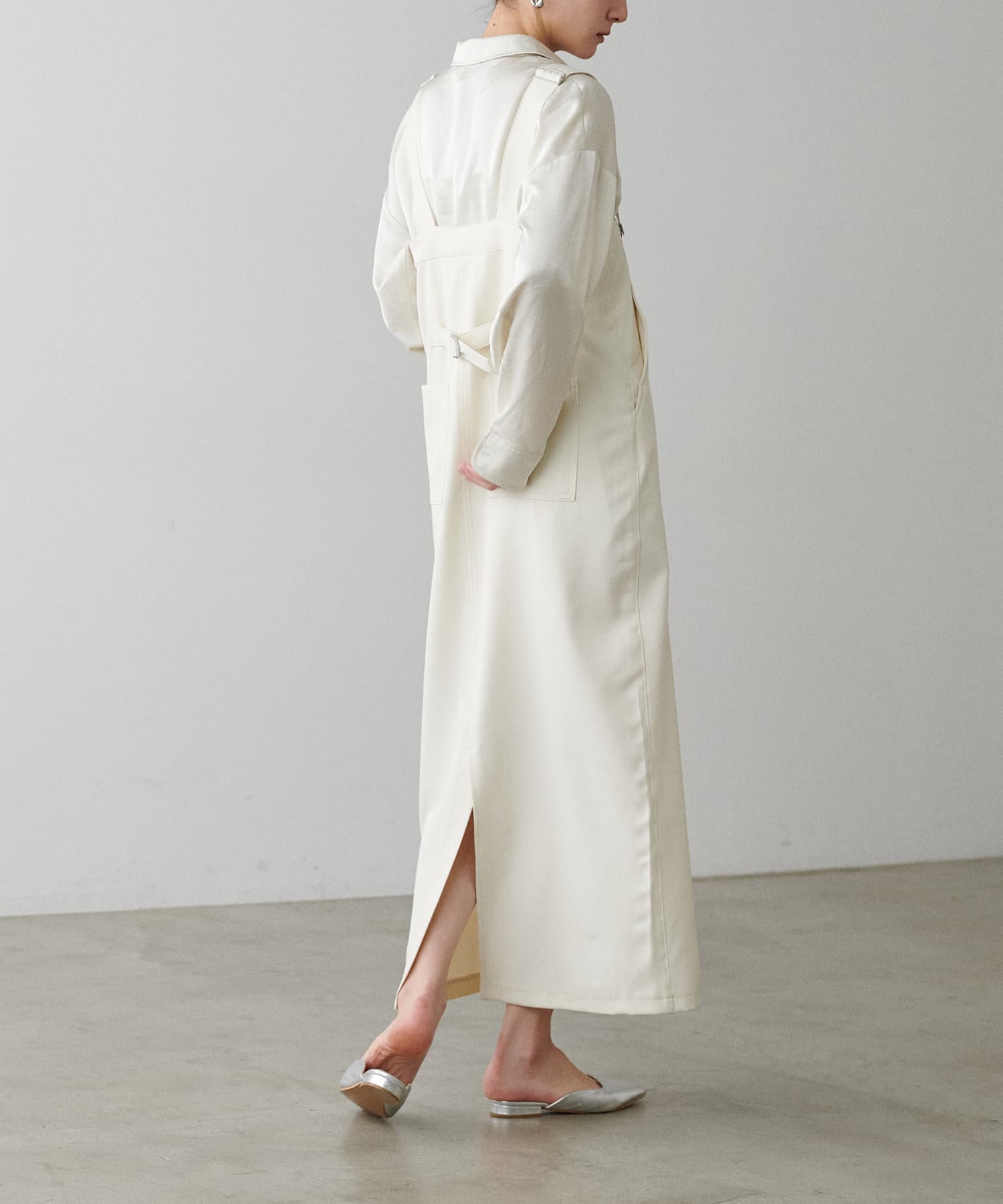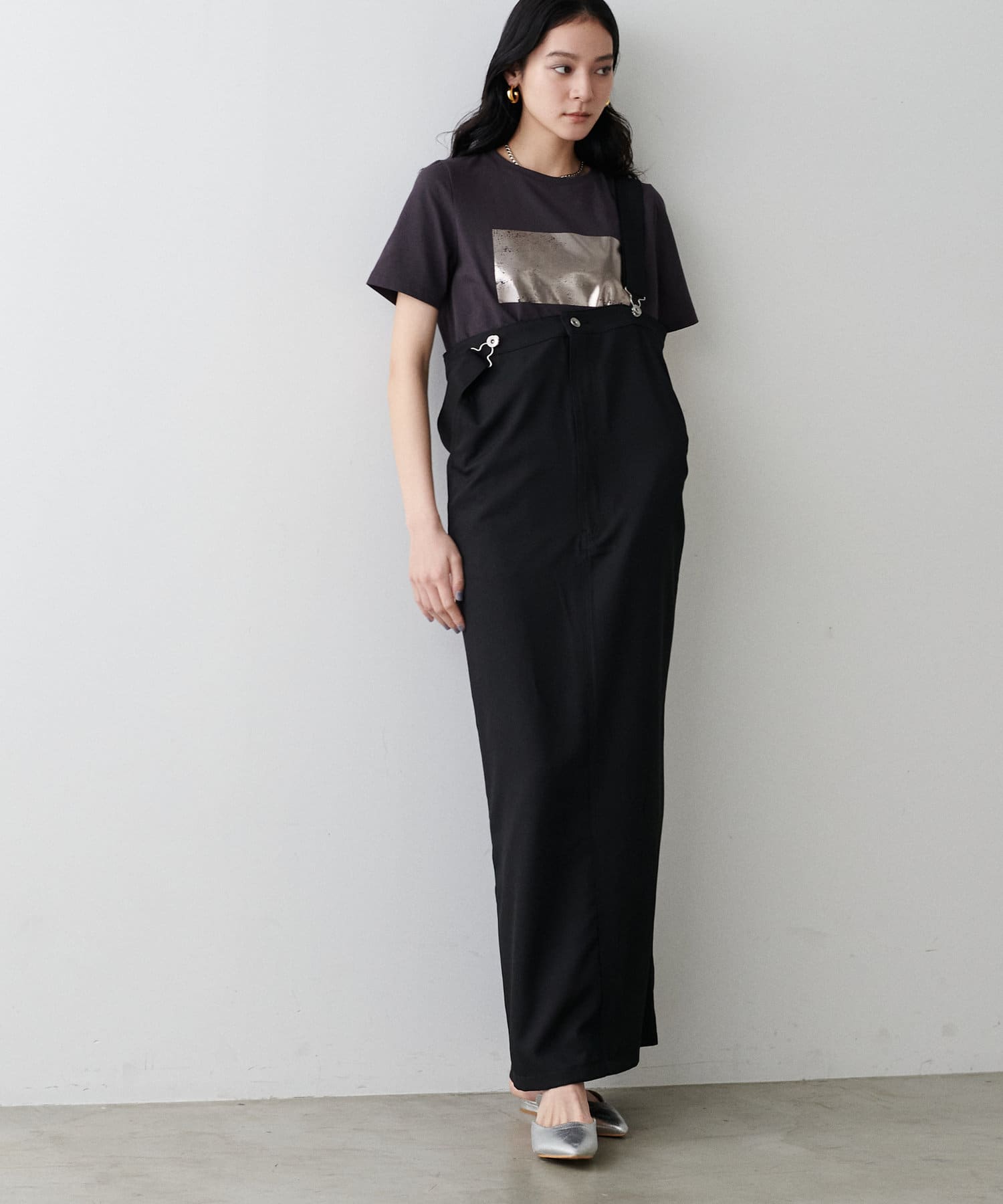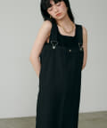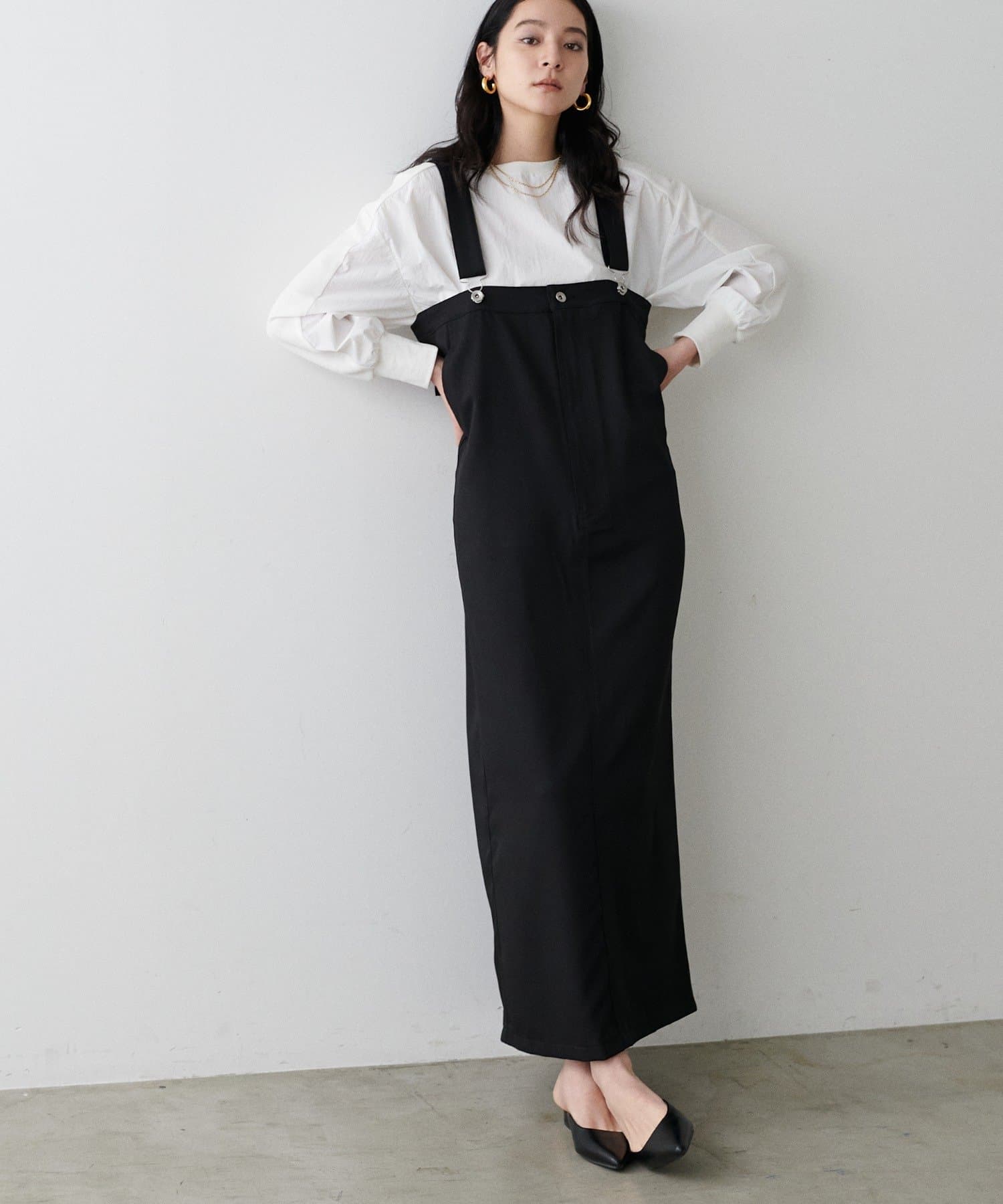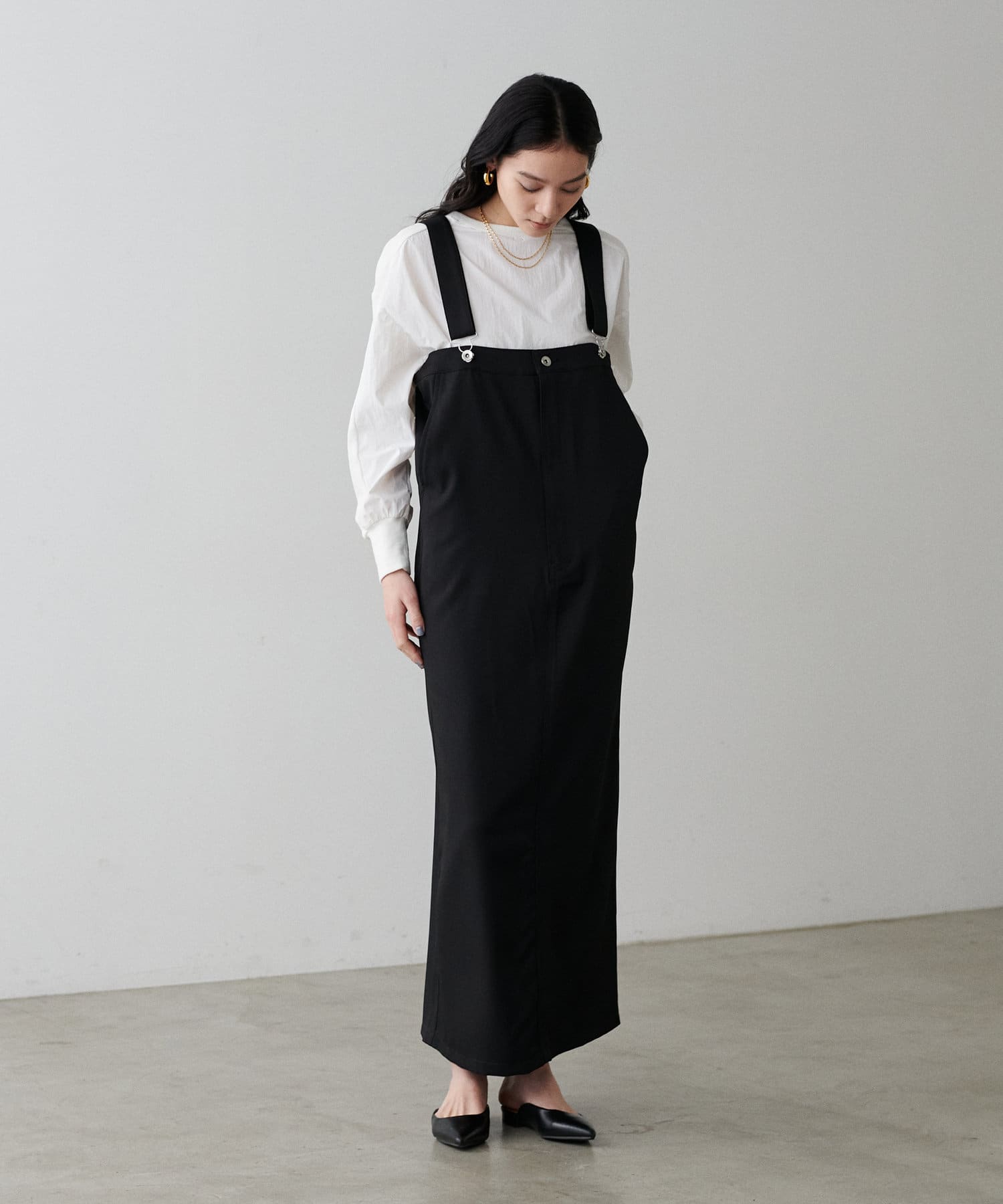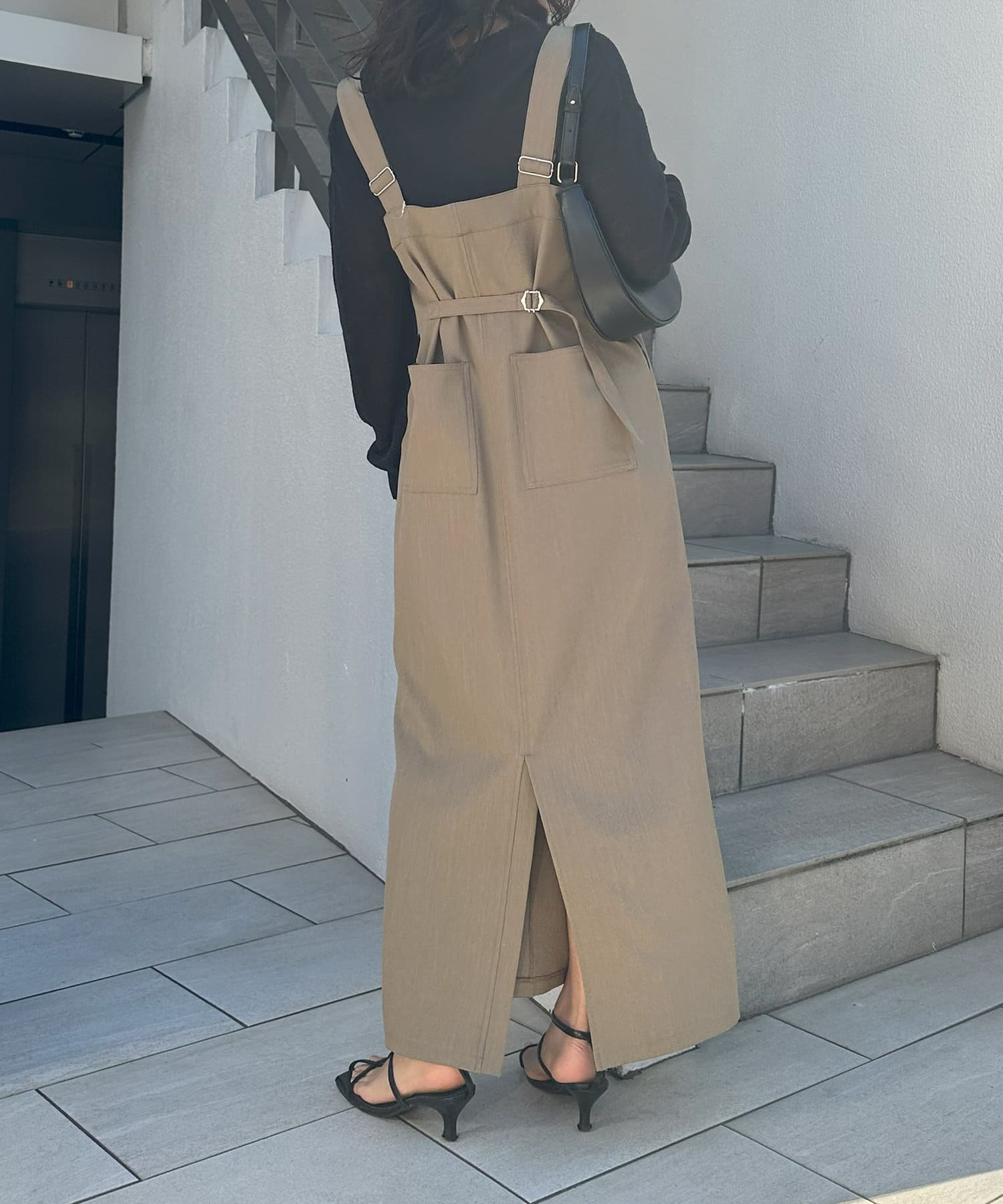 昨年大人気だったデニムサロペットがきれいめ素材になって再登場。