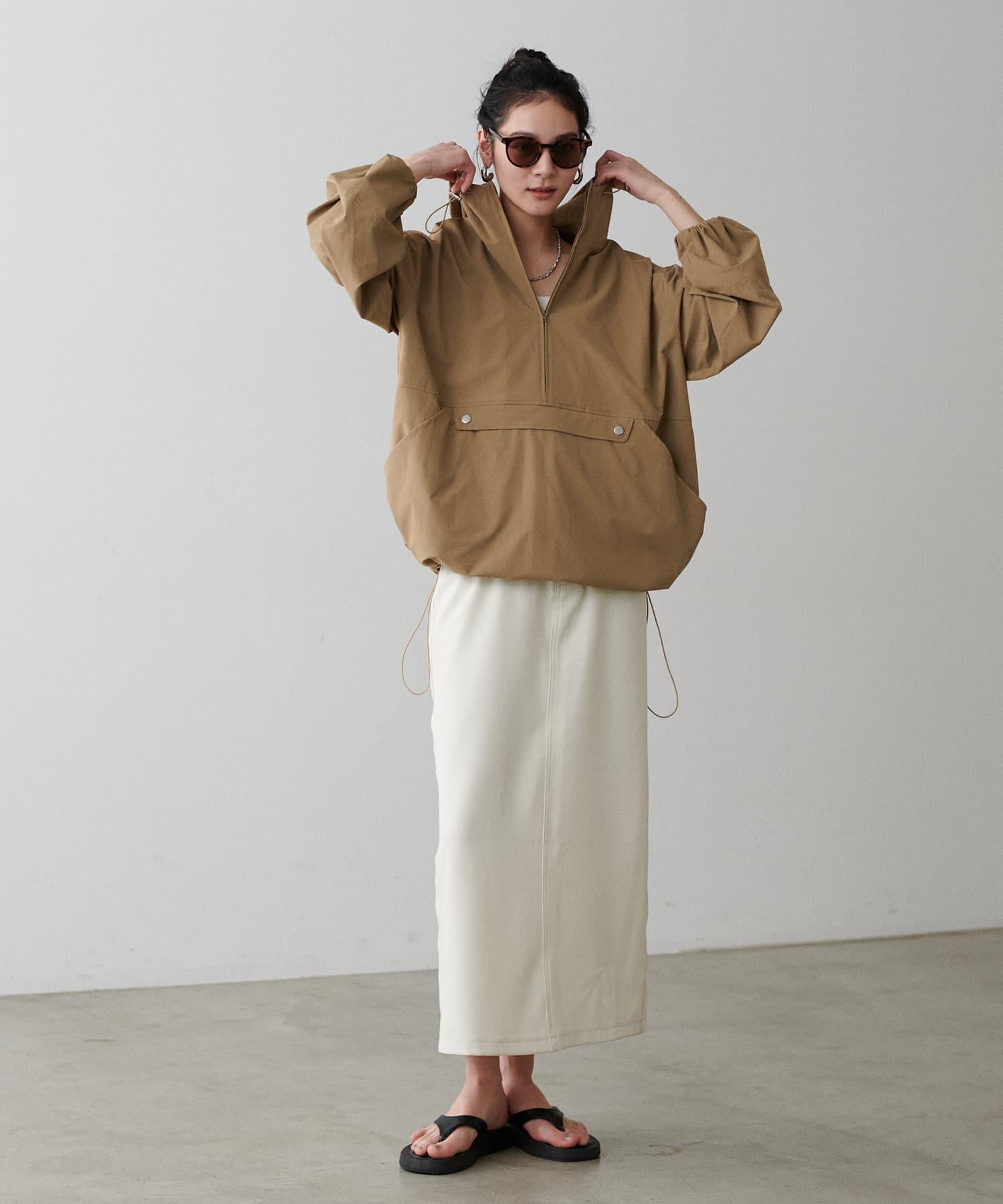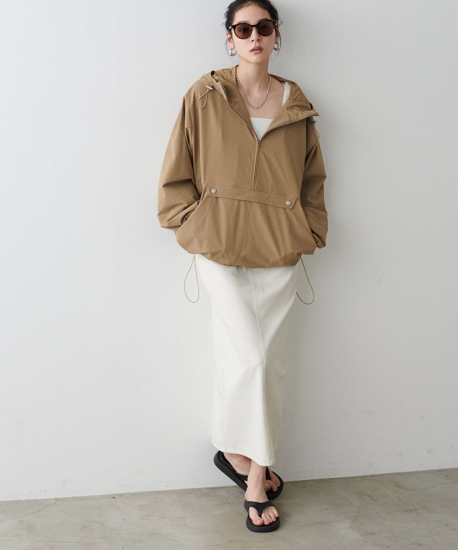 上からテーラードジャケットやマウンテンパーカーなどを羽織った着こなしがおすすめ。