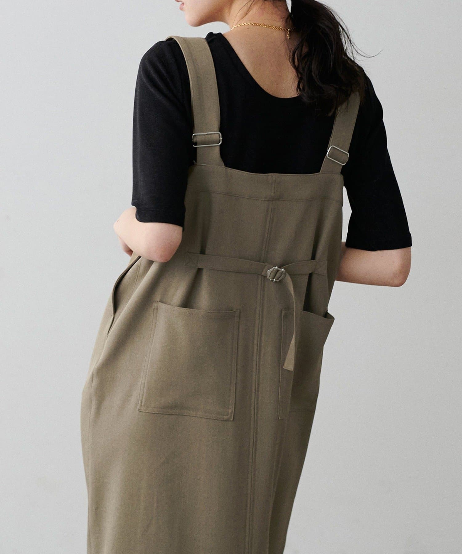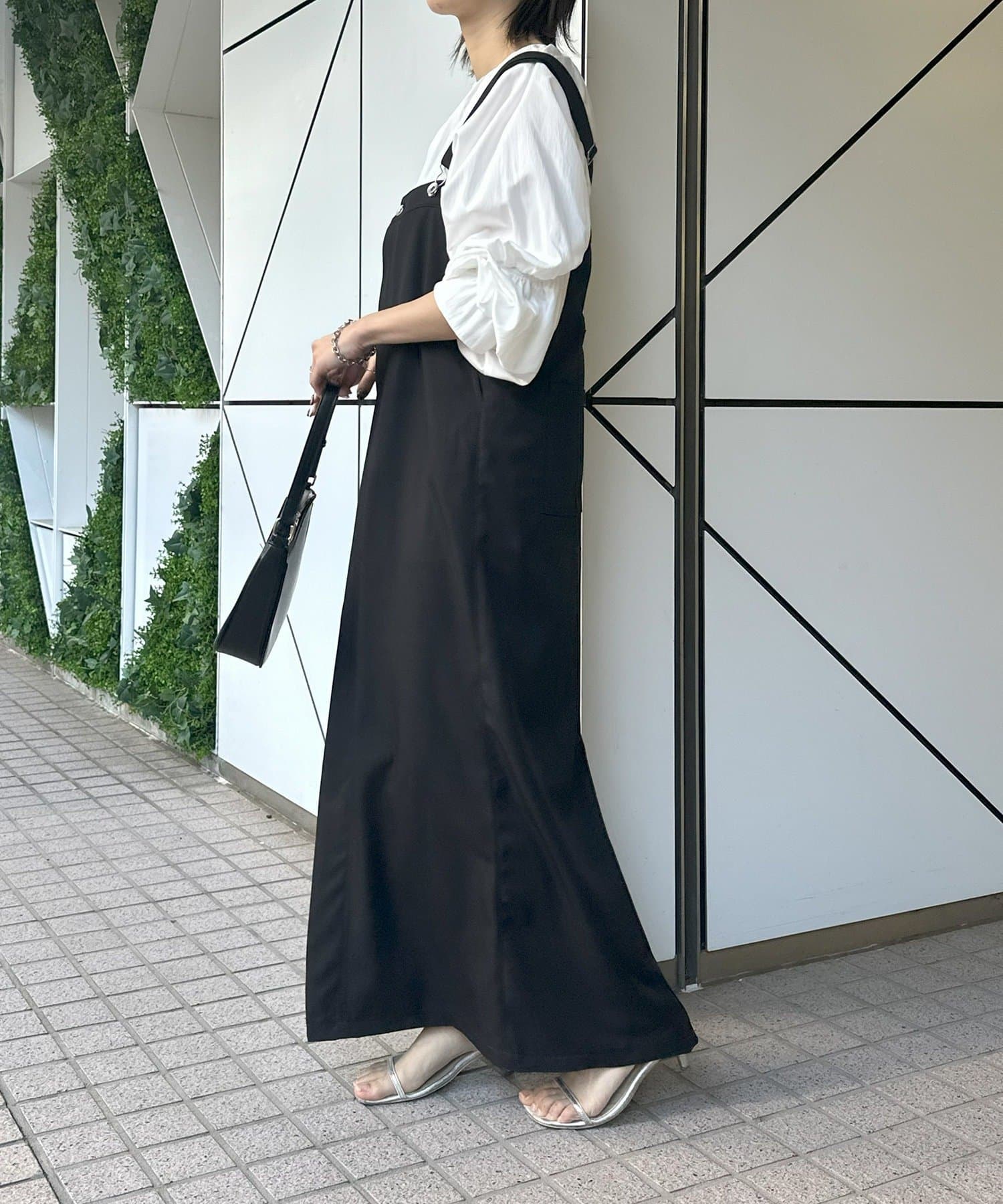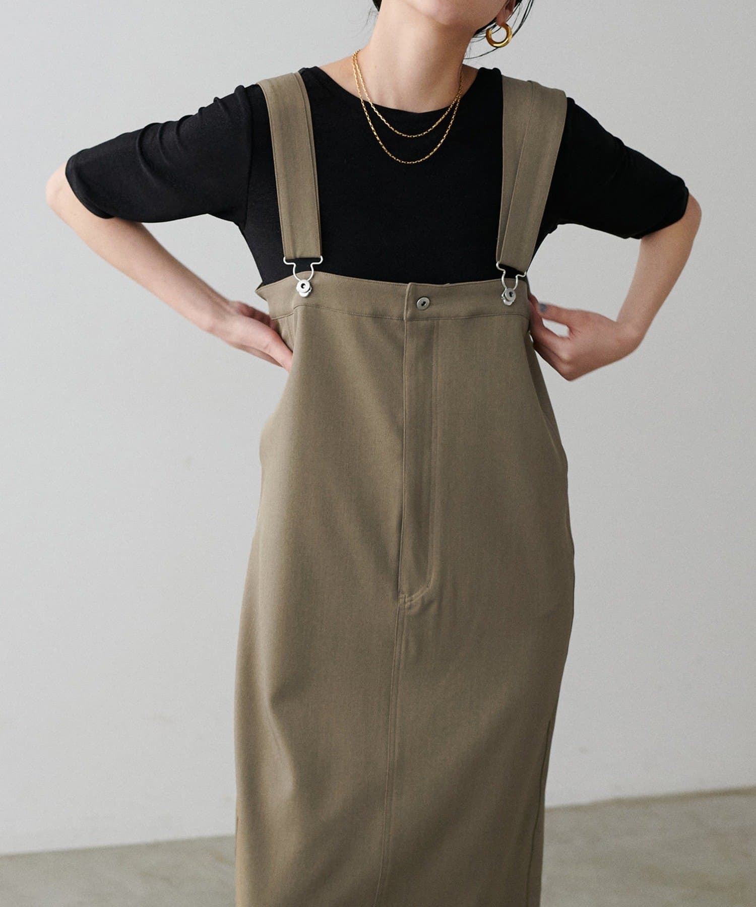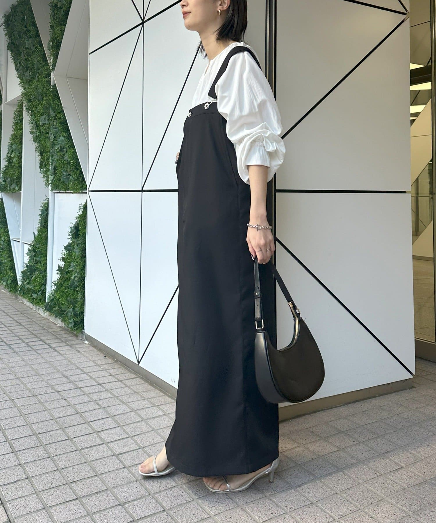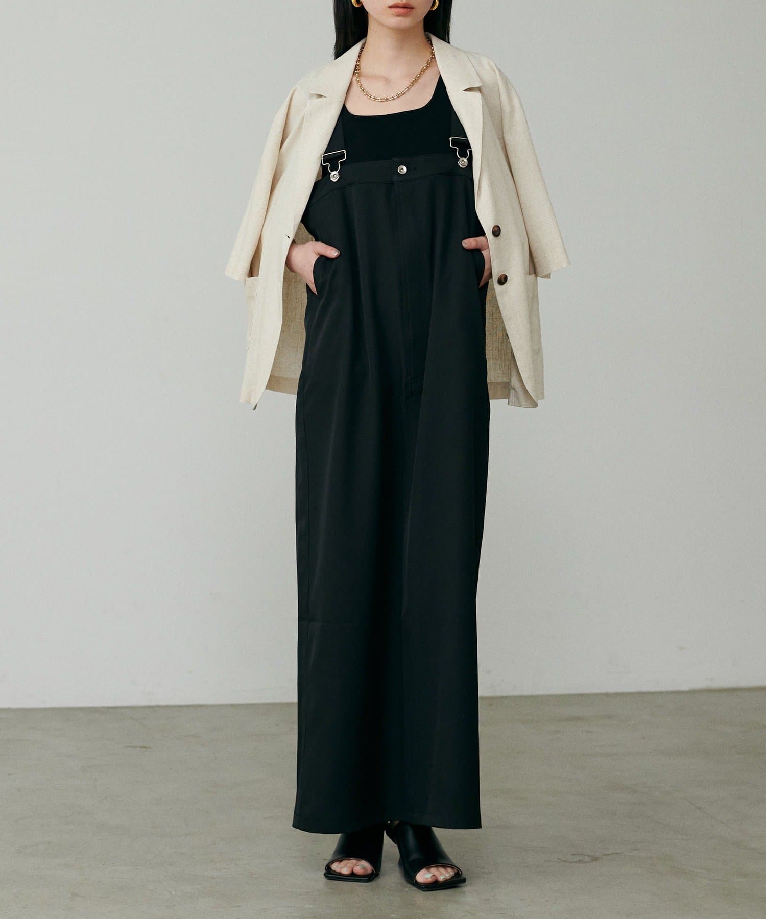 昨年大人気だったデニムサロペットがきれいめ素材になって再登場。