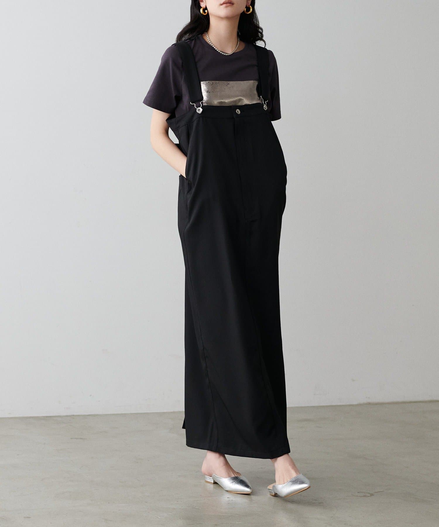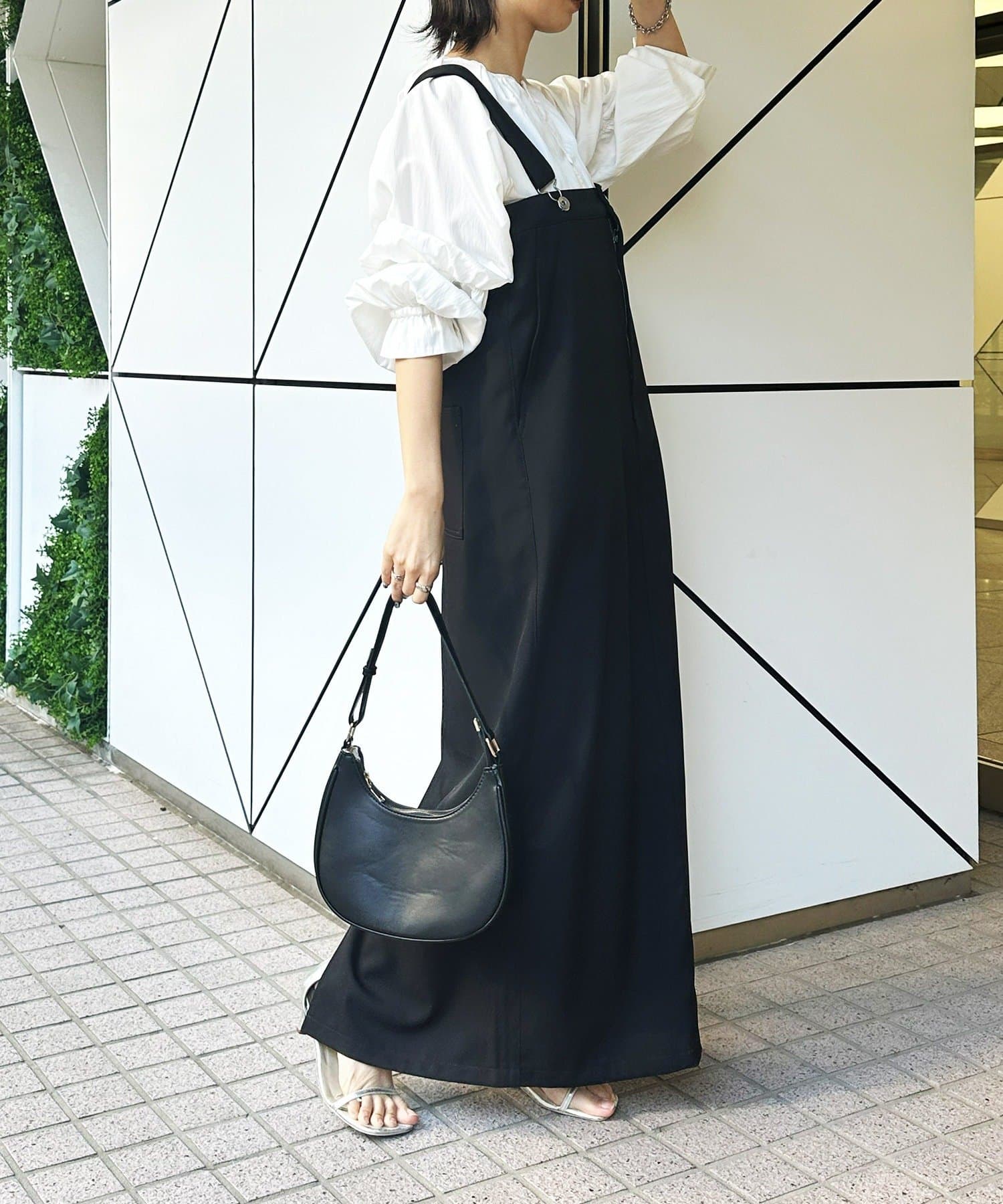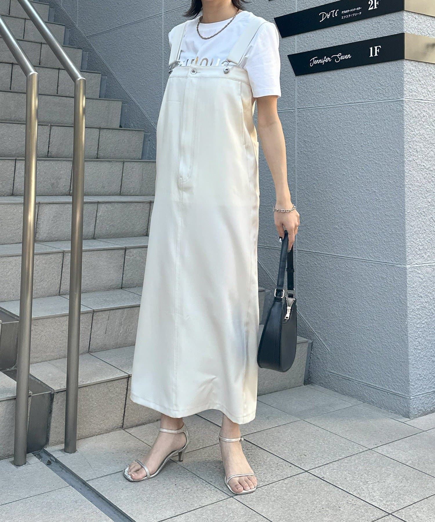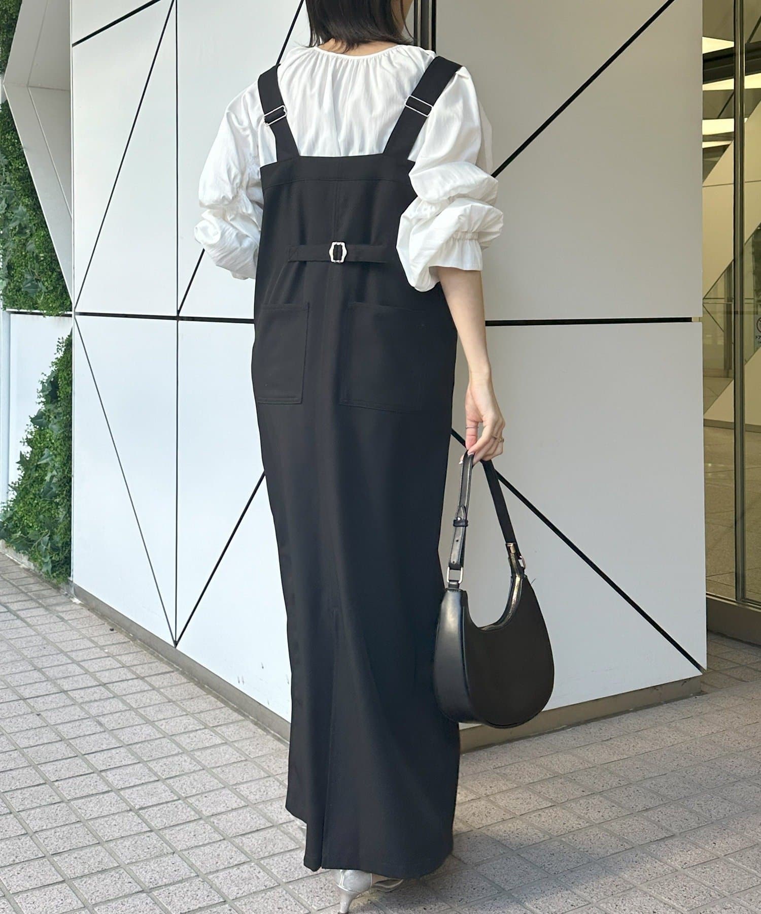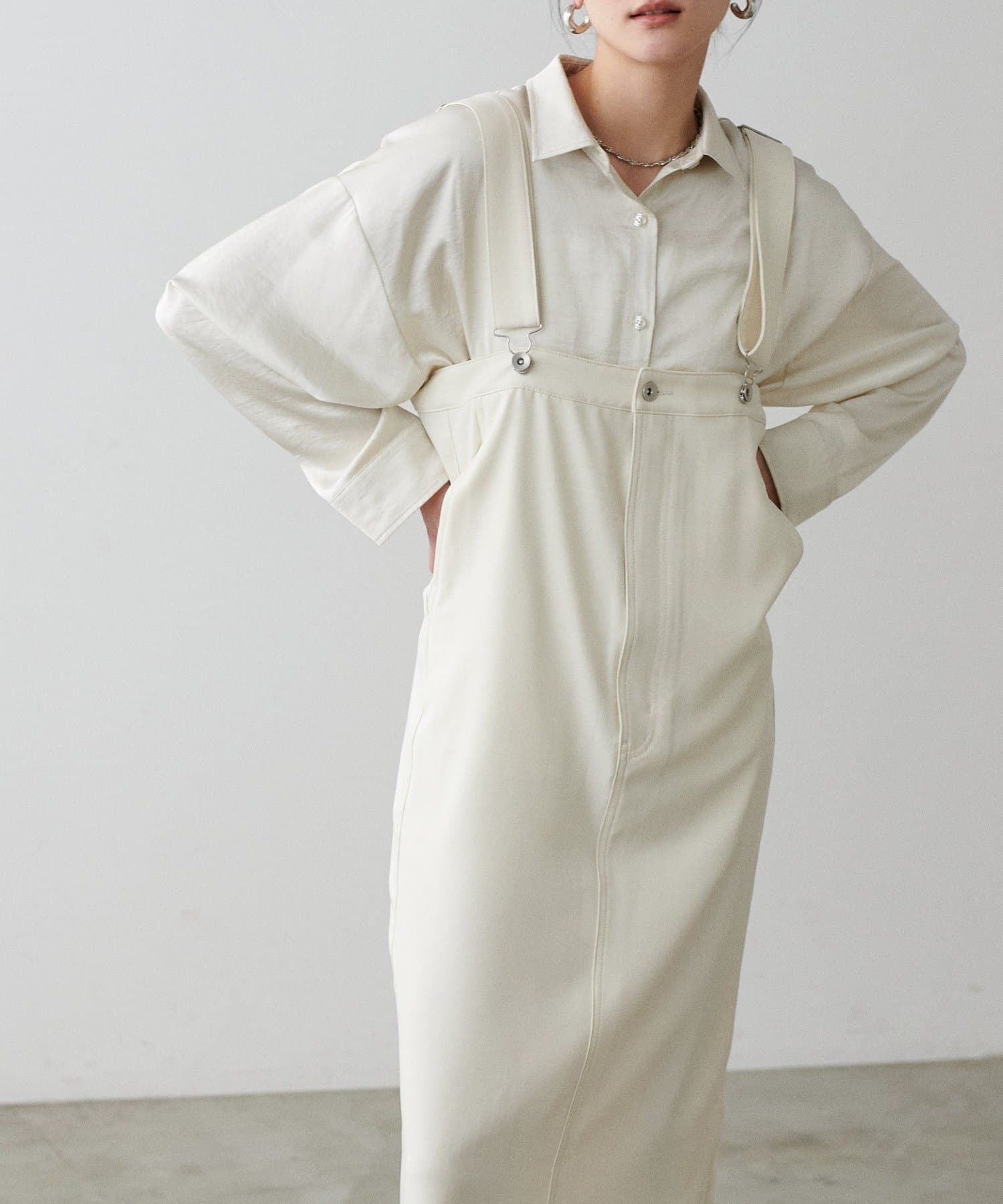昨年大人気だったデニムサロペットがきれいめ素材になって再登場。
