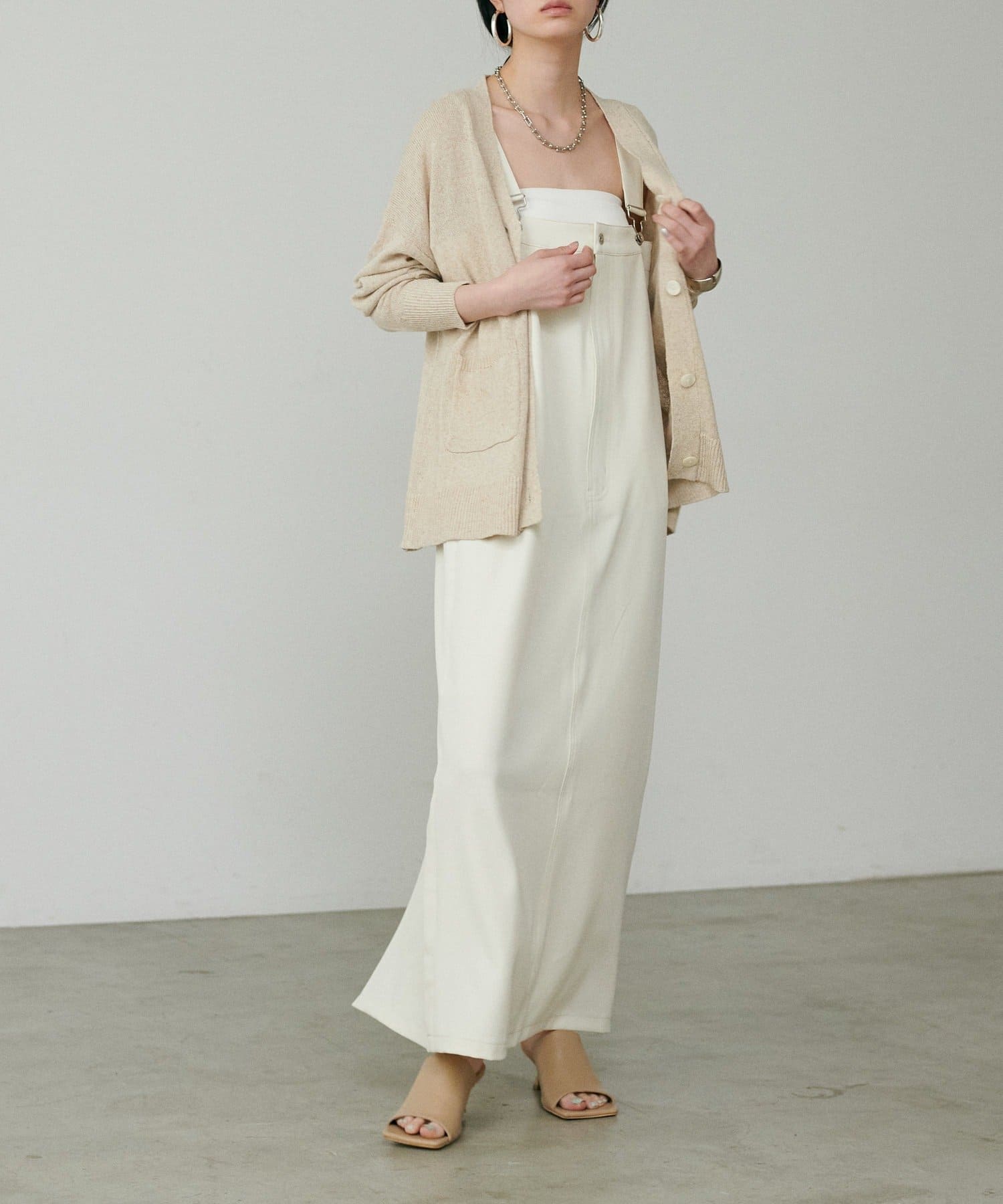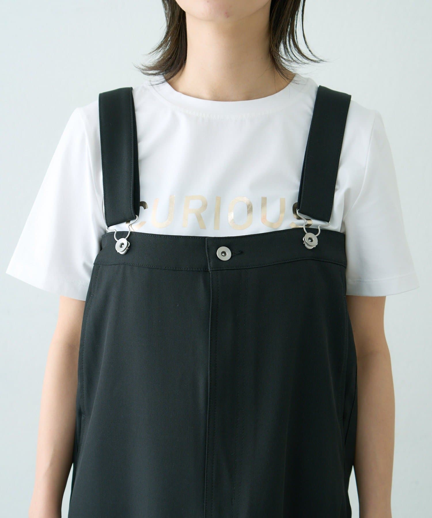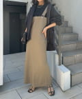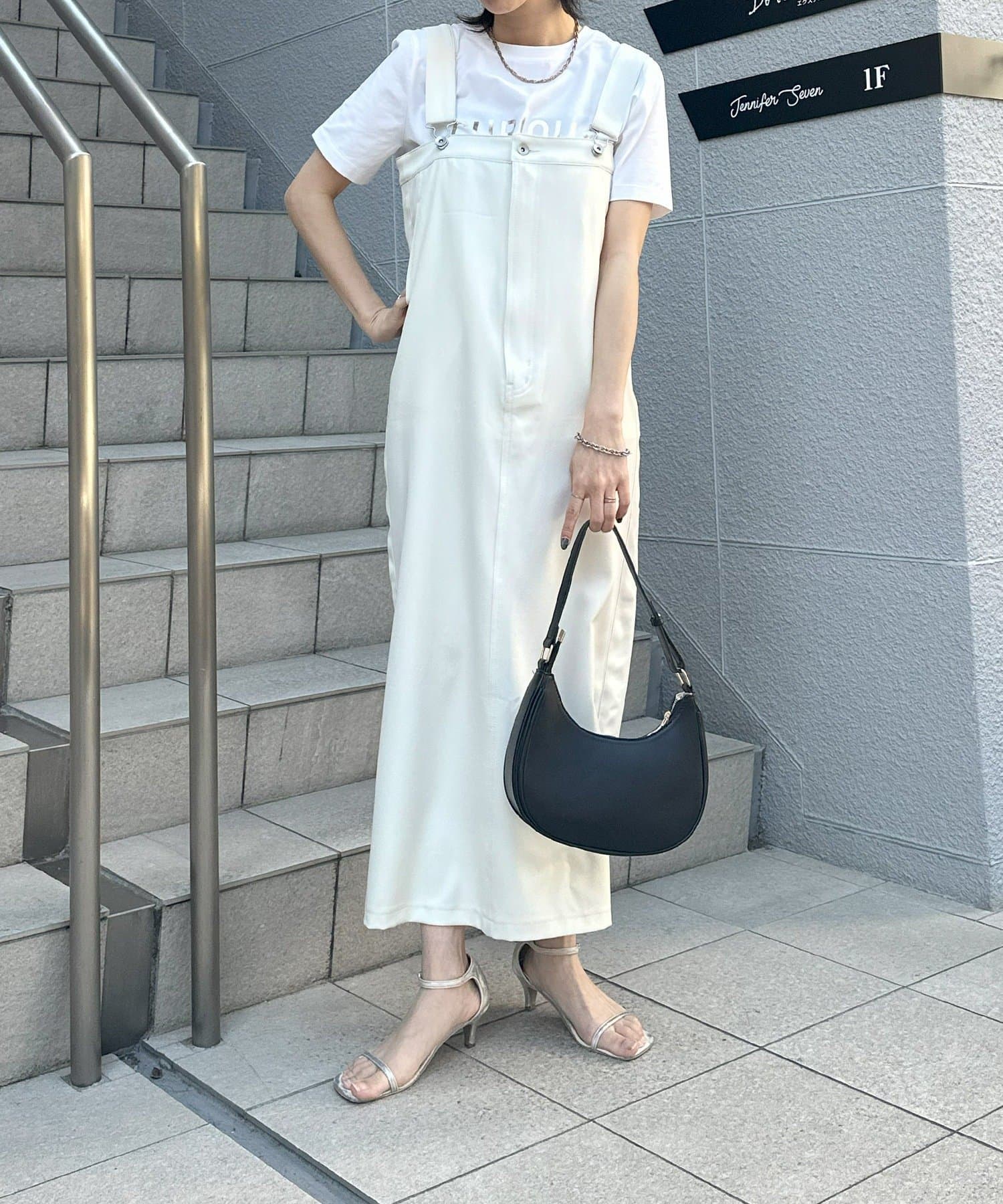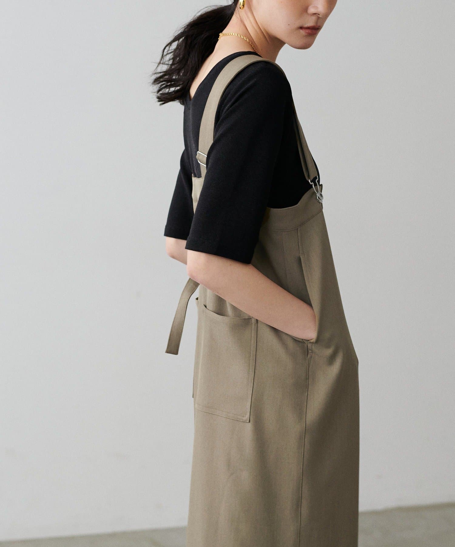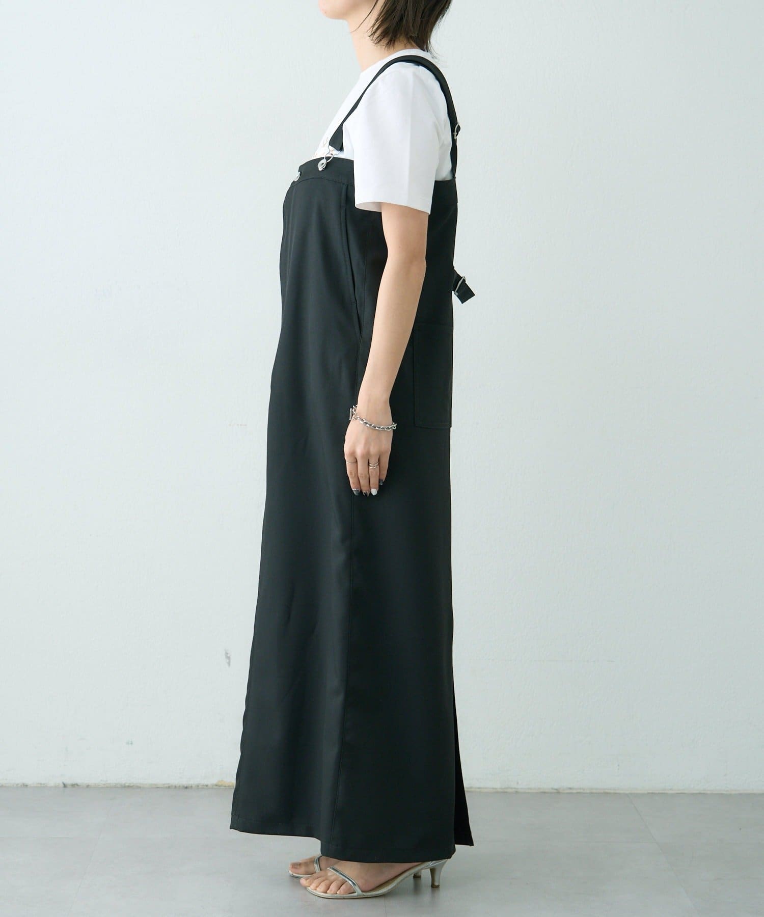 昨年大人気だったデニムサロペットがきれいめ素材になって再登場。