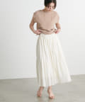 シンプルに箔プリントTシャツや、シアーブラウスと合わせるだけでも