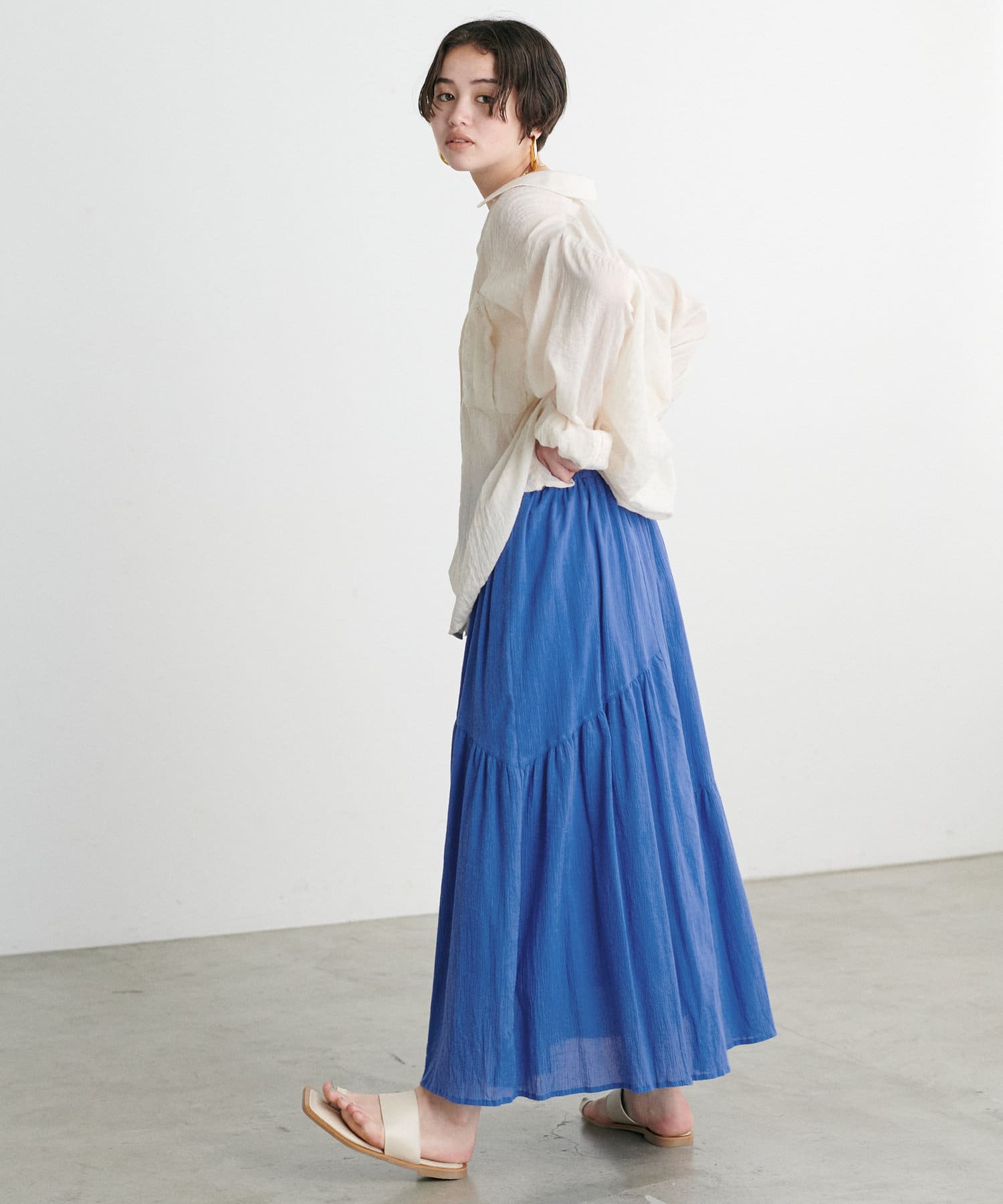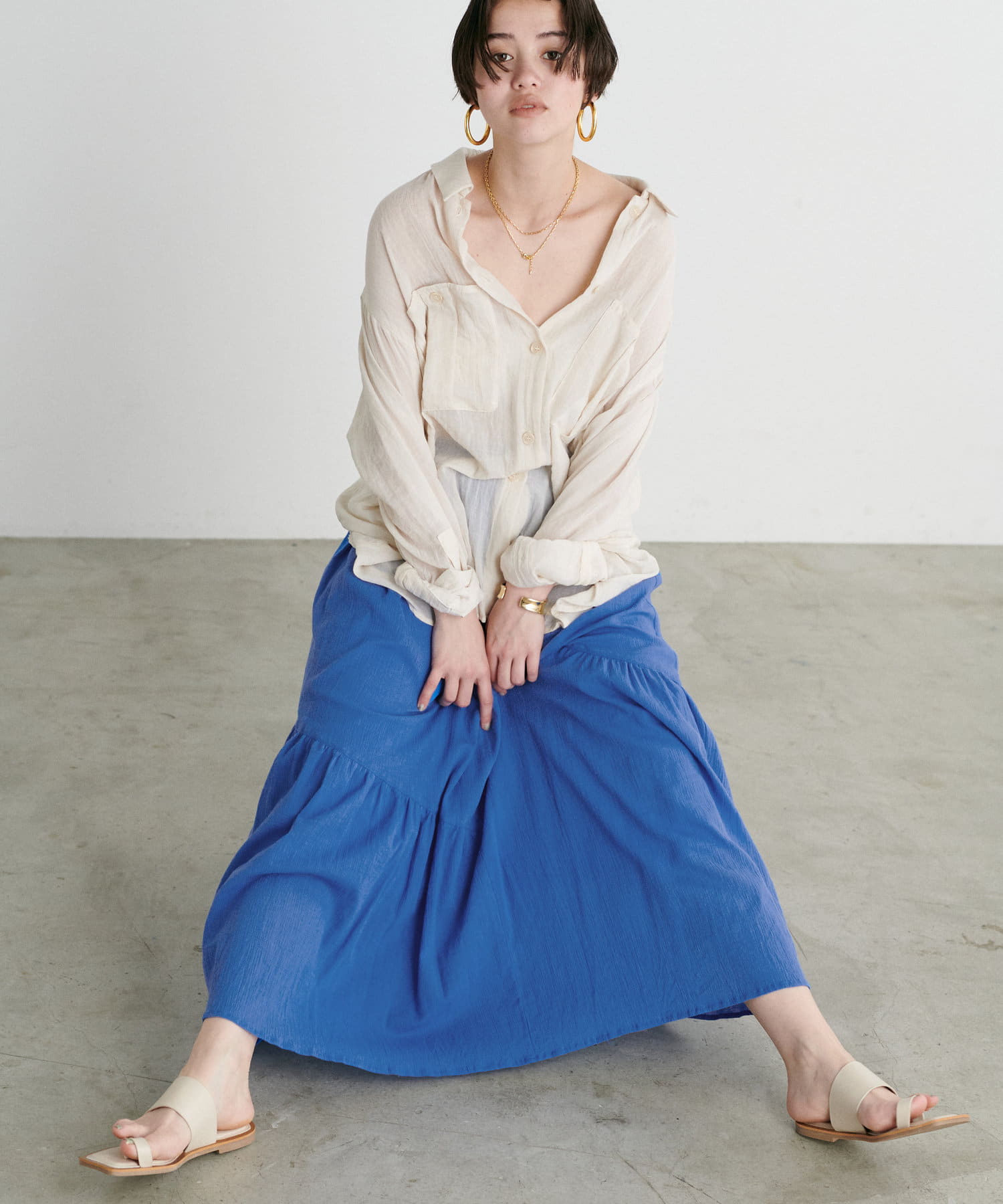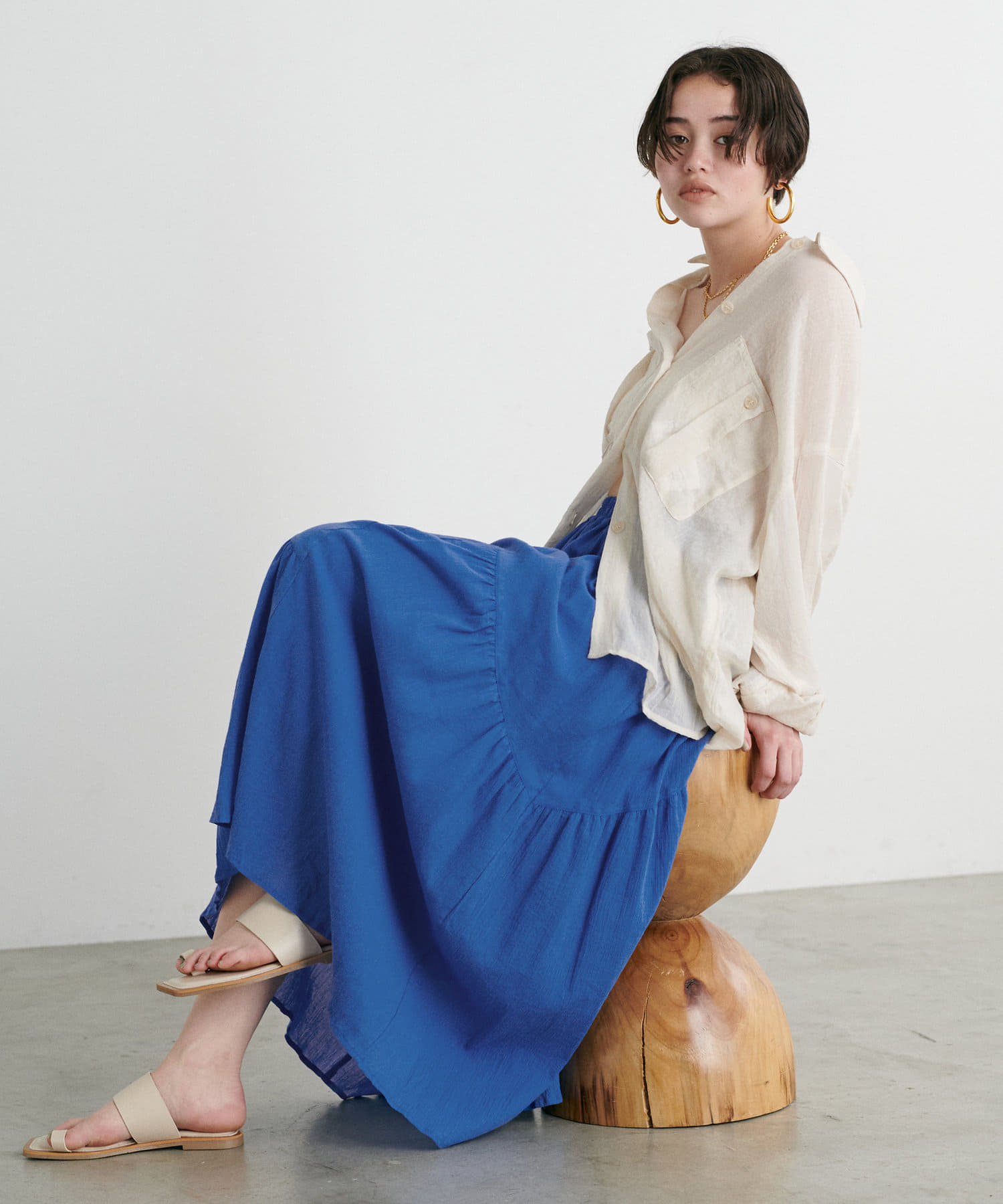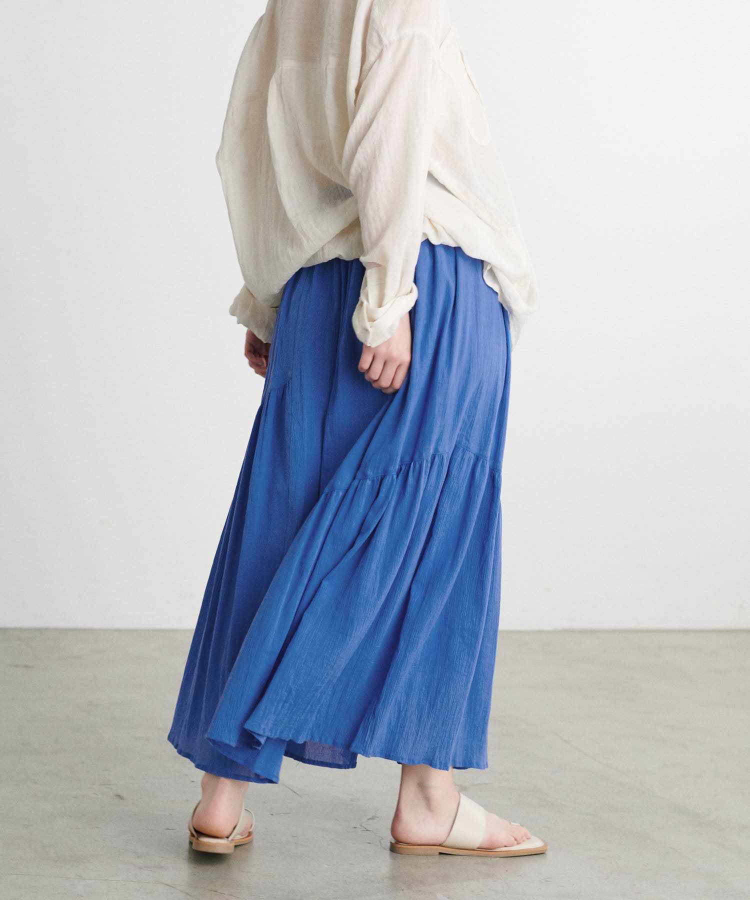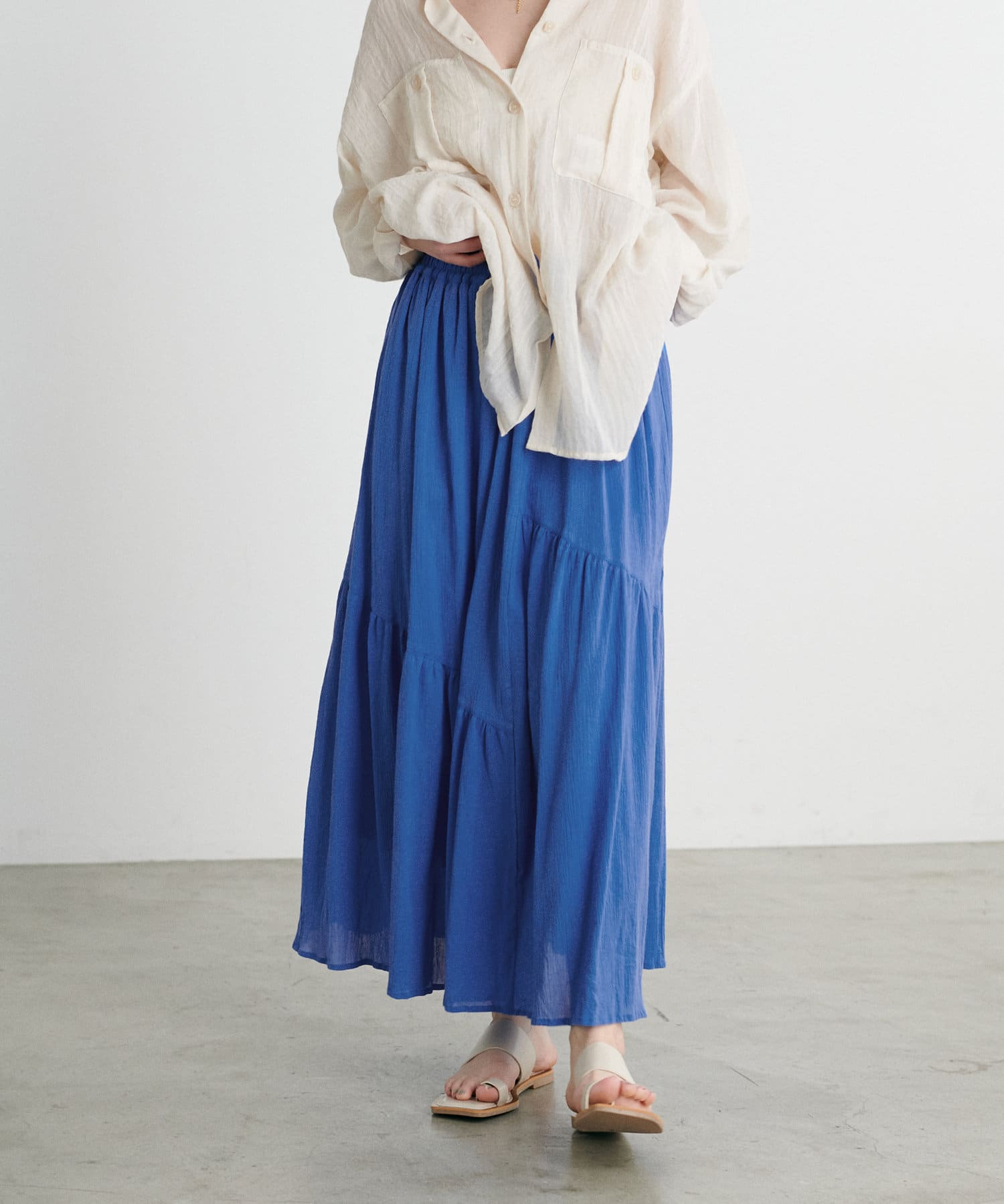 揺れ感の美しい、鮮やかなカラーのティアードマキシスカート。