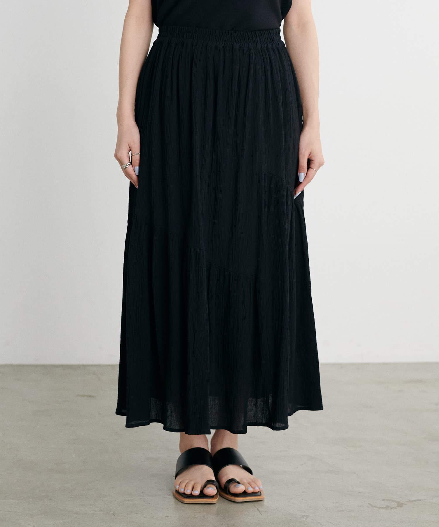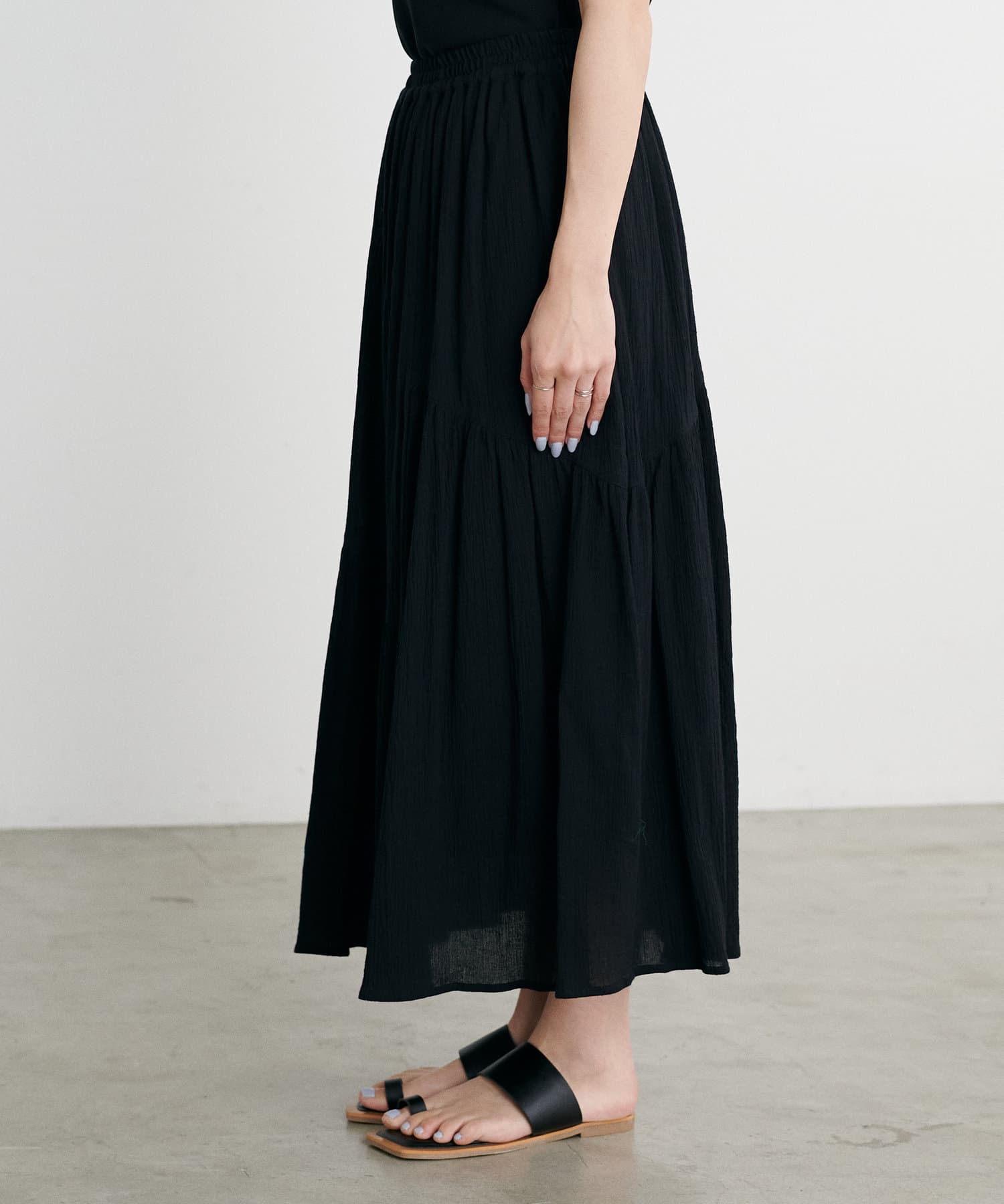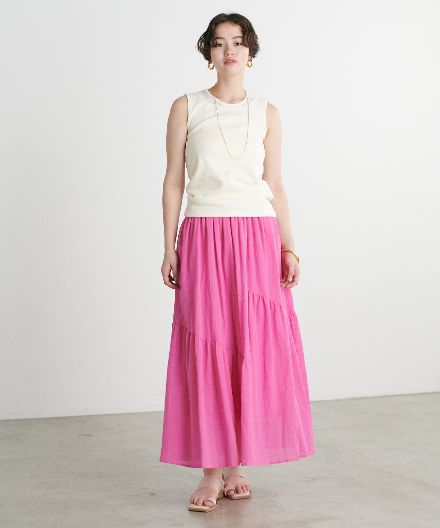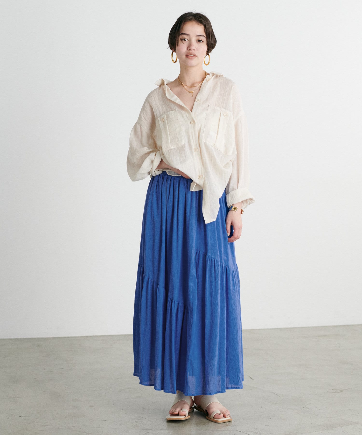 揺れ感の美しい、鮮やかなカラーのティアードマキシスカート。