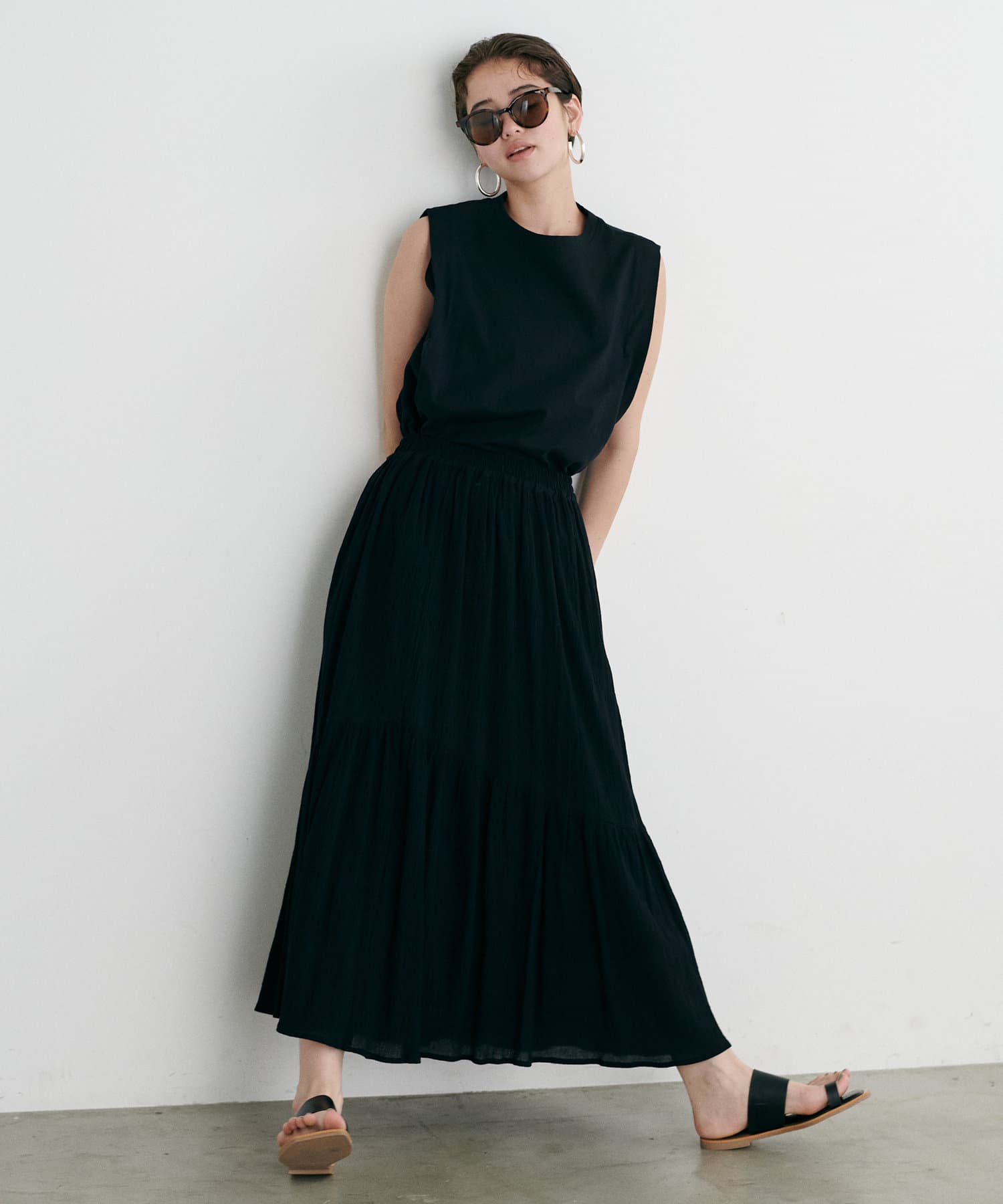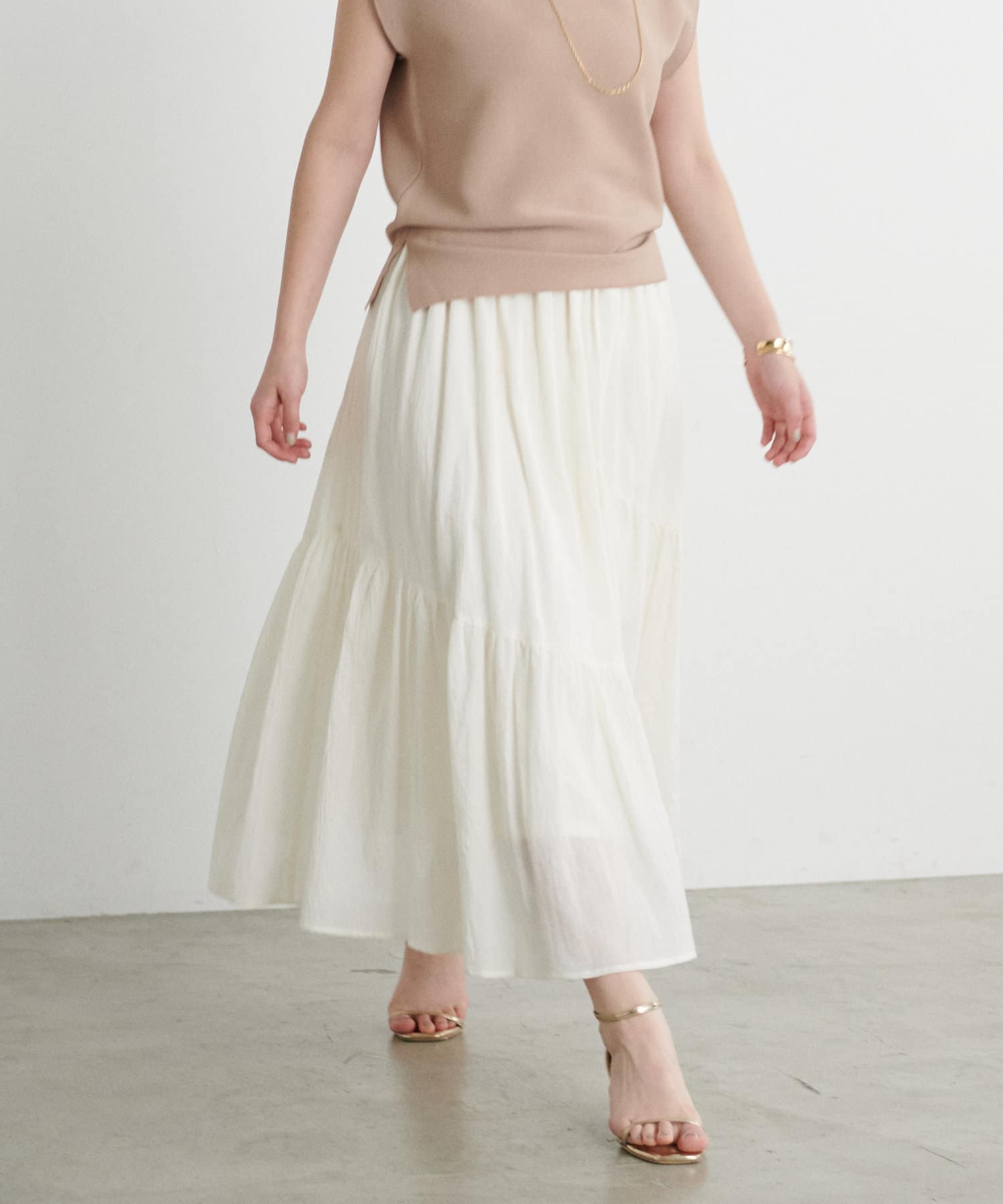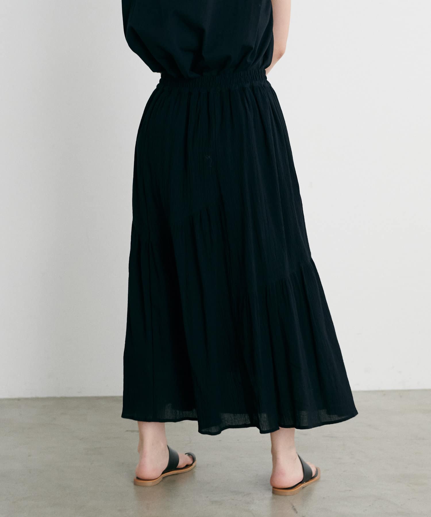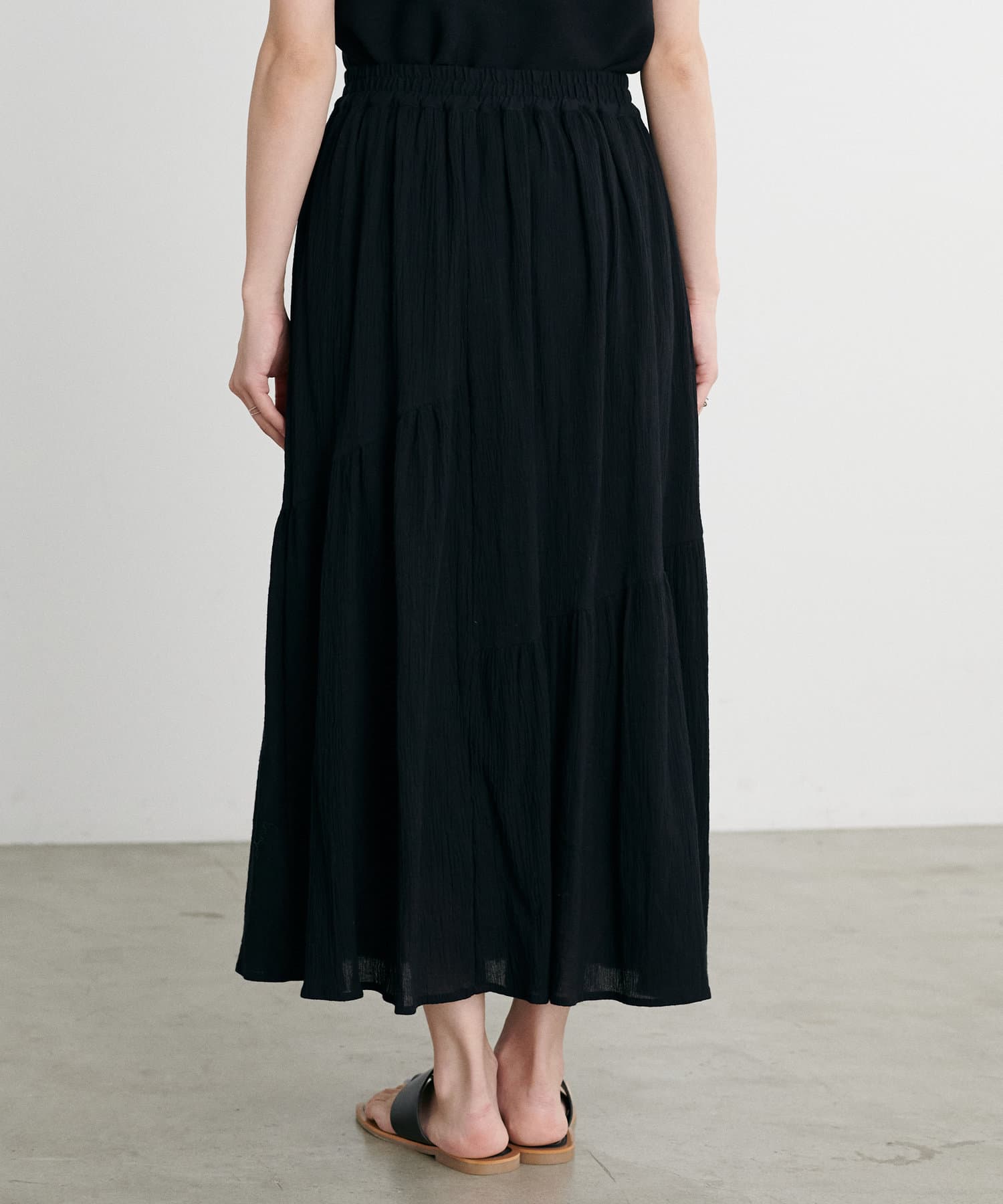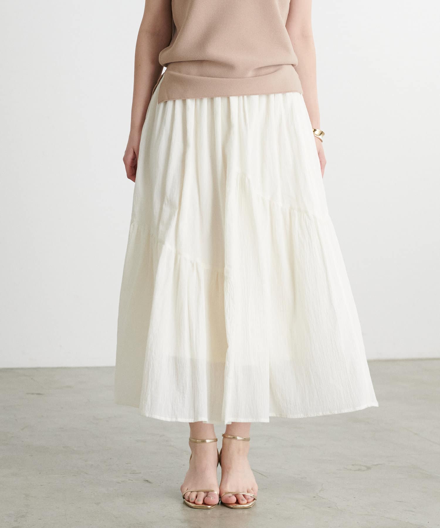 揺れ感の美しい、鮮やかなカラーのティアードマキシスカート。