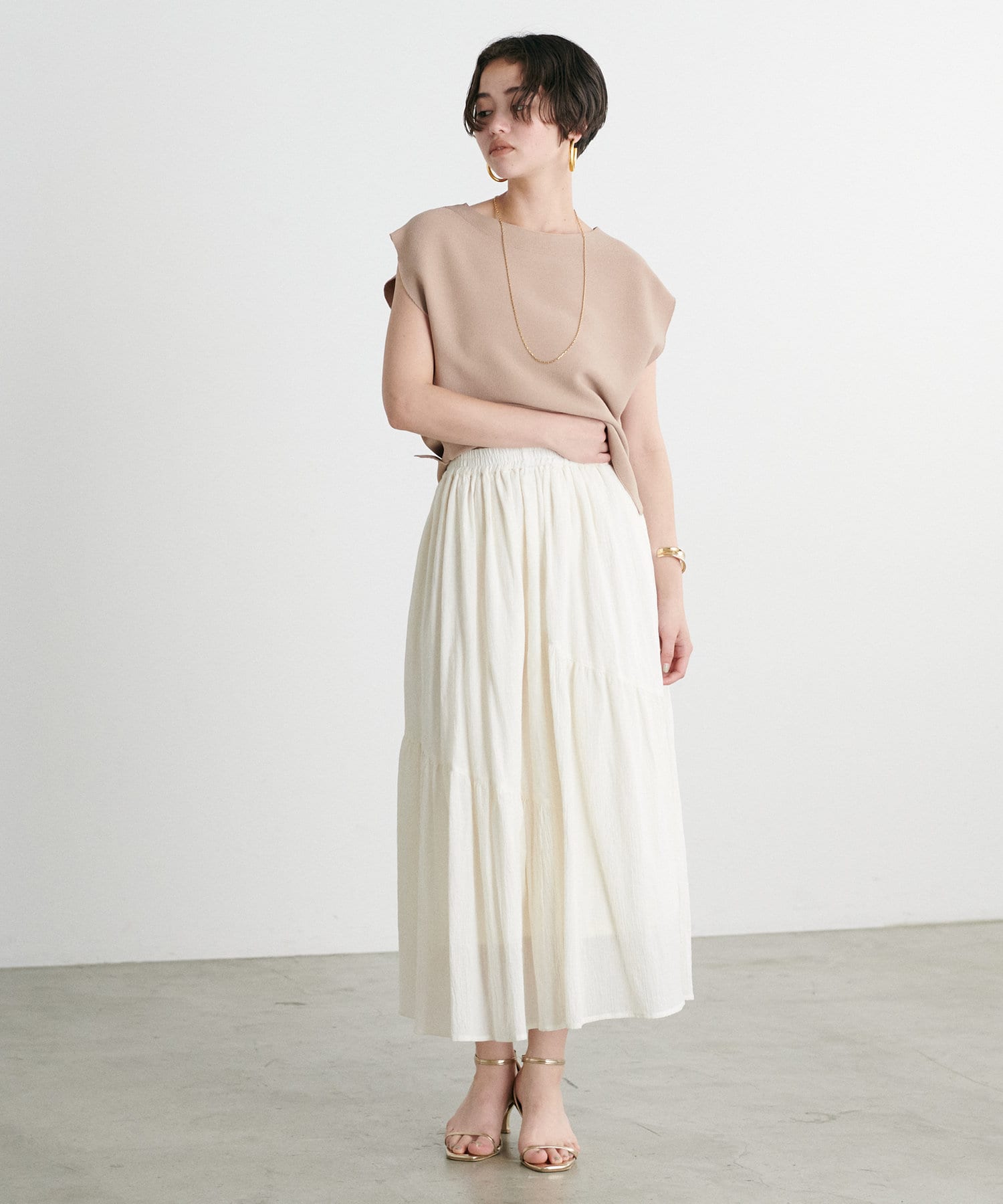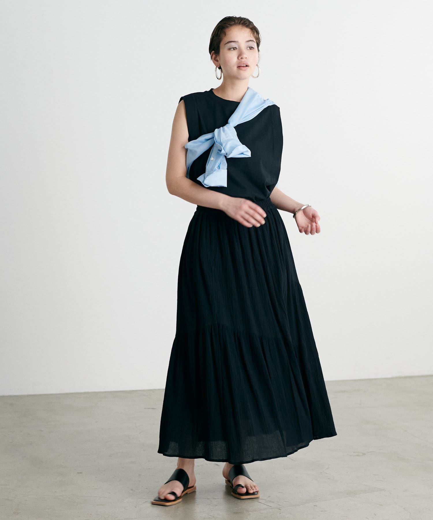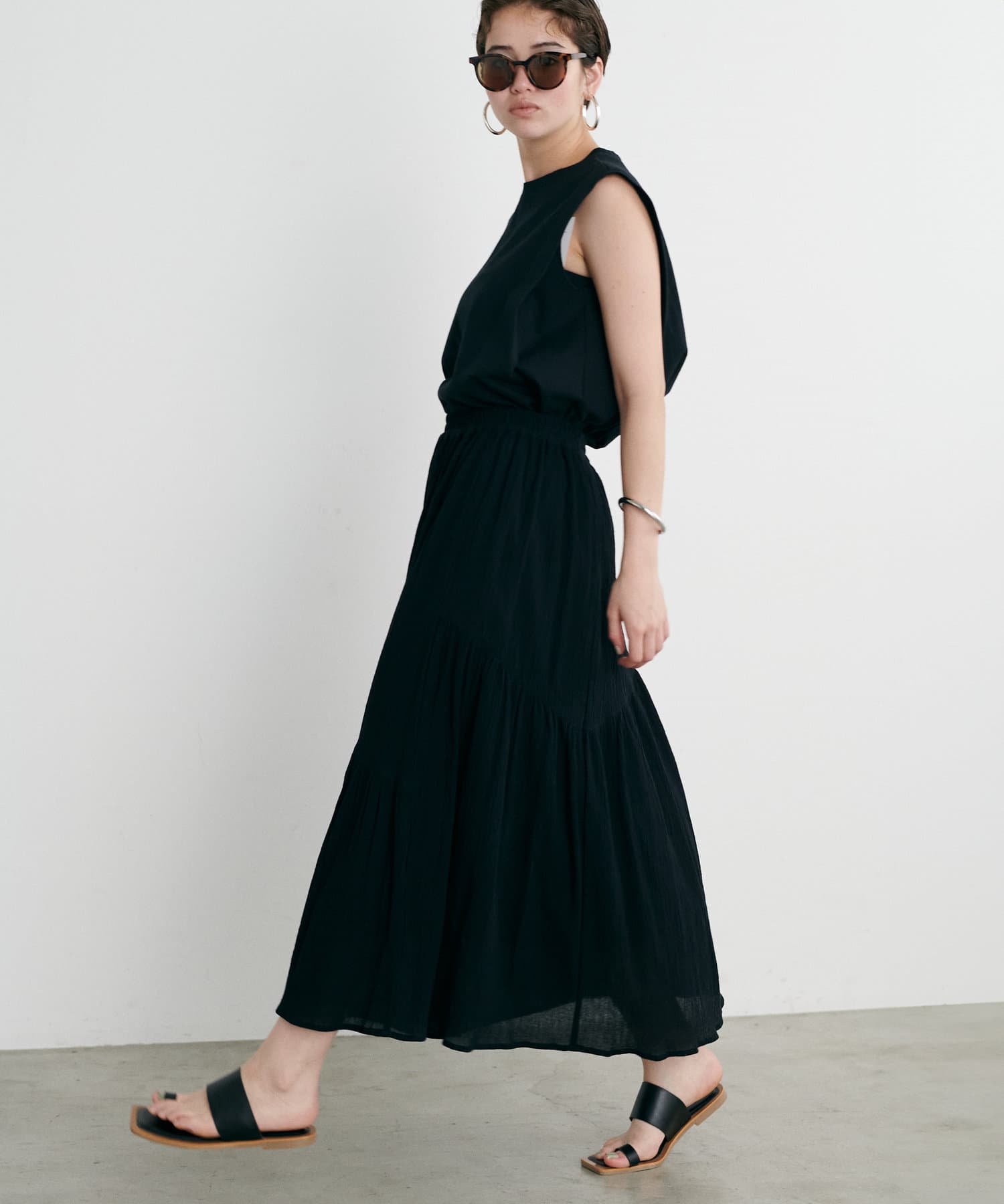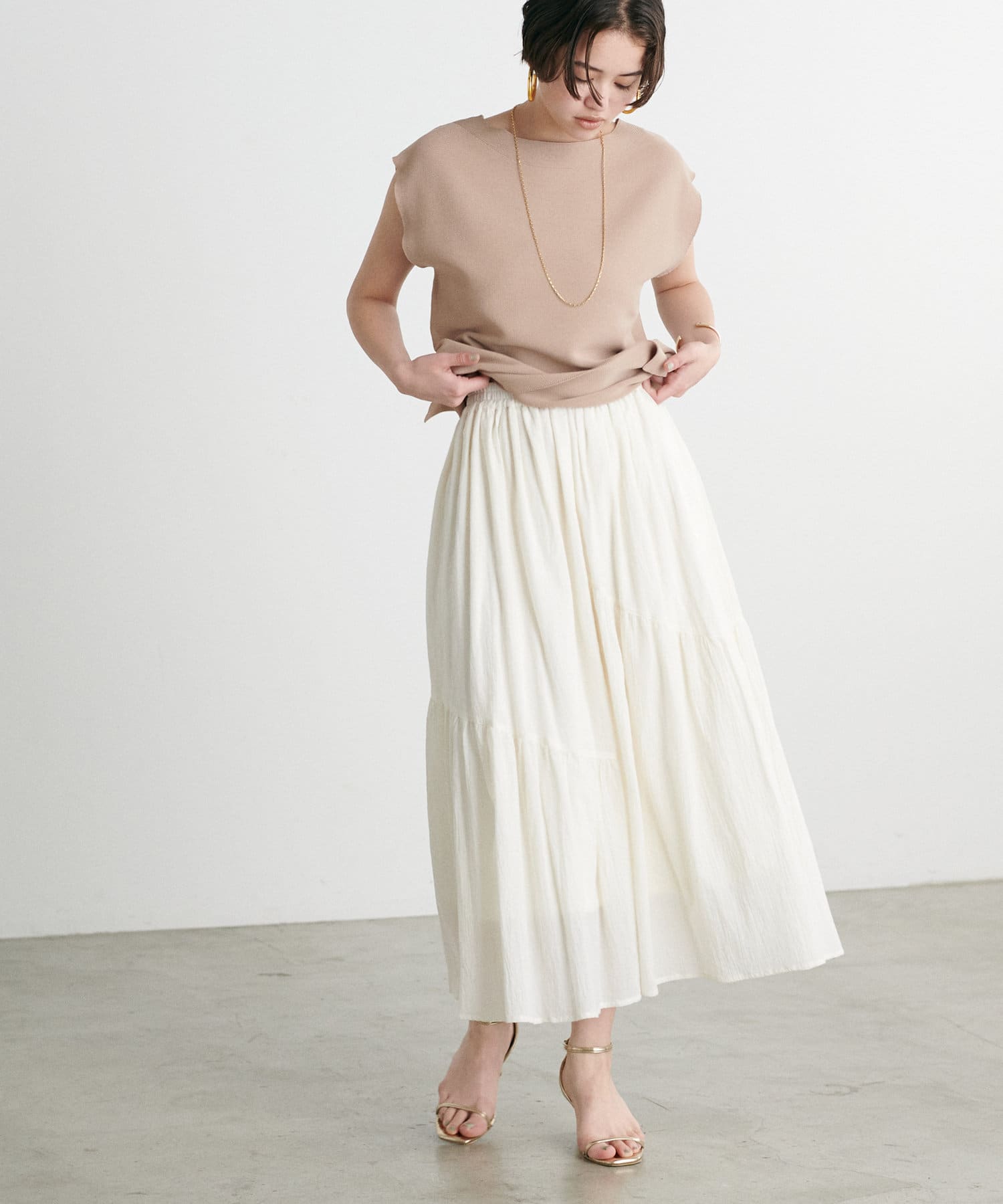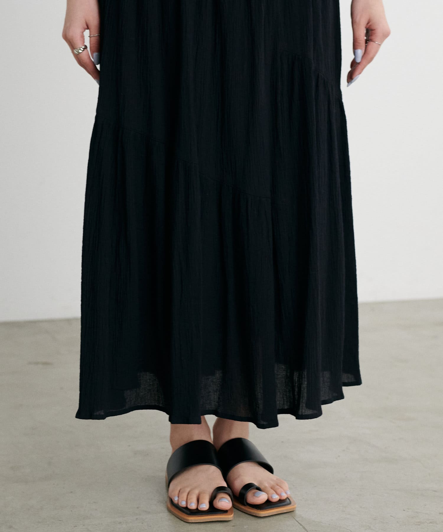 揺れ感の美しい、鮮やかなカラーのティアードマキシスカート。