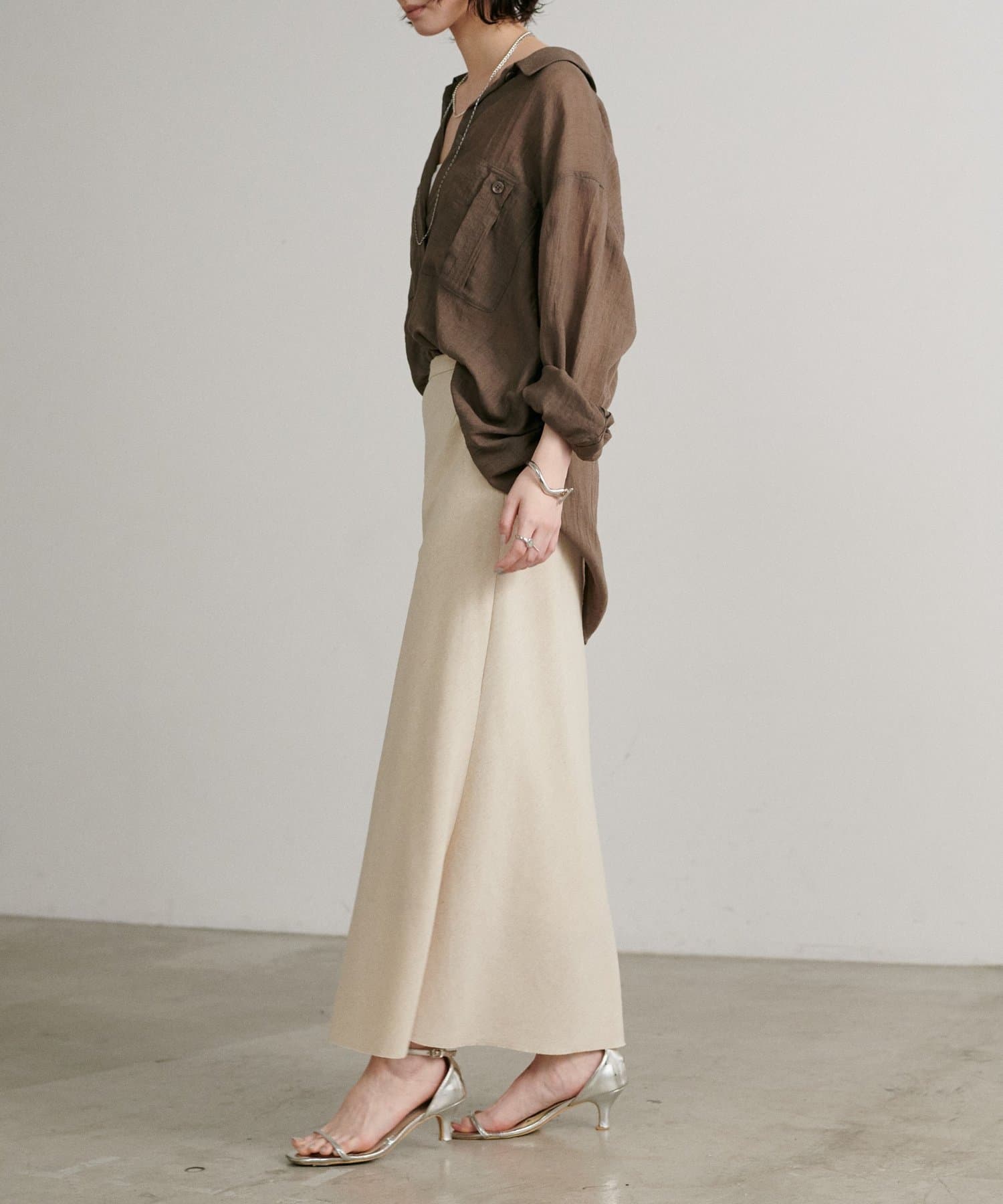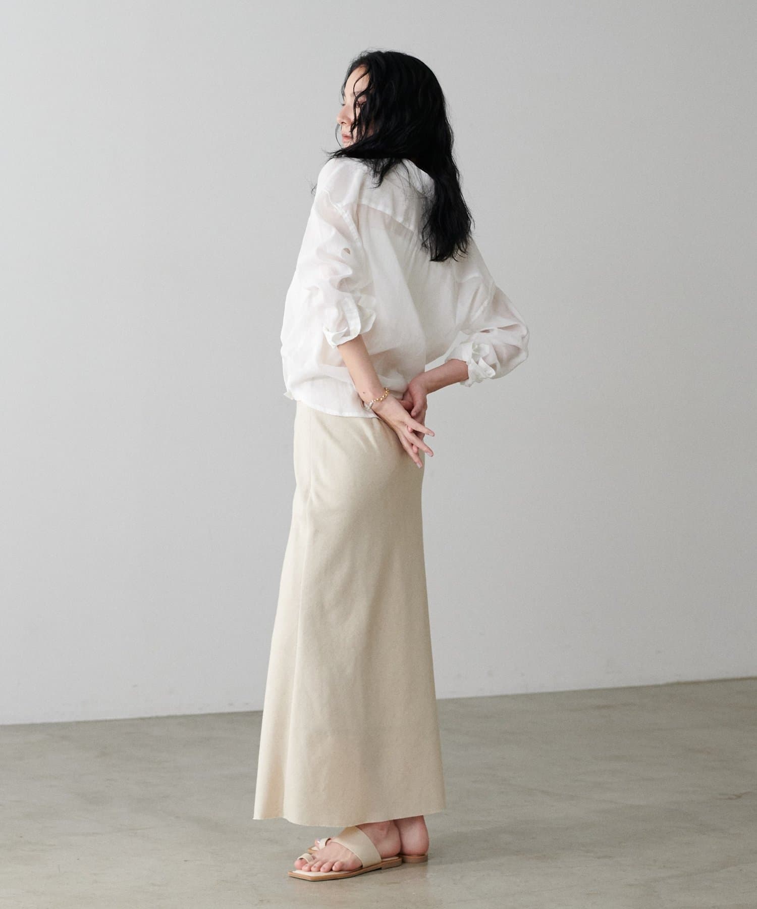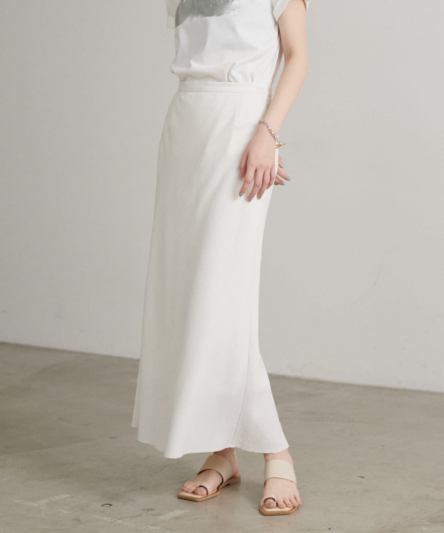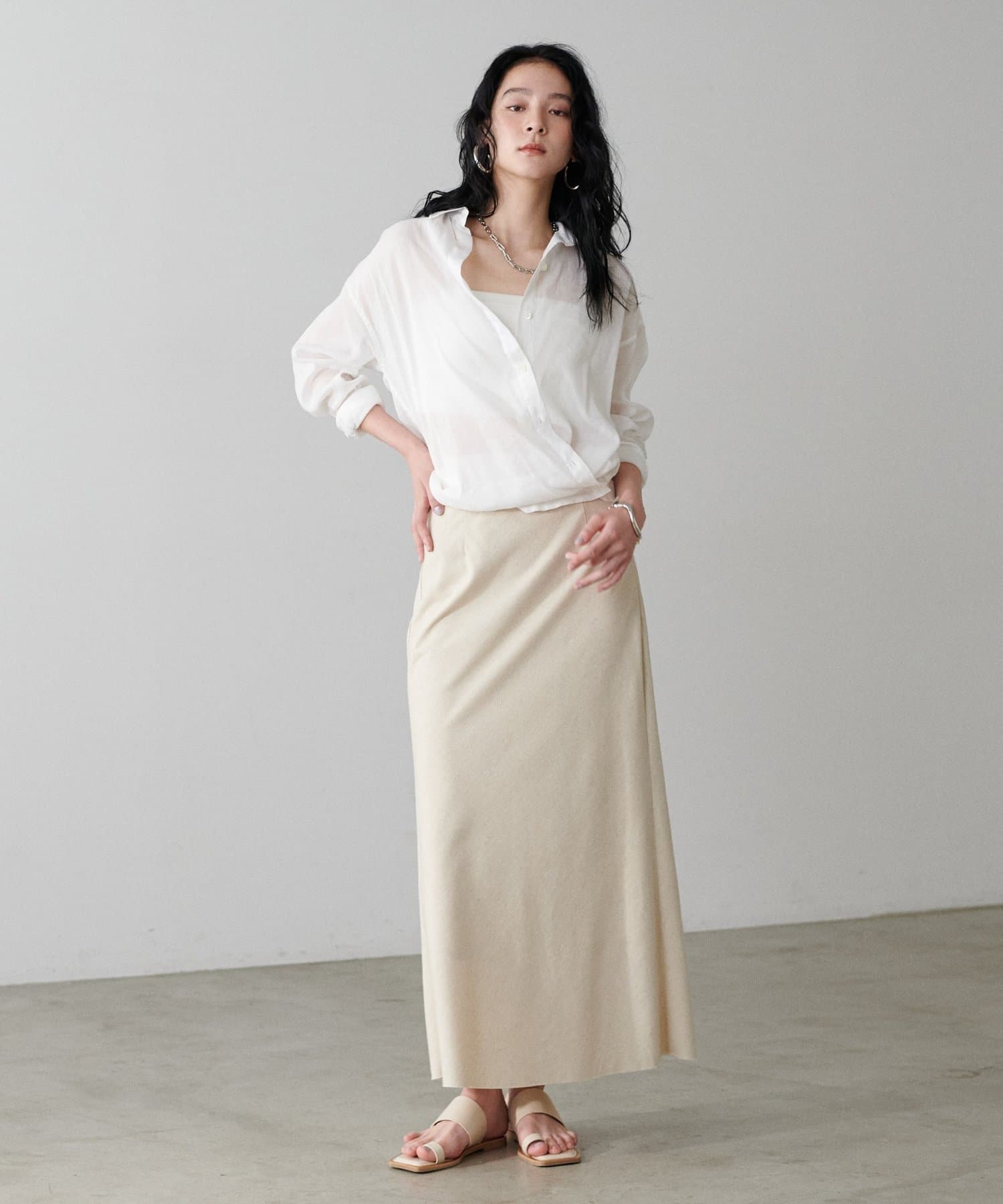 ナチュラルな表情が魅力の綿麻素材を使用した、シーズンムード高まるナロースカート。