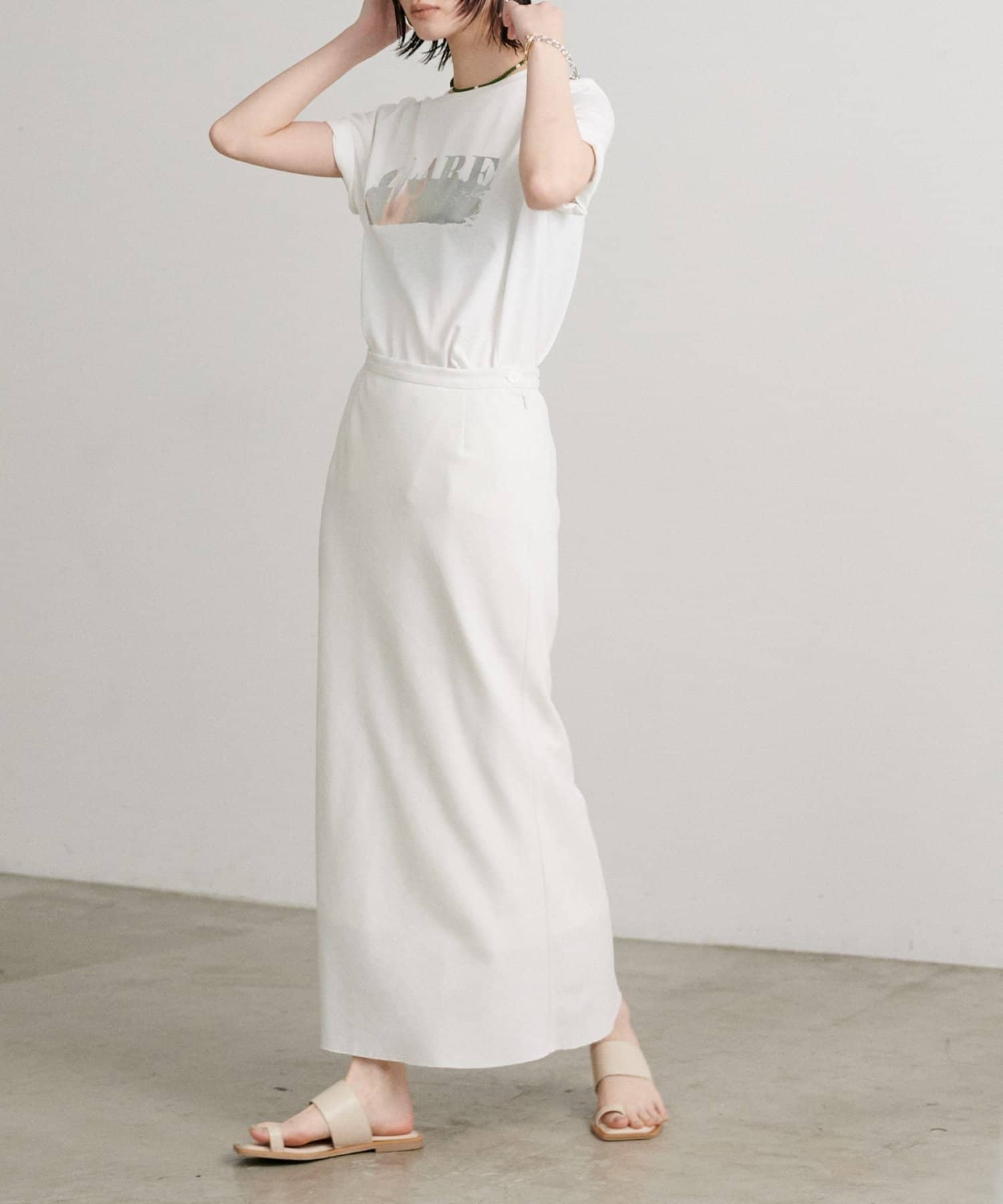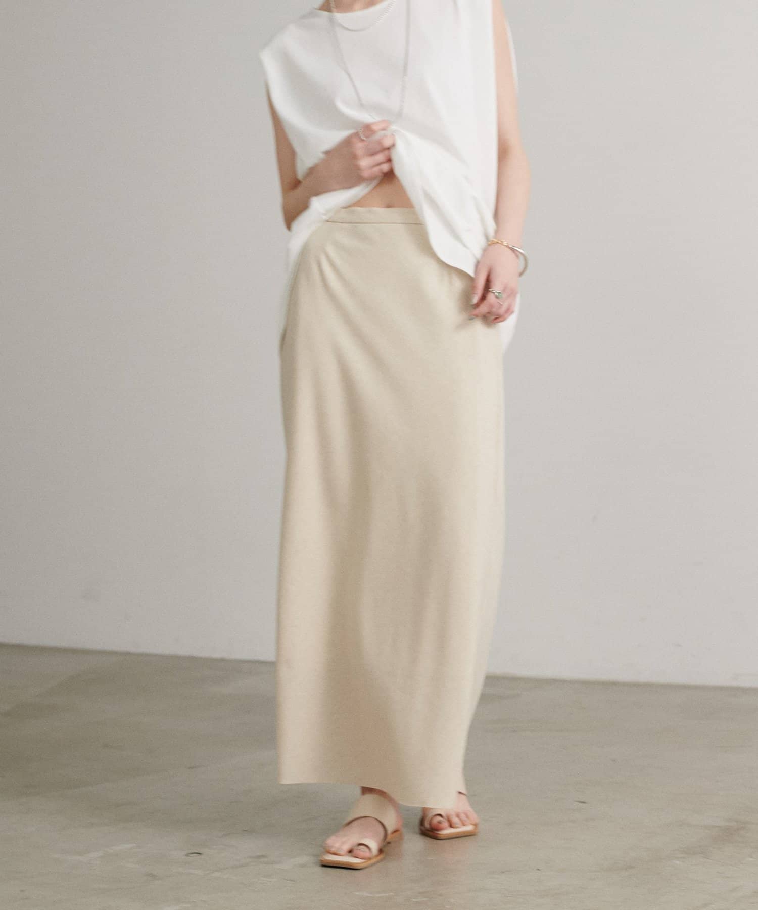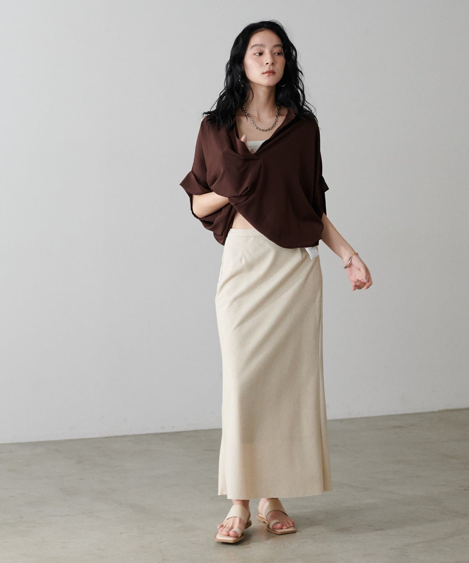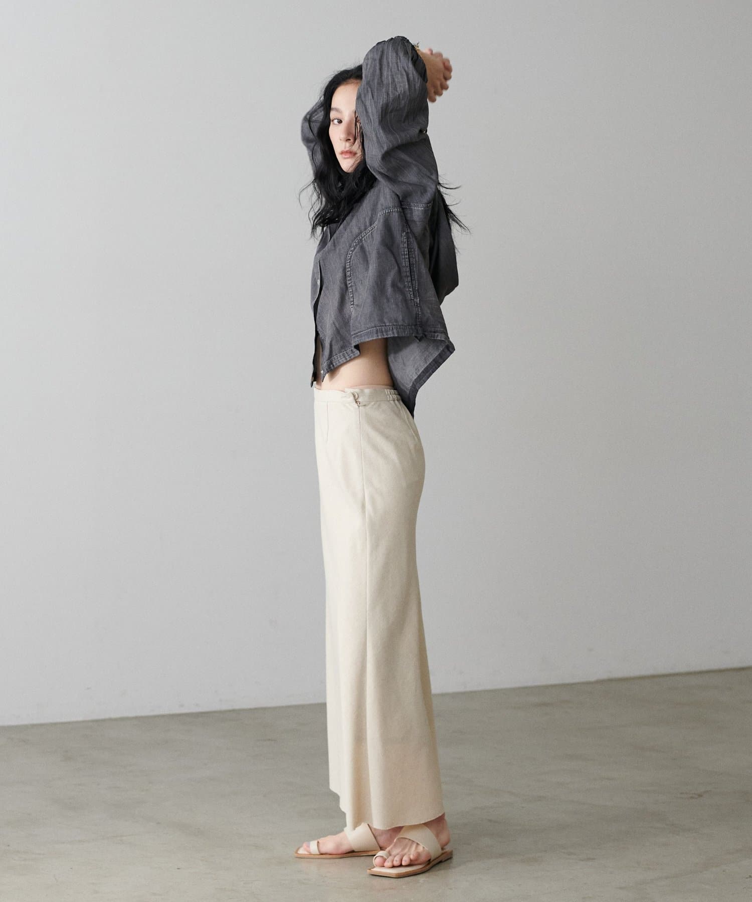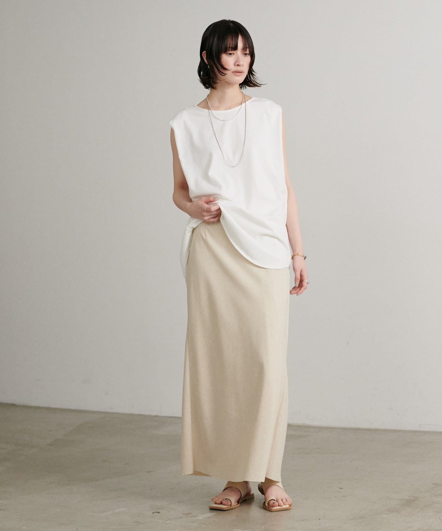 ナチュラルな表情が魅力の綿麻素材を使用した、シーズンムード高まるナロースカート。