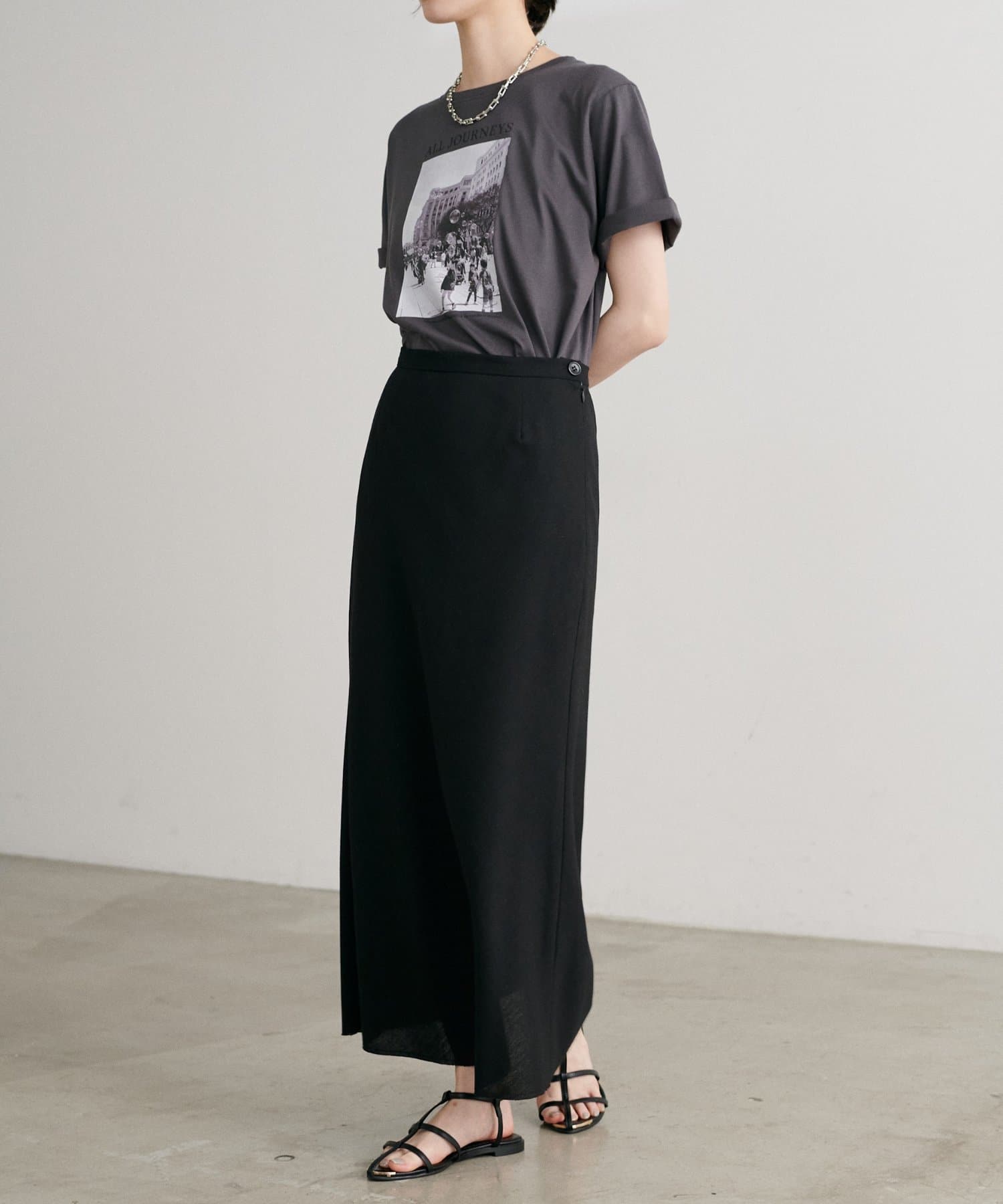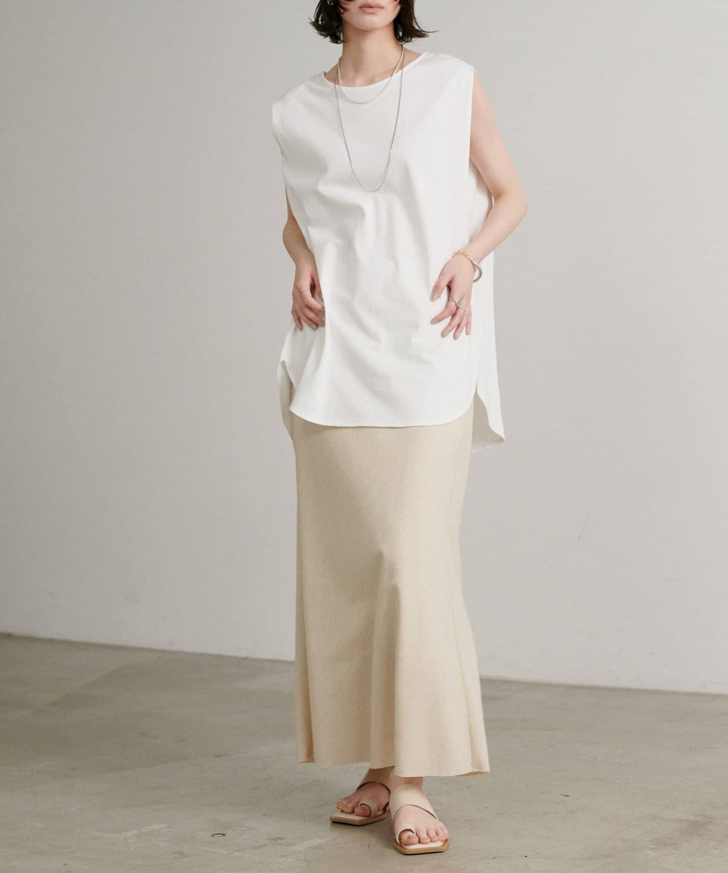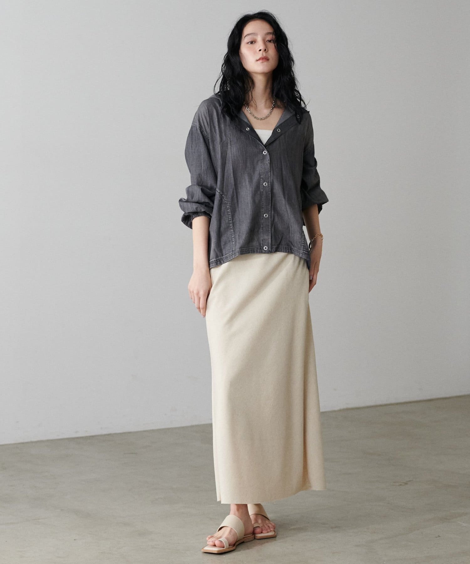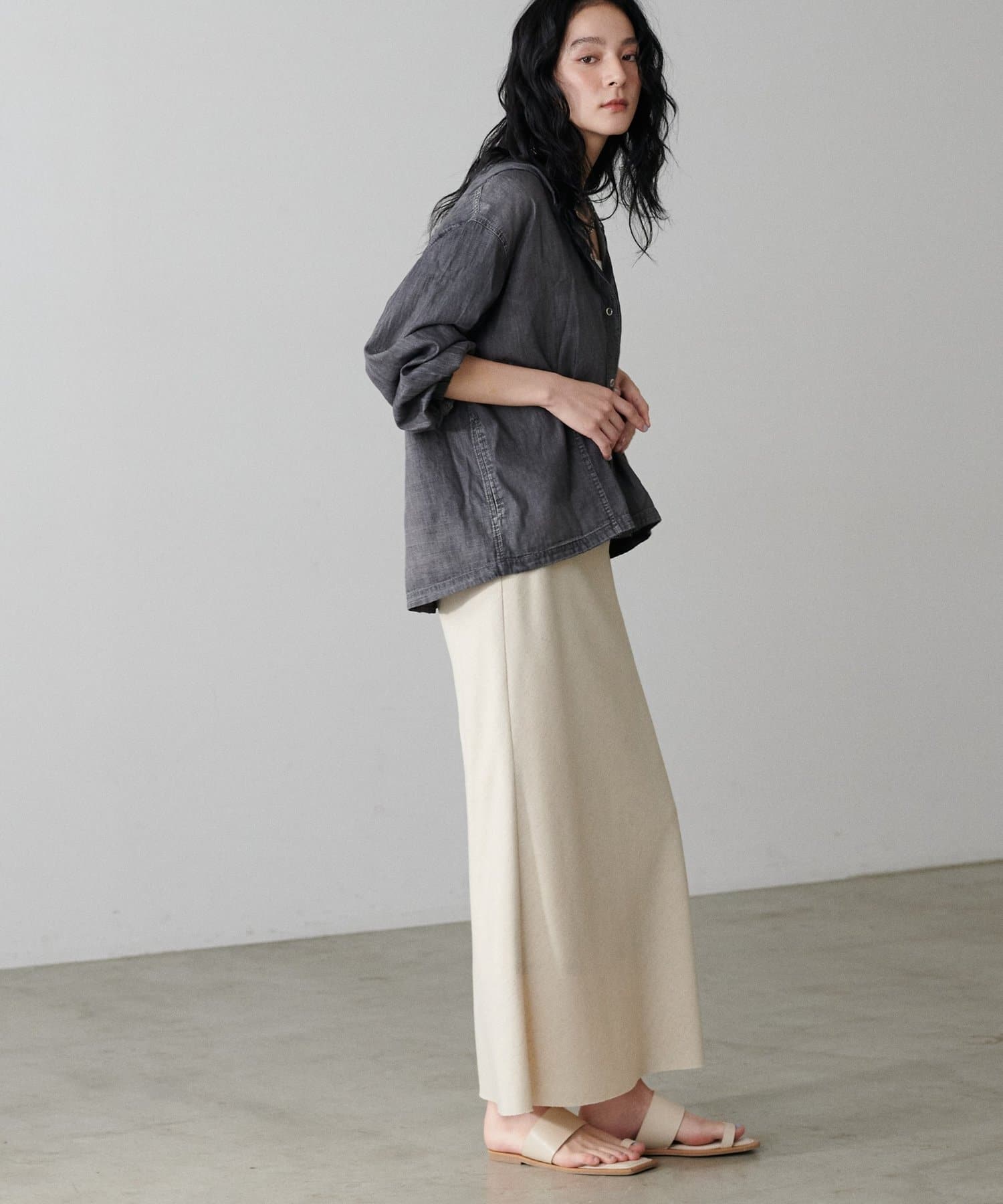 ナチュラルな表情が魅力の綿麻素材を使用した、シーズンムード高まるナロースカート。