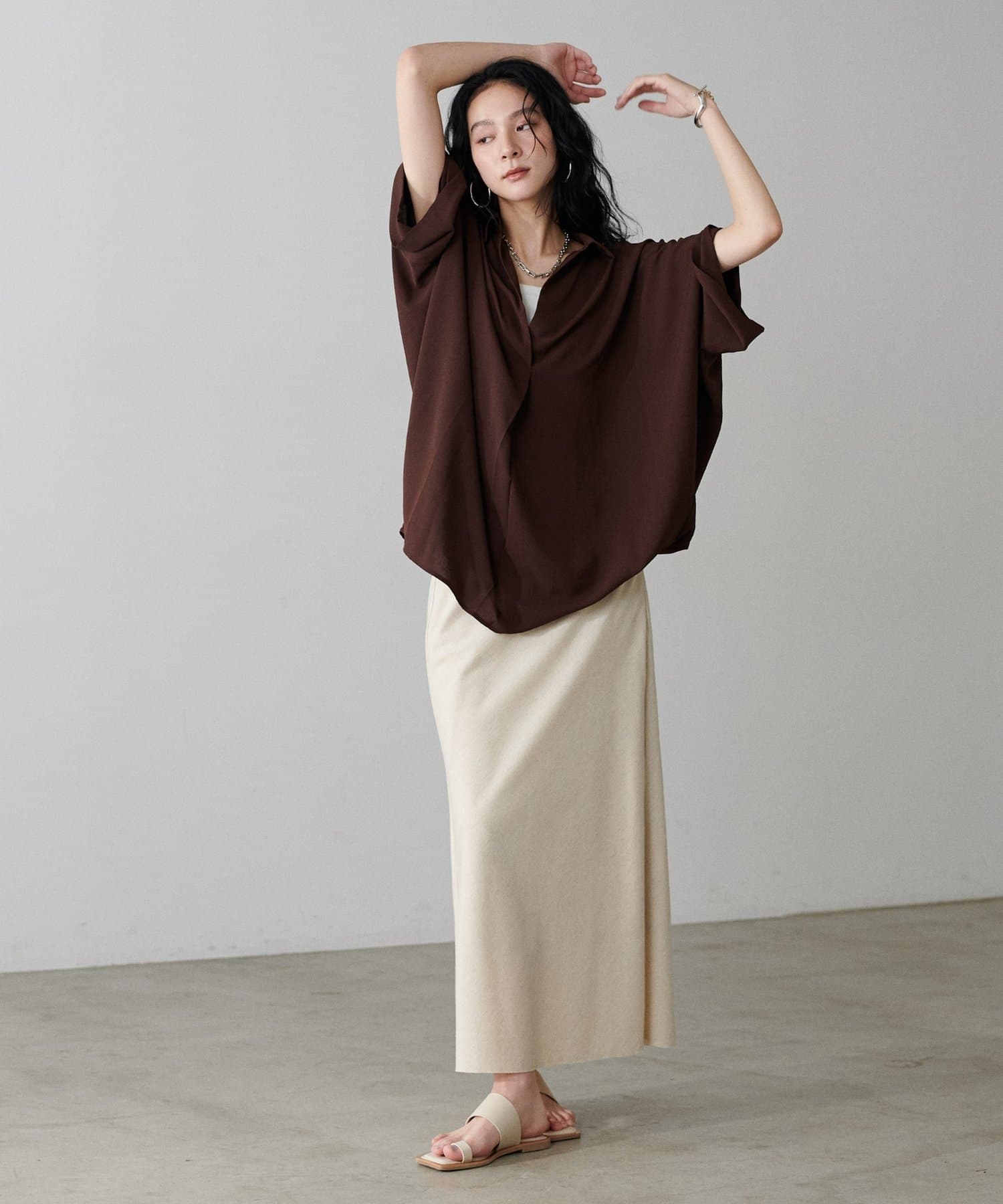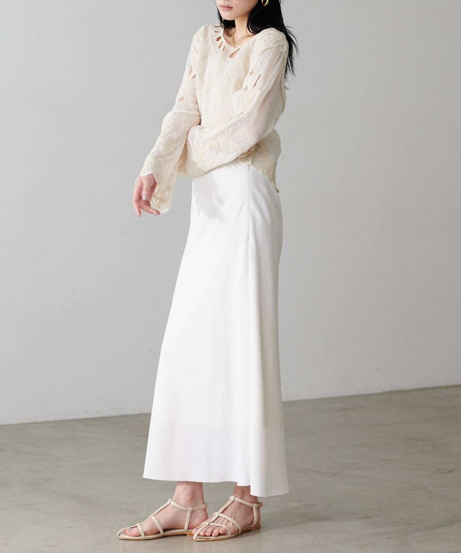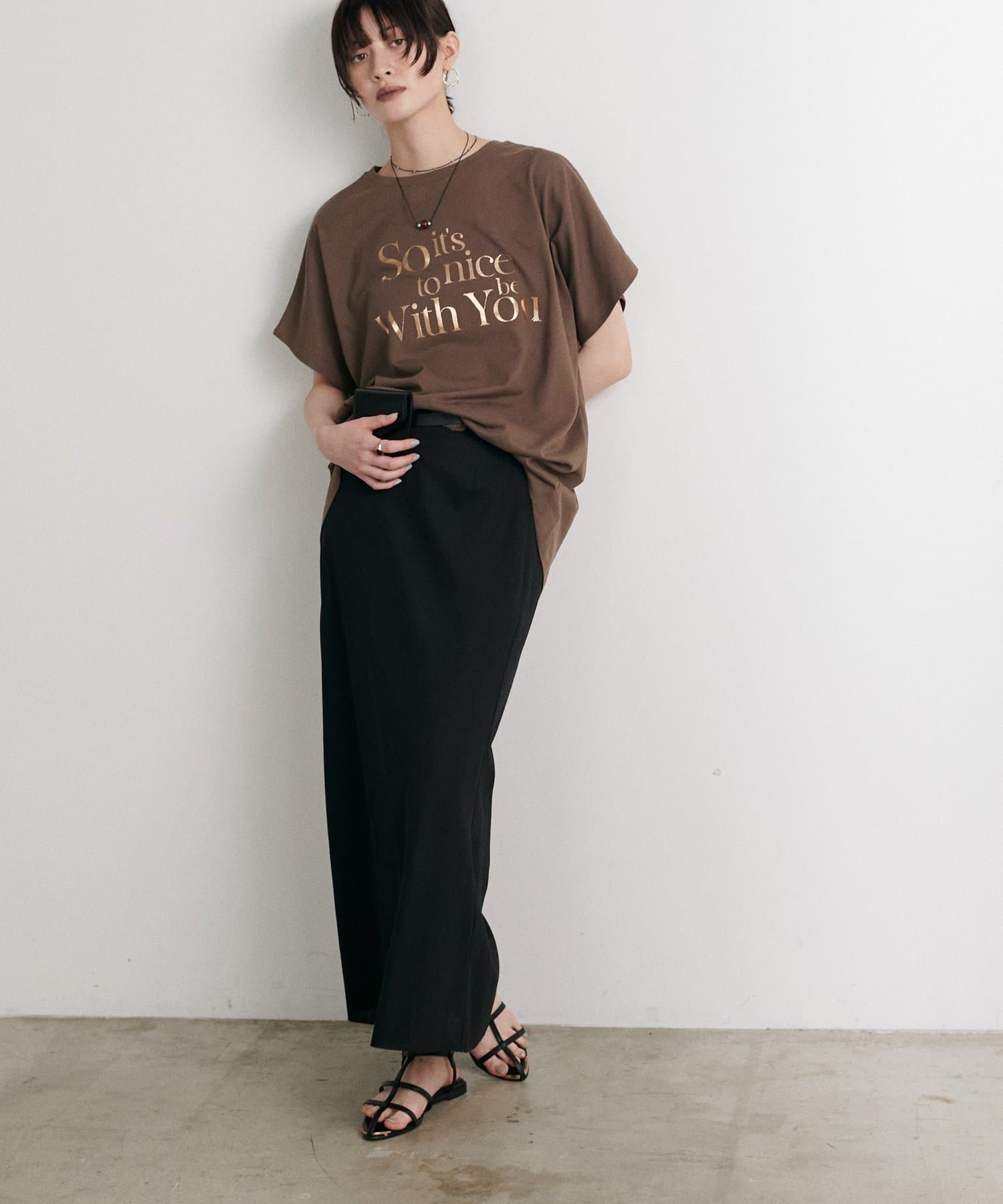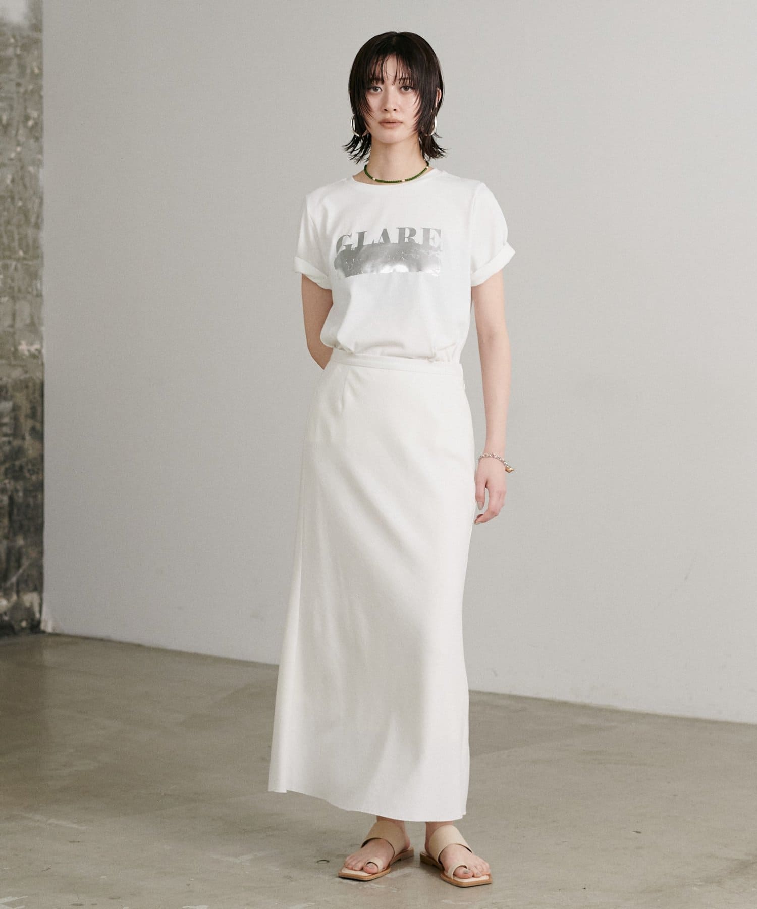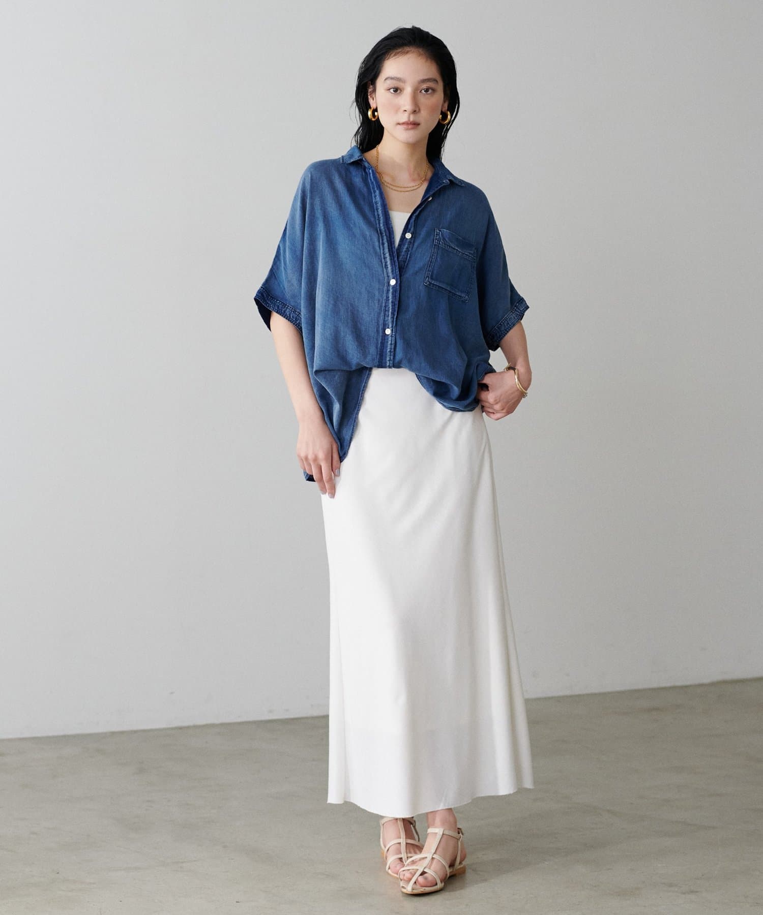 ナチュラルな表情が魅力の綿麻素材を使用した、シーズンムード高まるナロースカート。