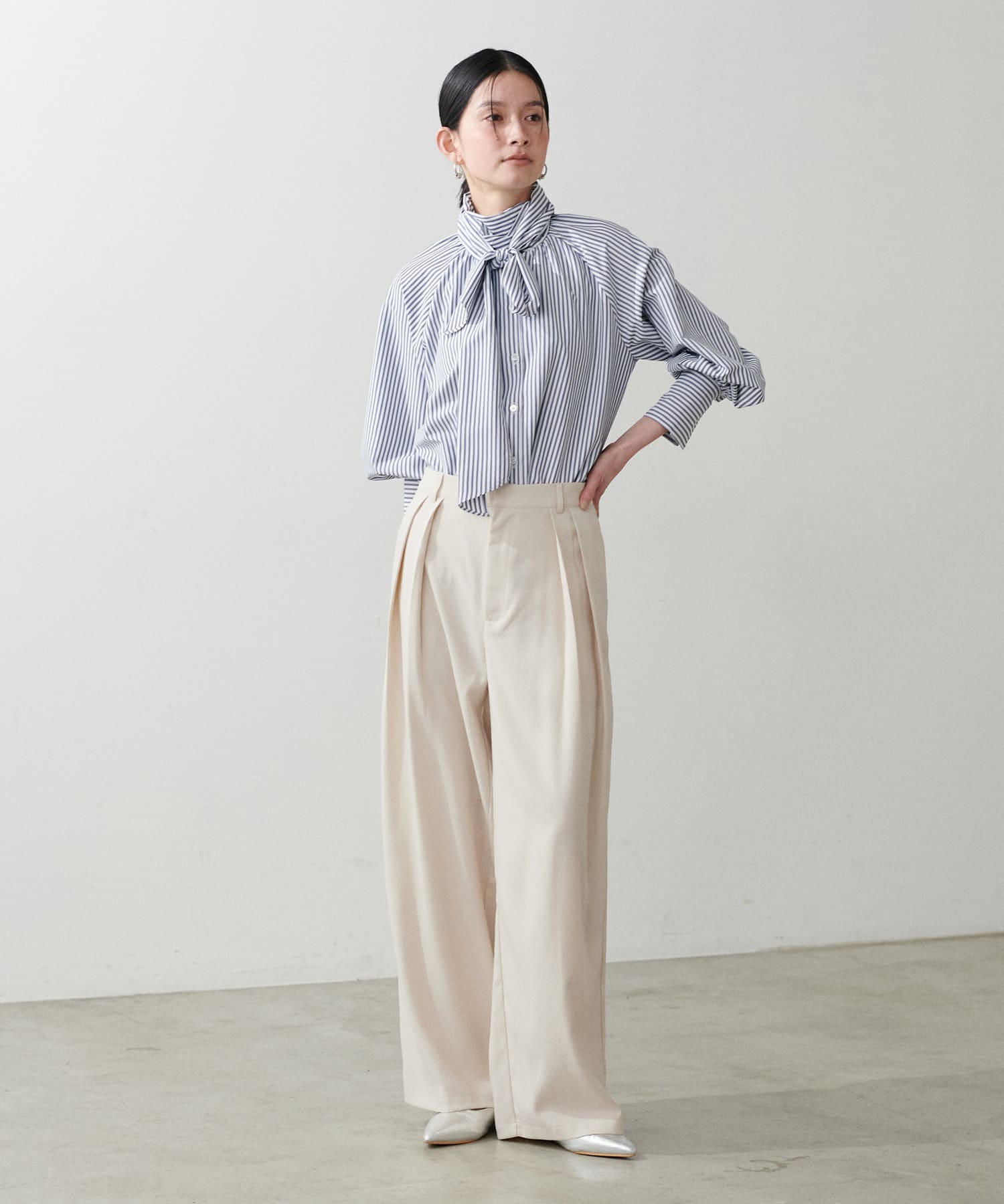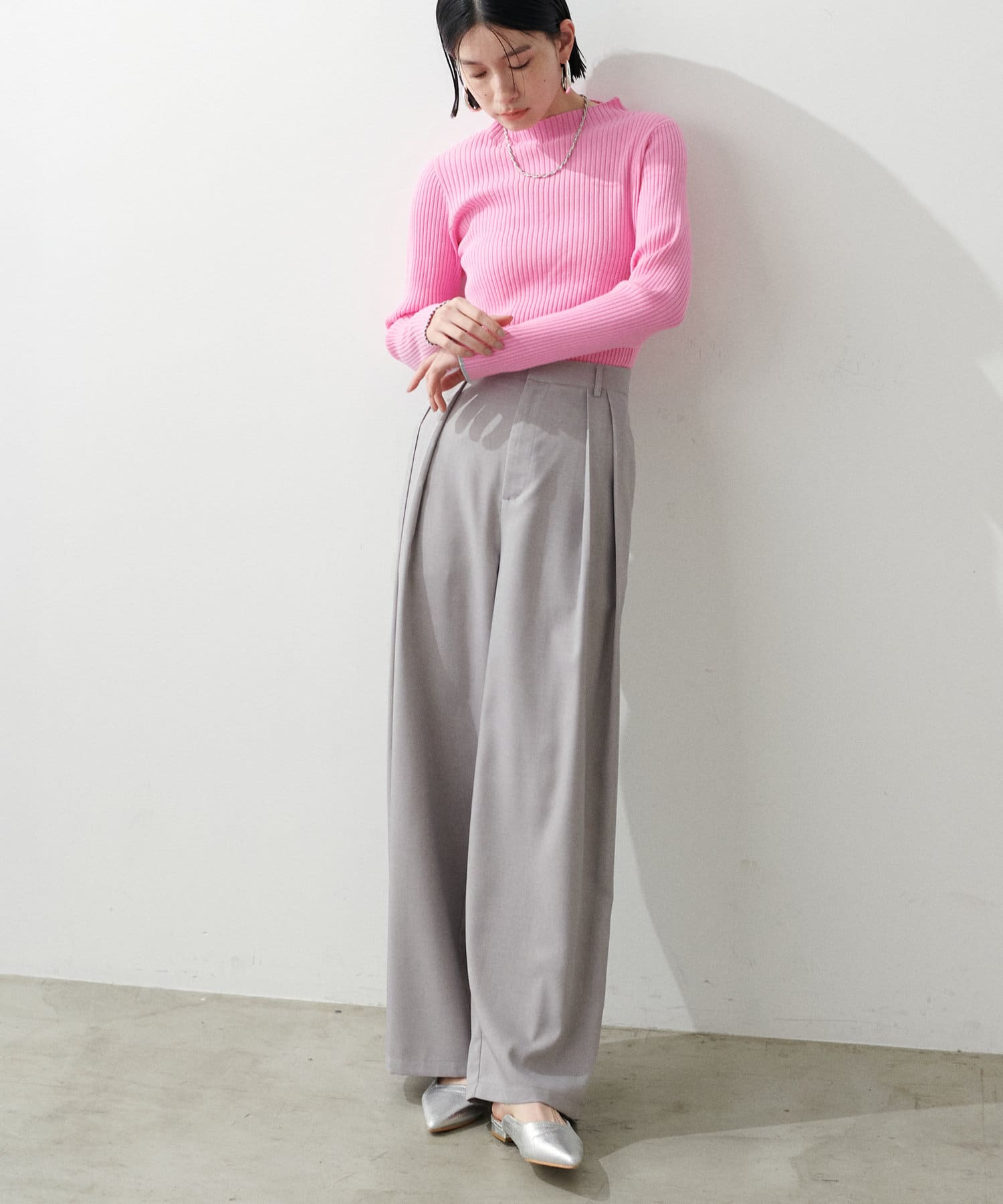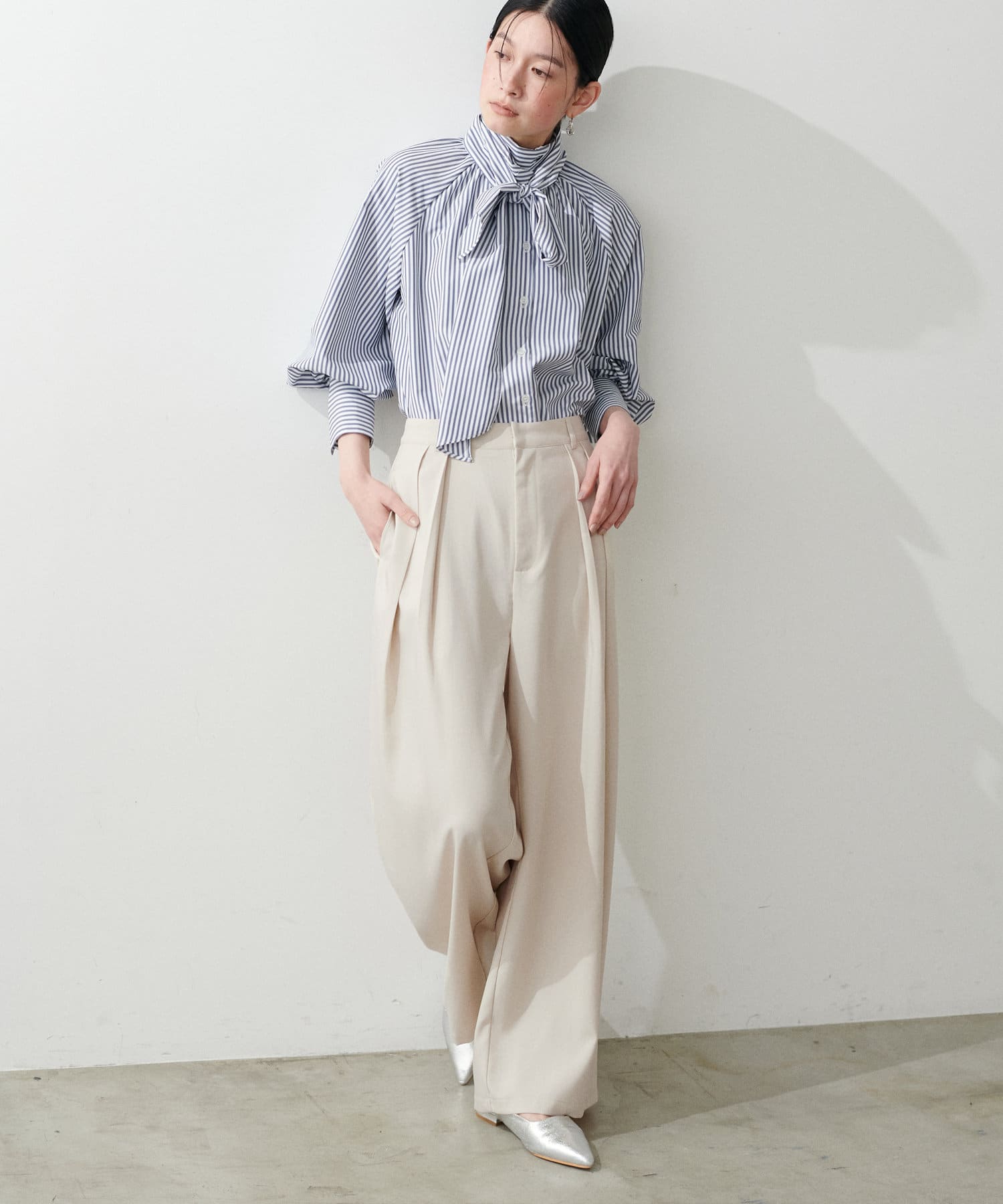 ストンと落ちるシルエットでワイドながらも