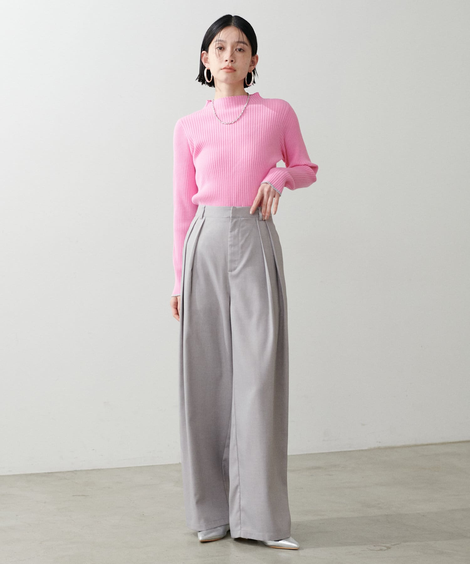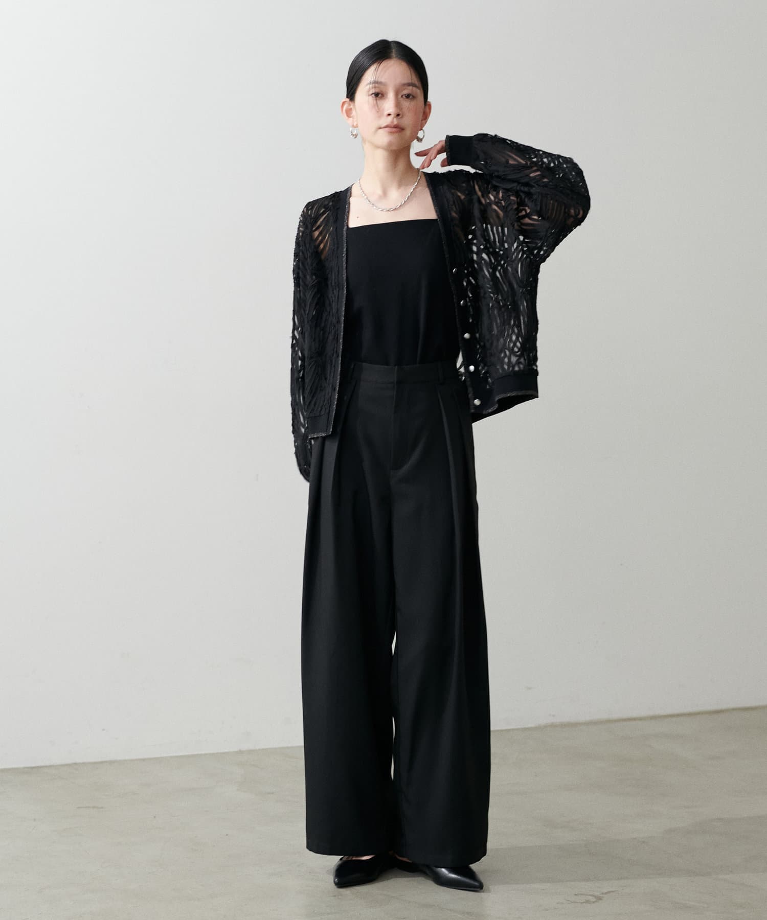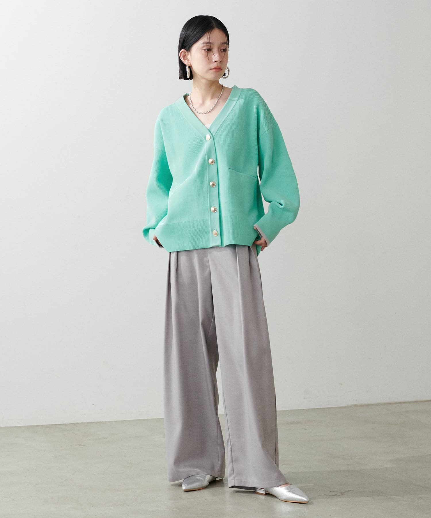 ストンと落ちるシルエットでワイドながらも