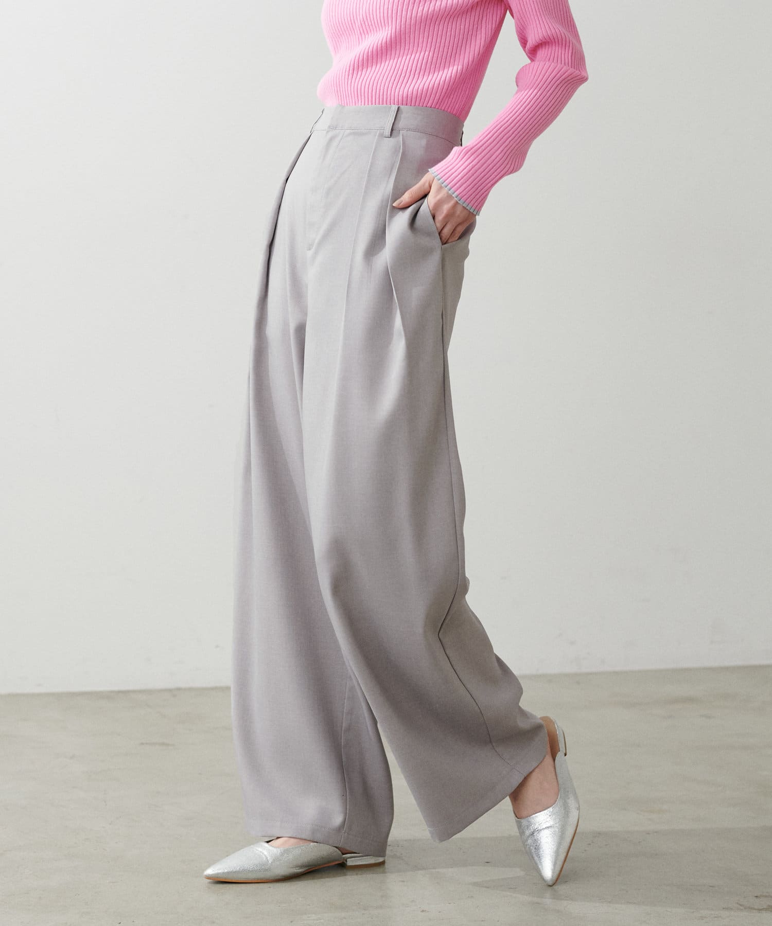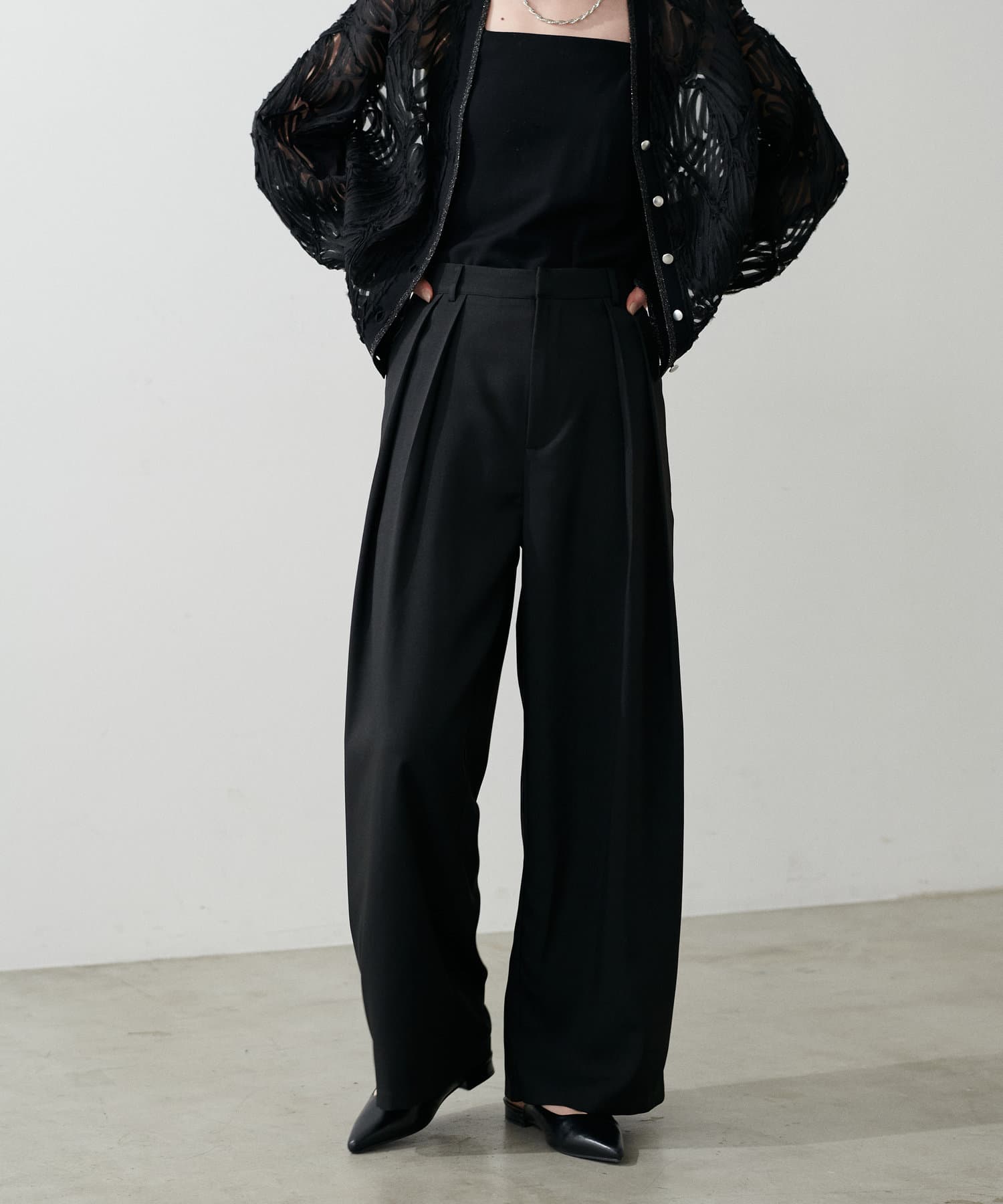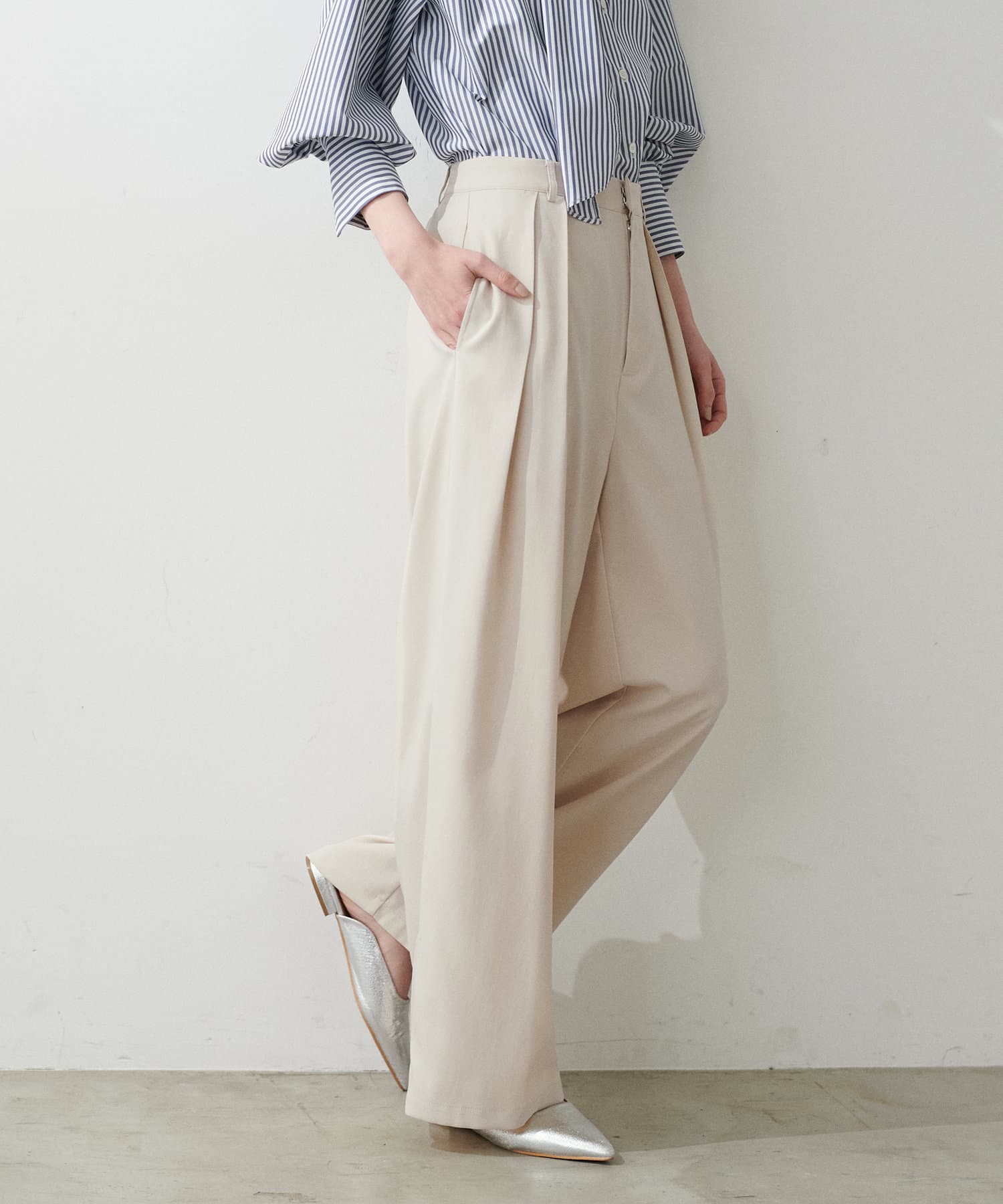 タックトラウザーズロングパンツ