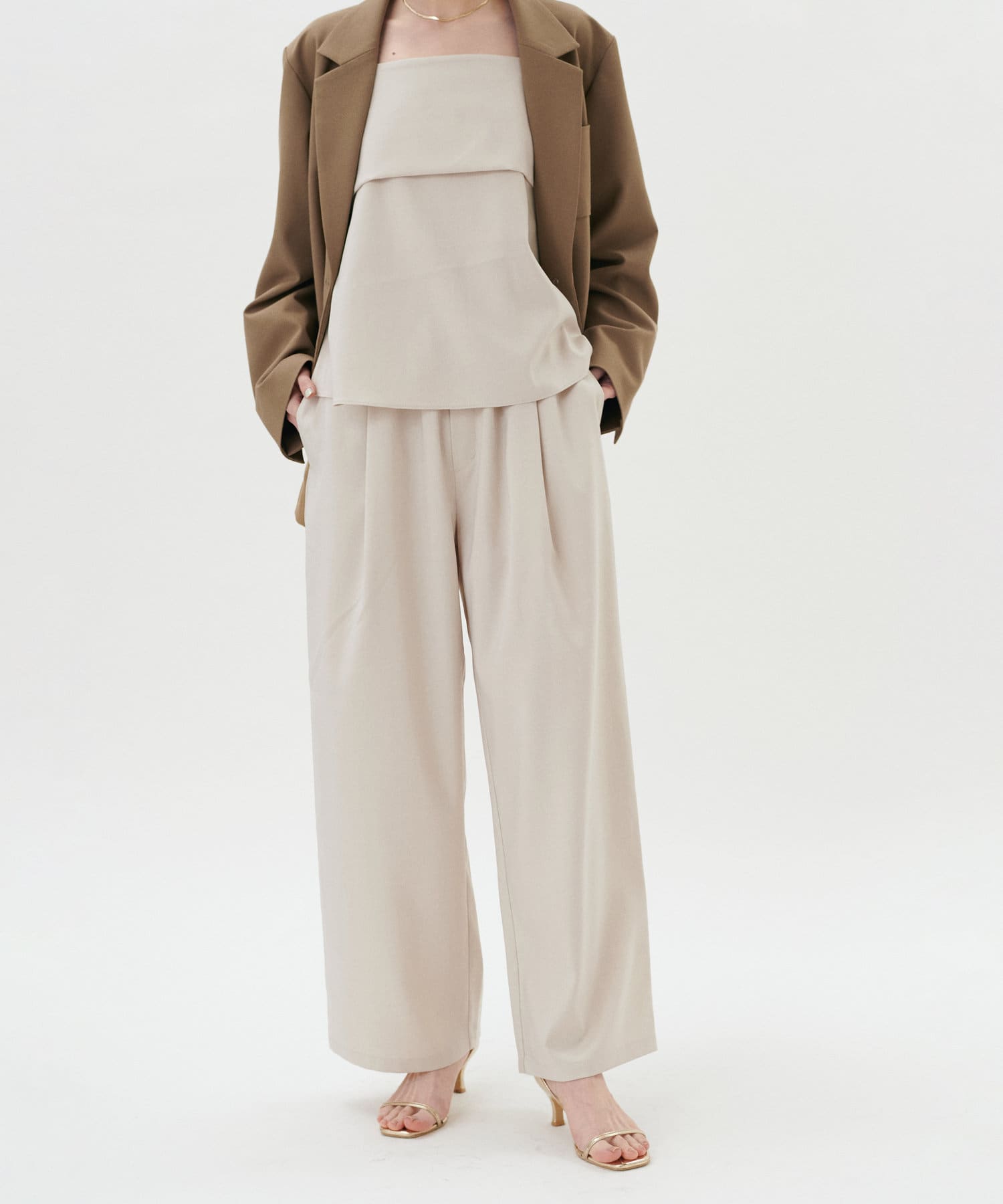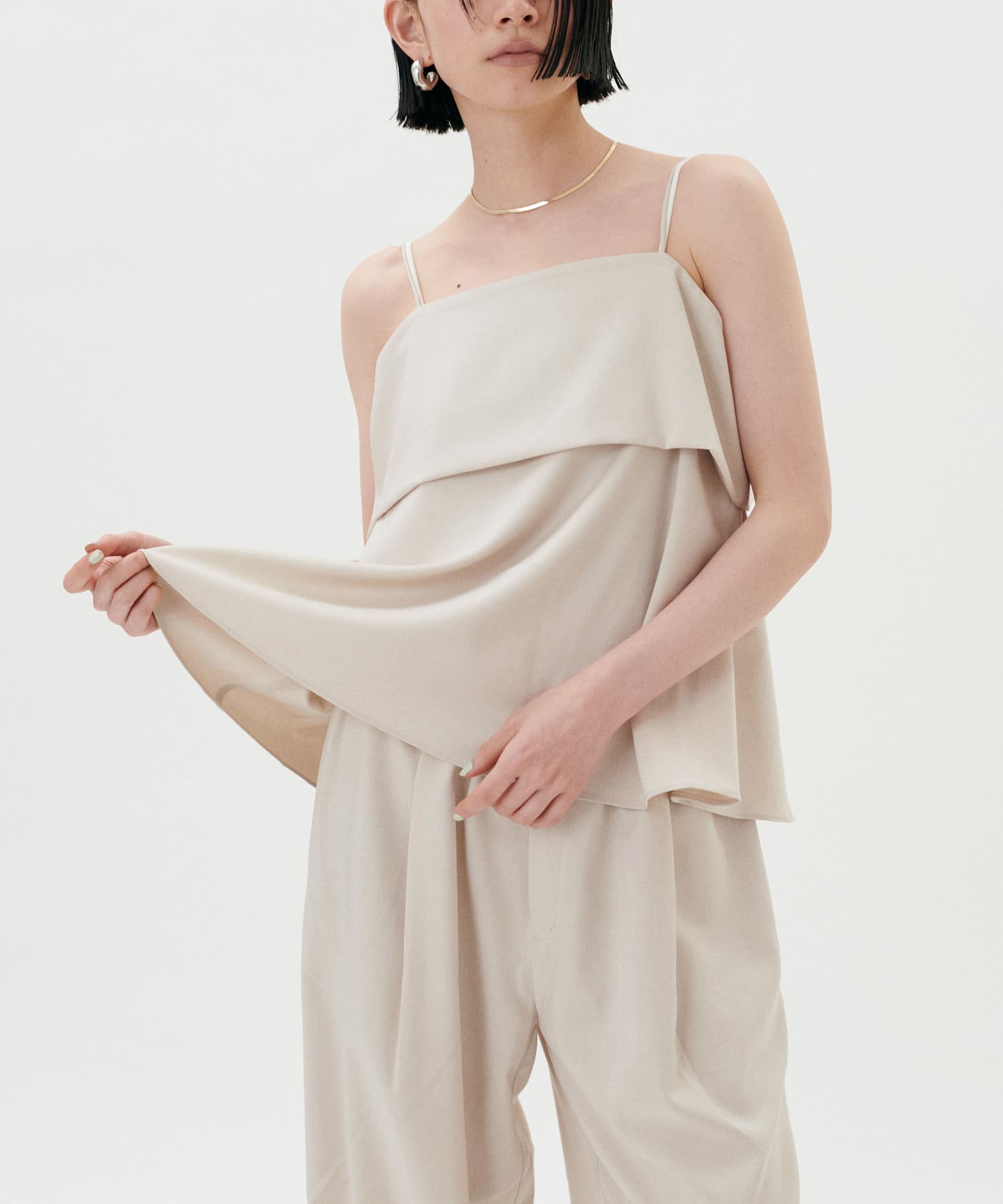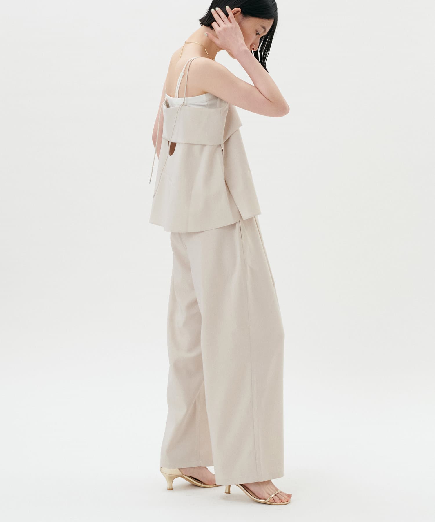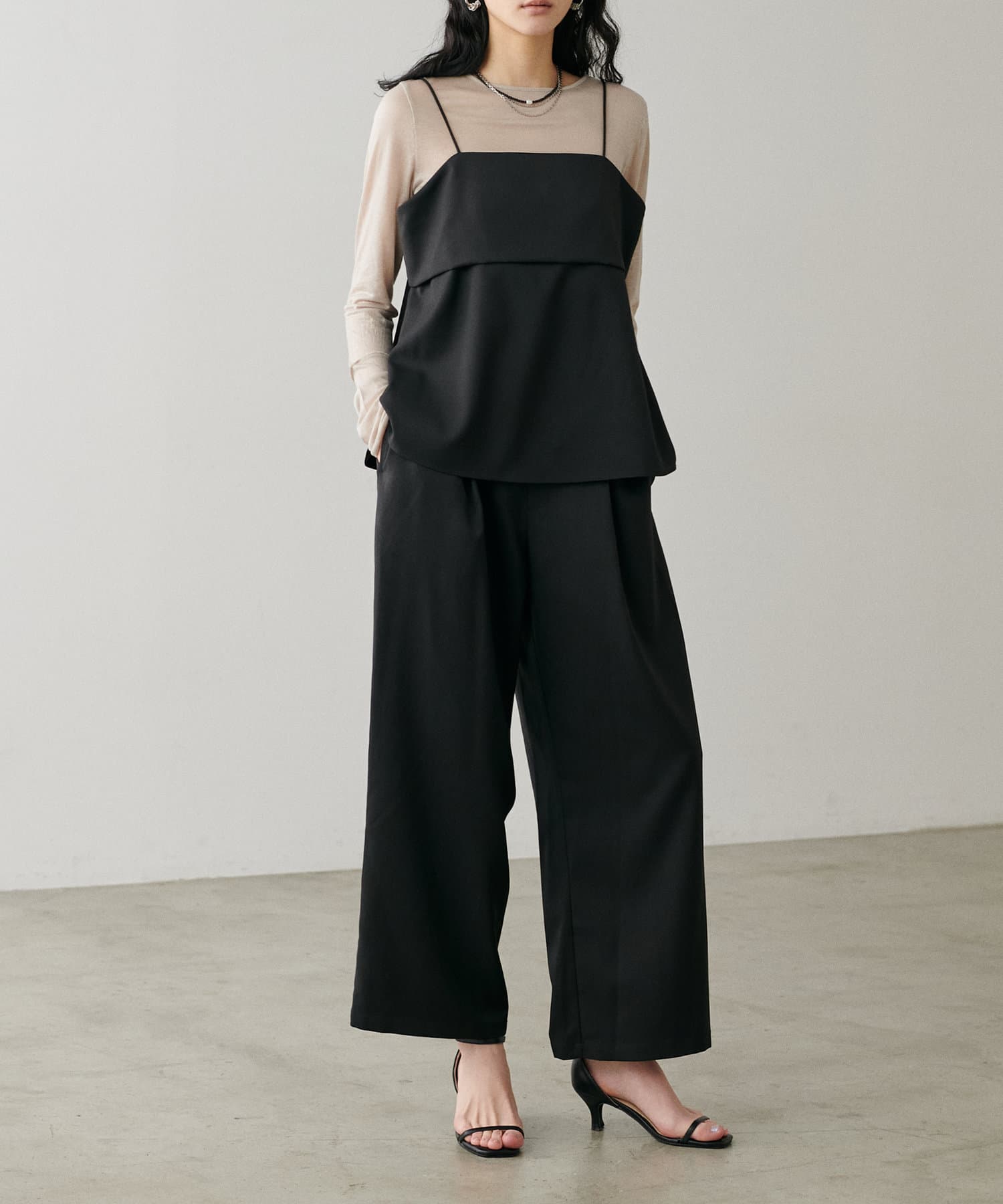 キャミソール+パンツのキレイめかつリラックス感漂うセットアイテム。