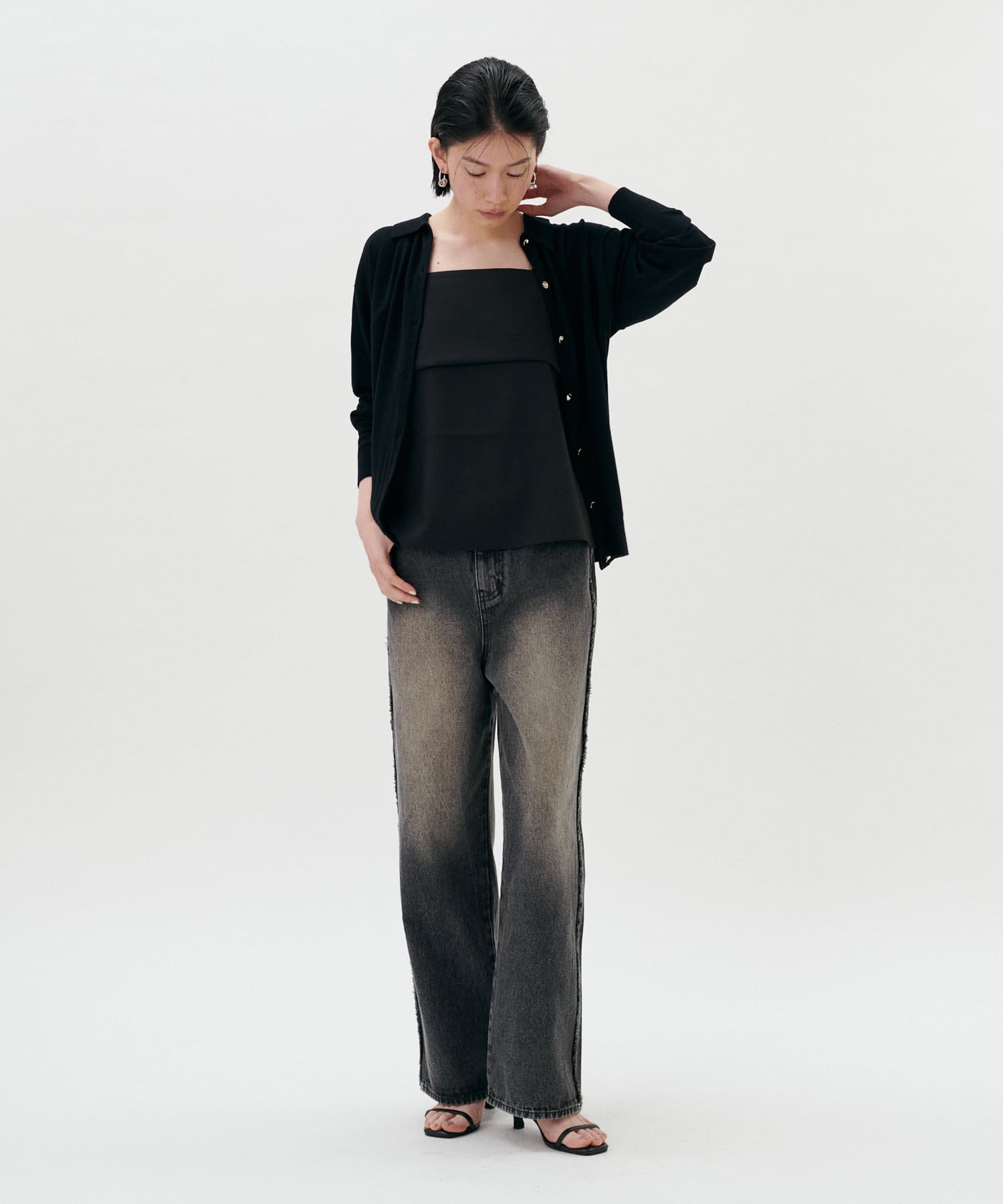 コーディネートに活躍します。キャミはフレアなシルエットなので