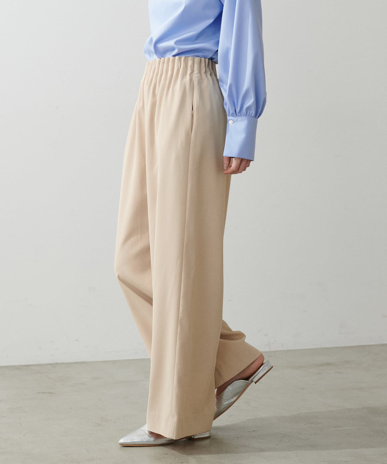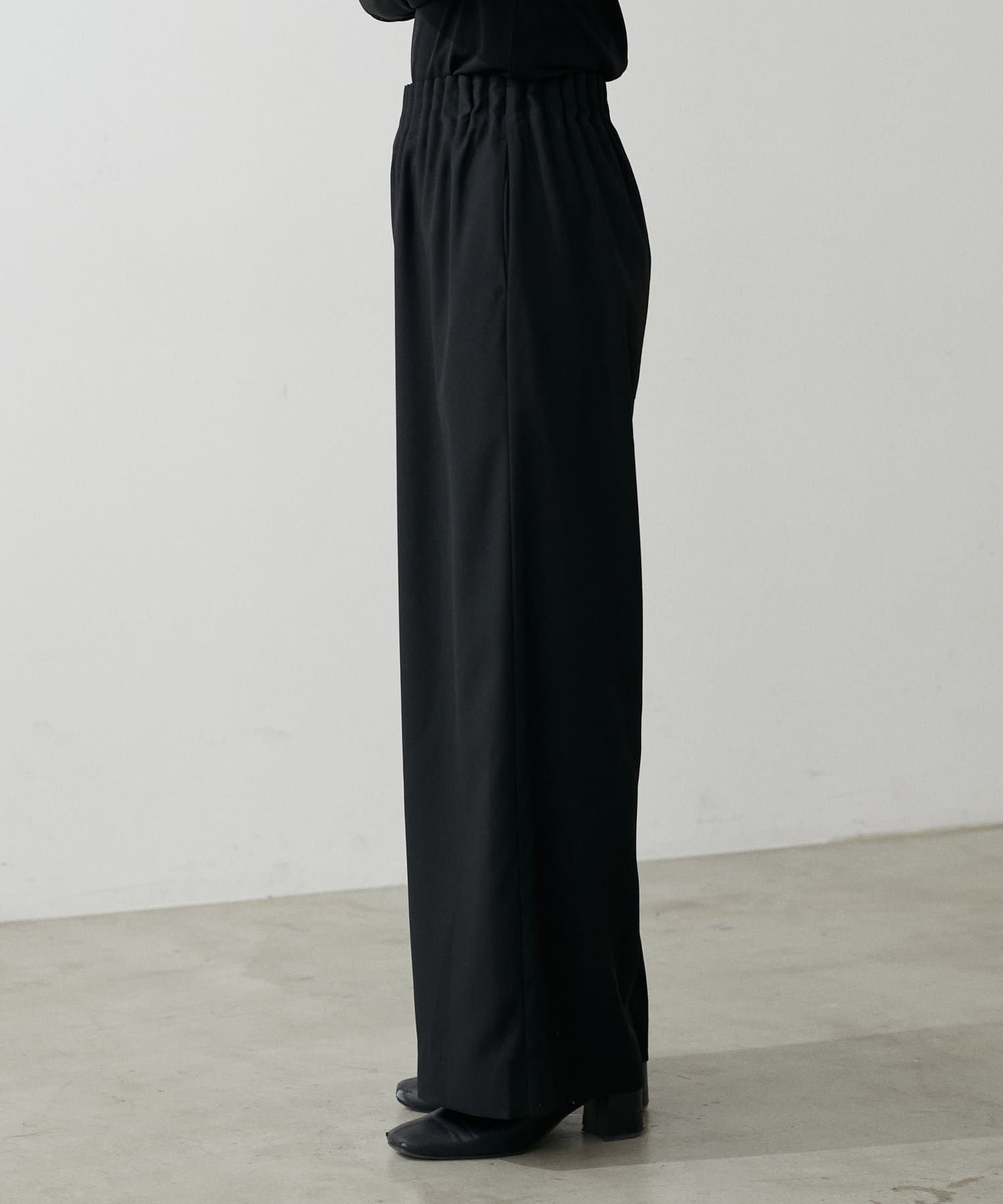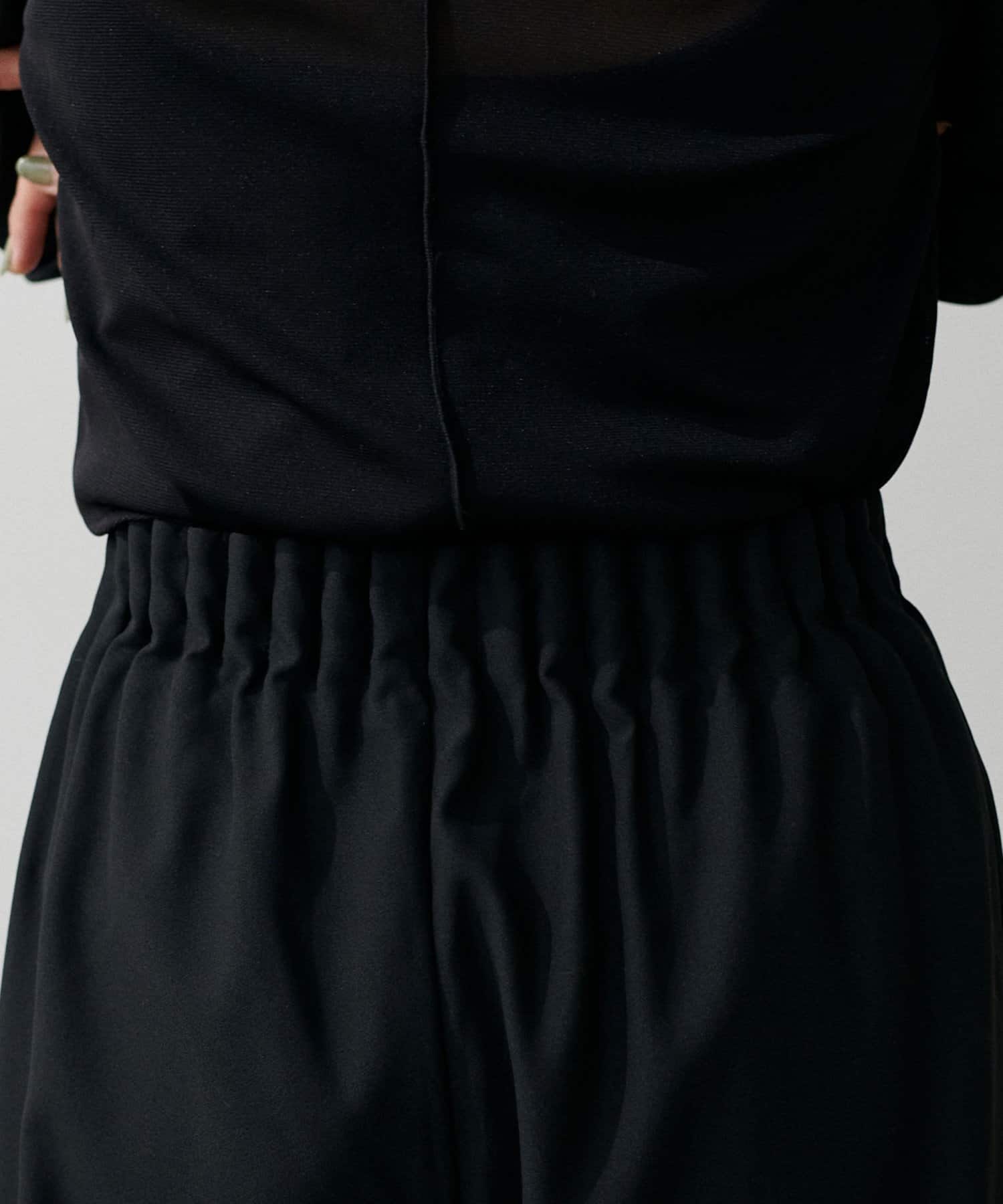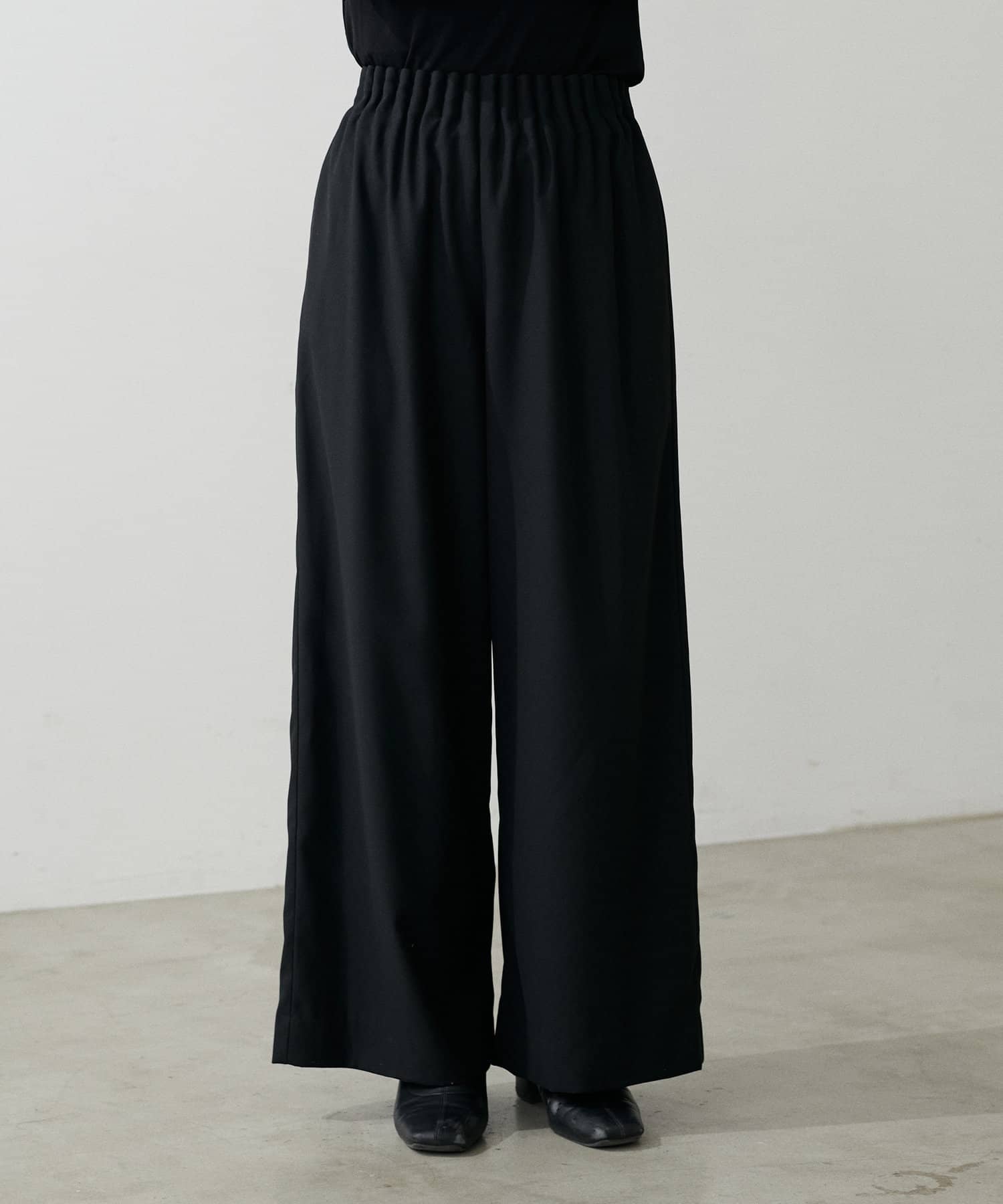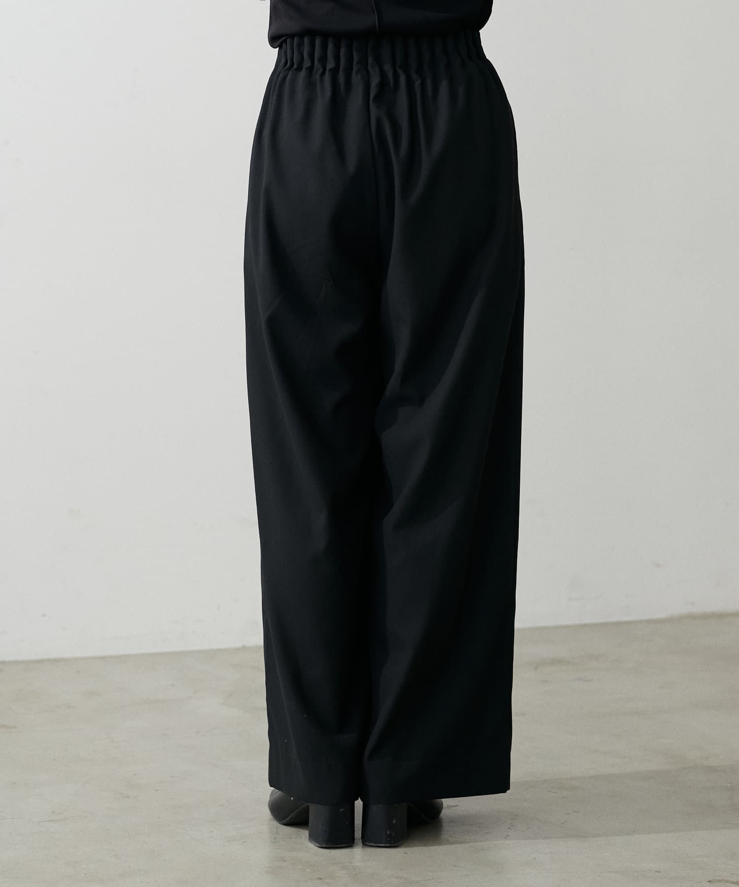 ワイドシルエットでシンプルな見た目ながら、ウエストがキャタピラーのような立体的なタックデザインで