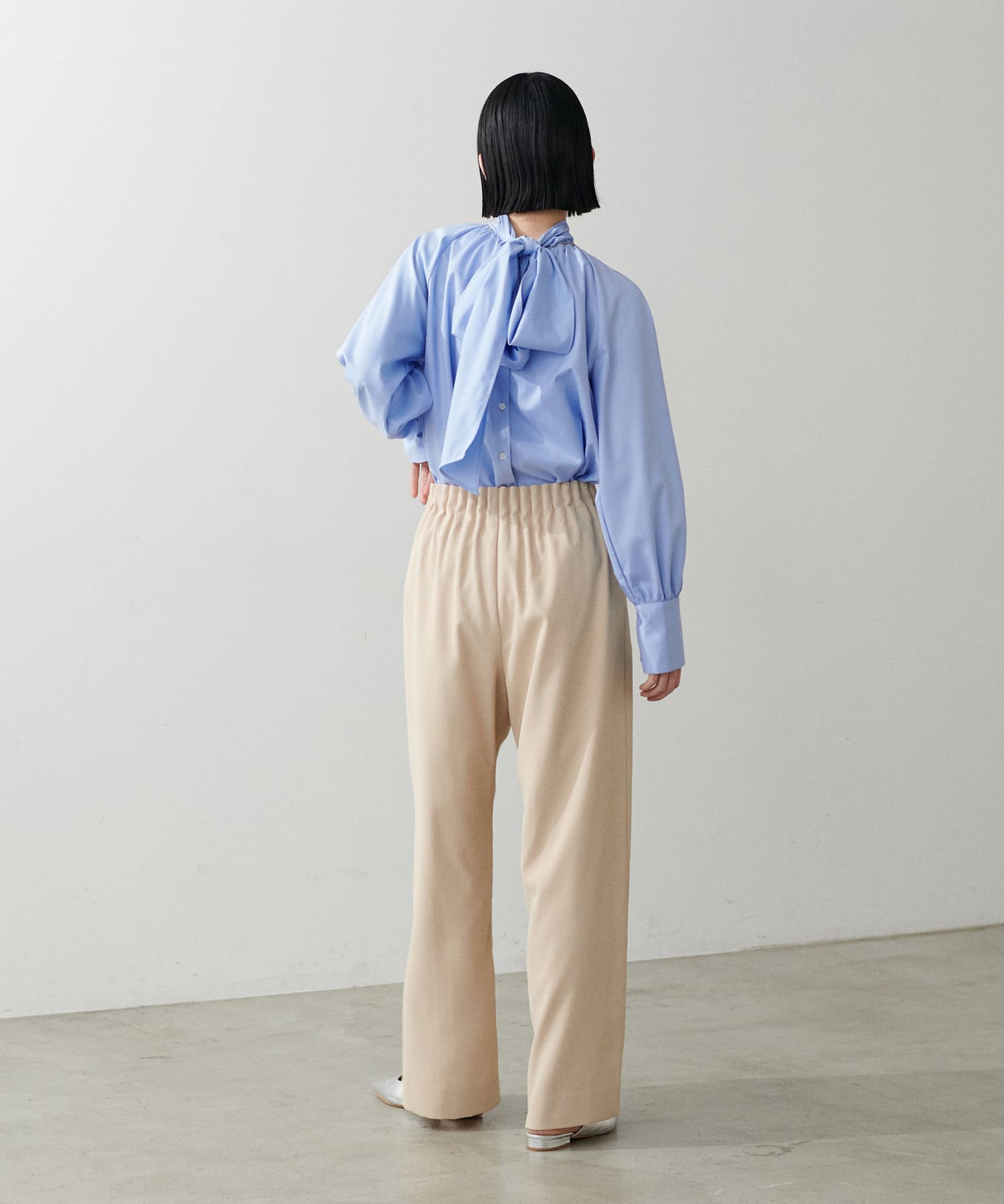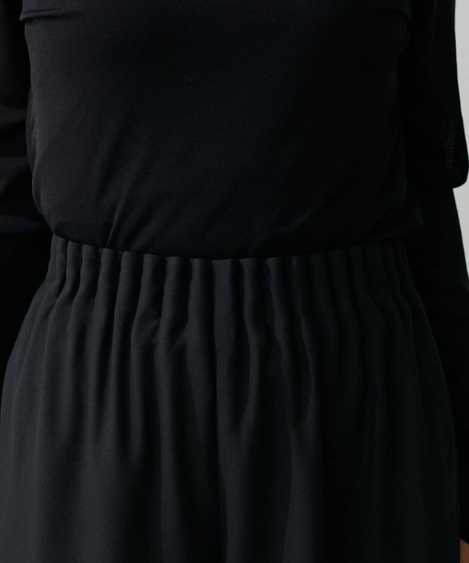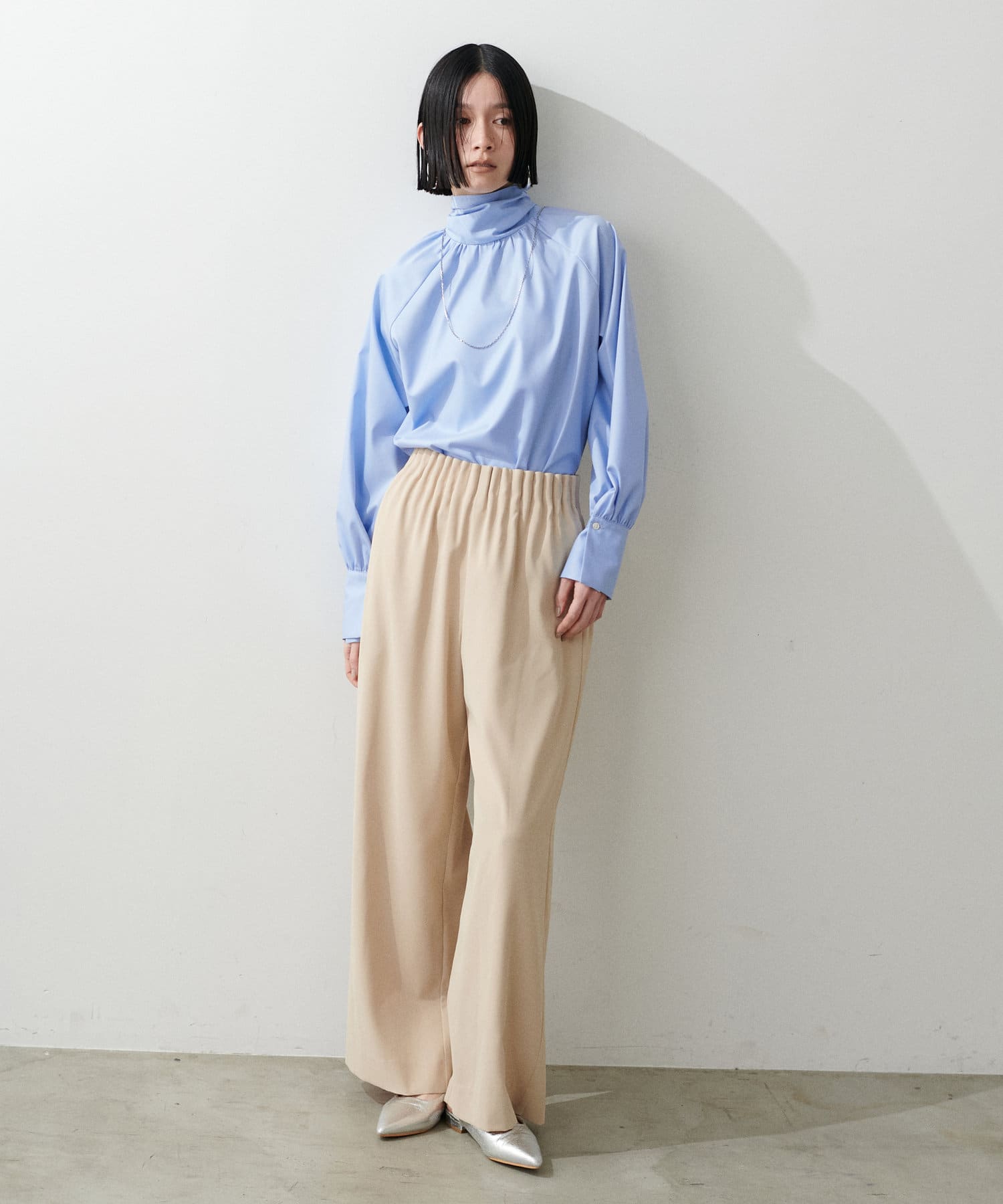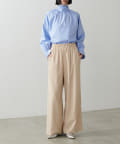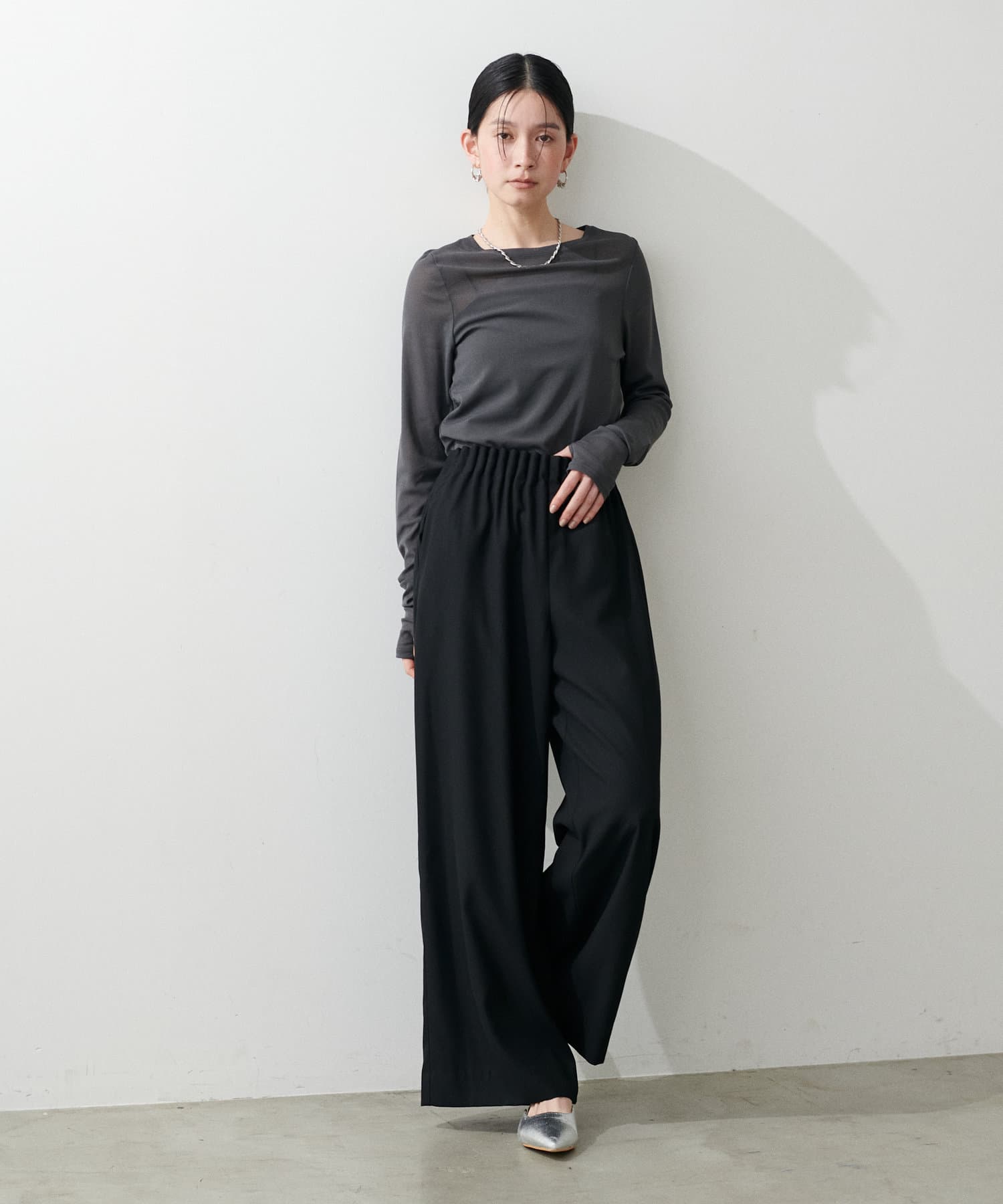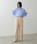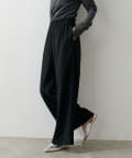 ワイドシルエットでシンプルな見た目ながら、ウエストがキャタピラーのような立体的なタックデザインで