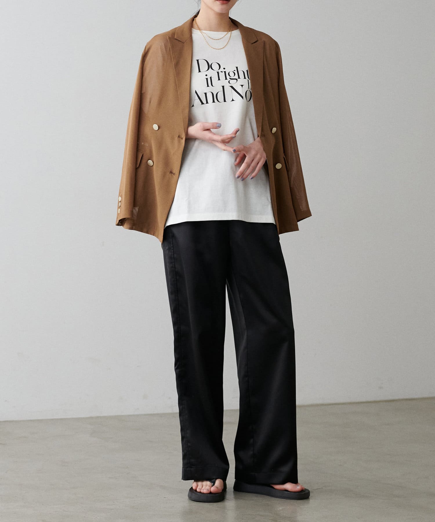 落ち感がありストンとした上品なシルエットなので、シンプなニットやシャツと合わせるだけでサマになります。