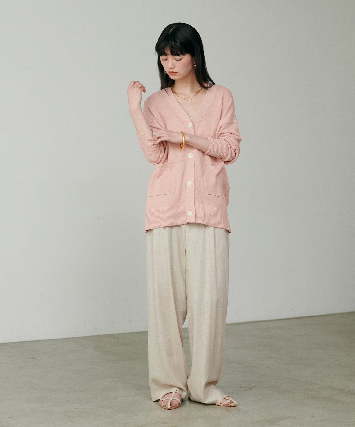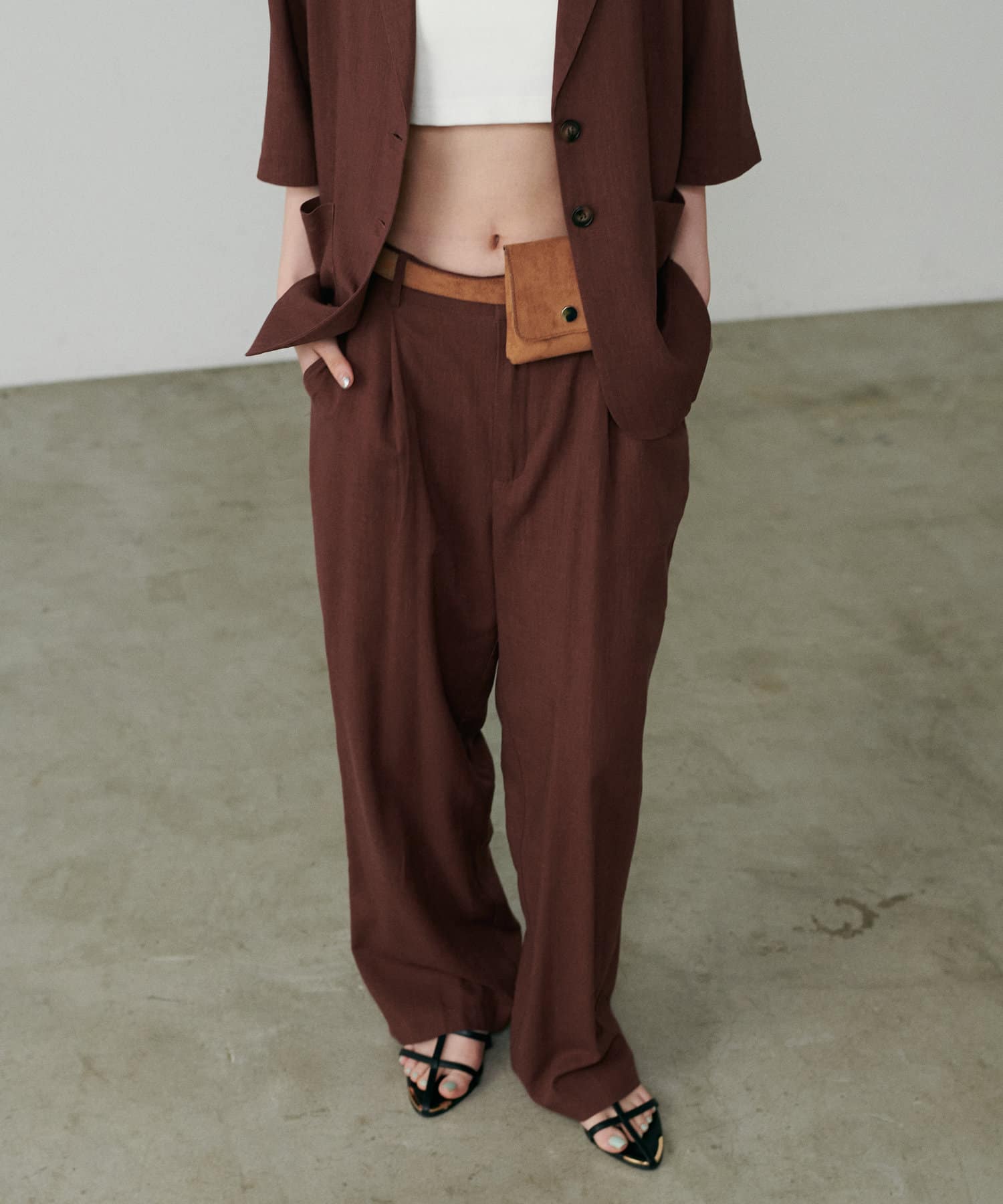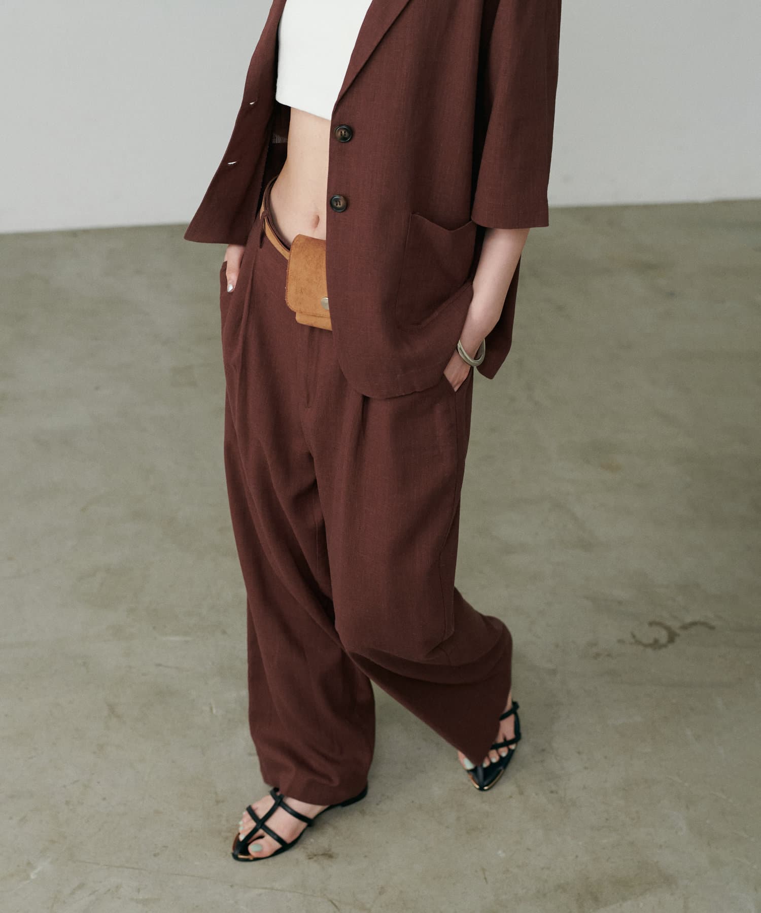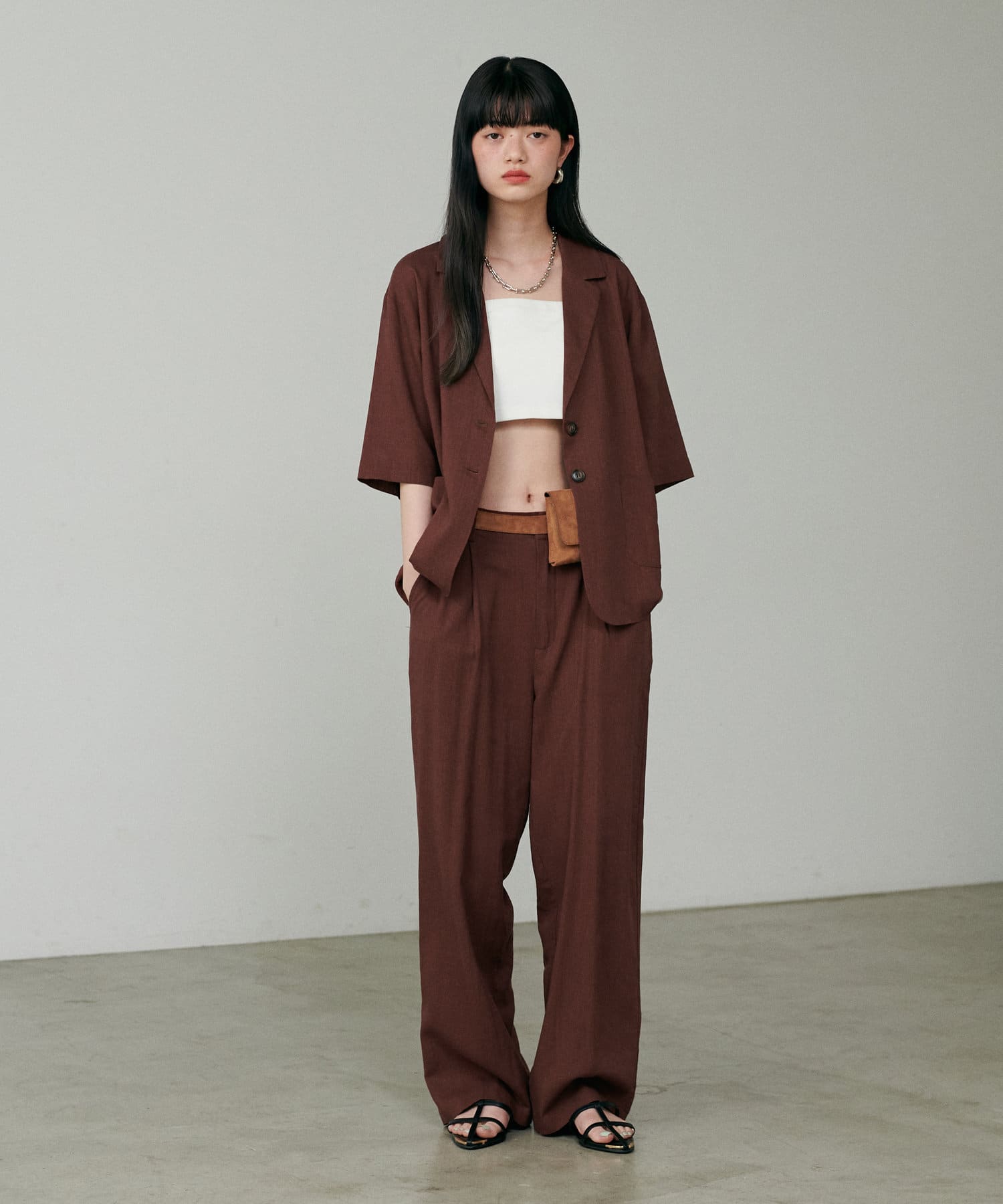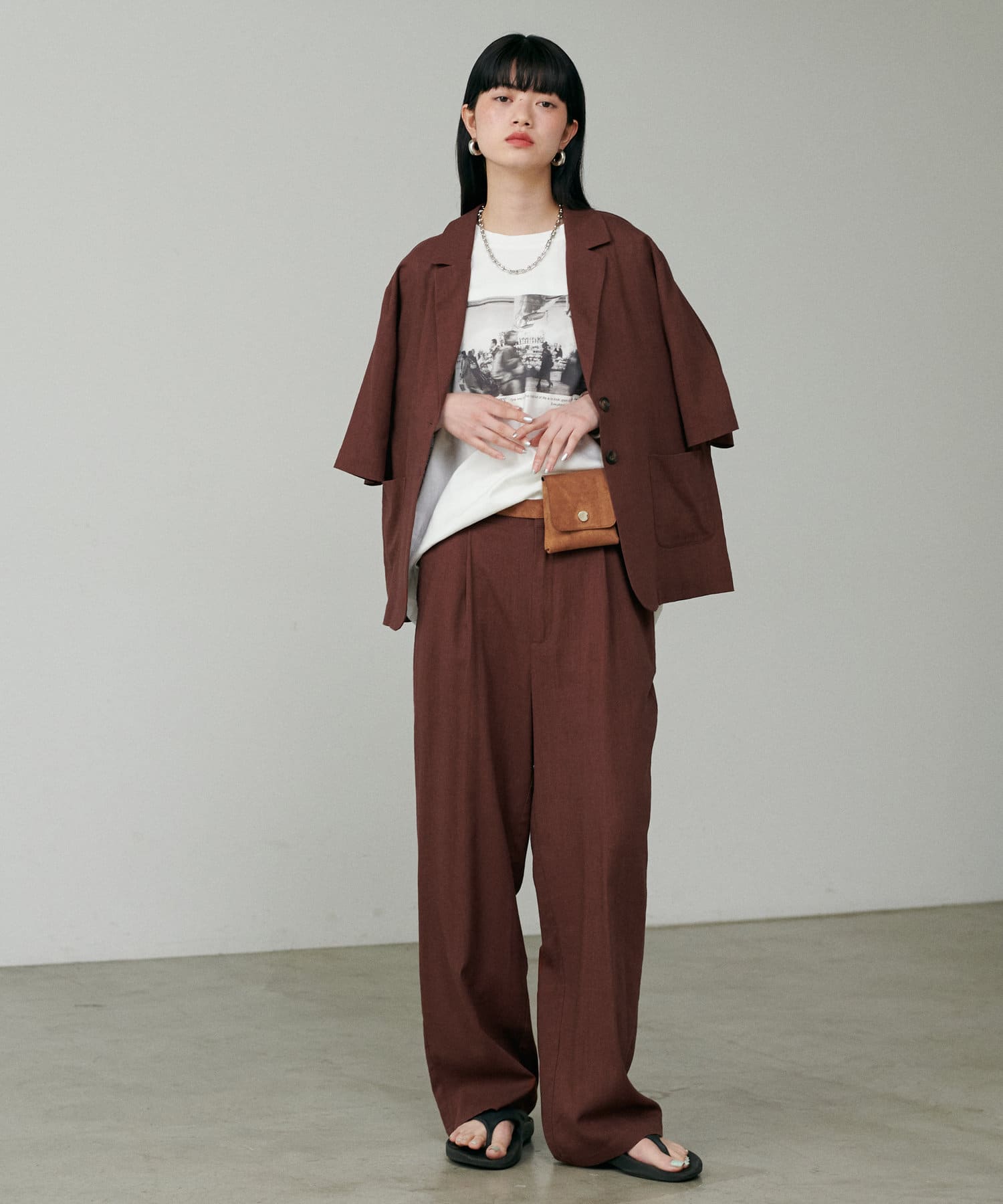 3051070140 麻調5分袖ジャケットとのセットアップ着用がおすすめ。