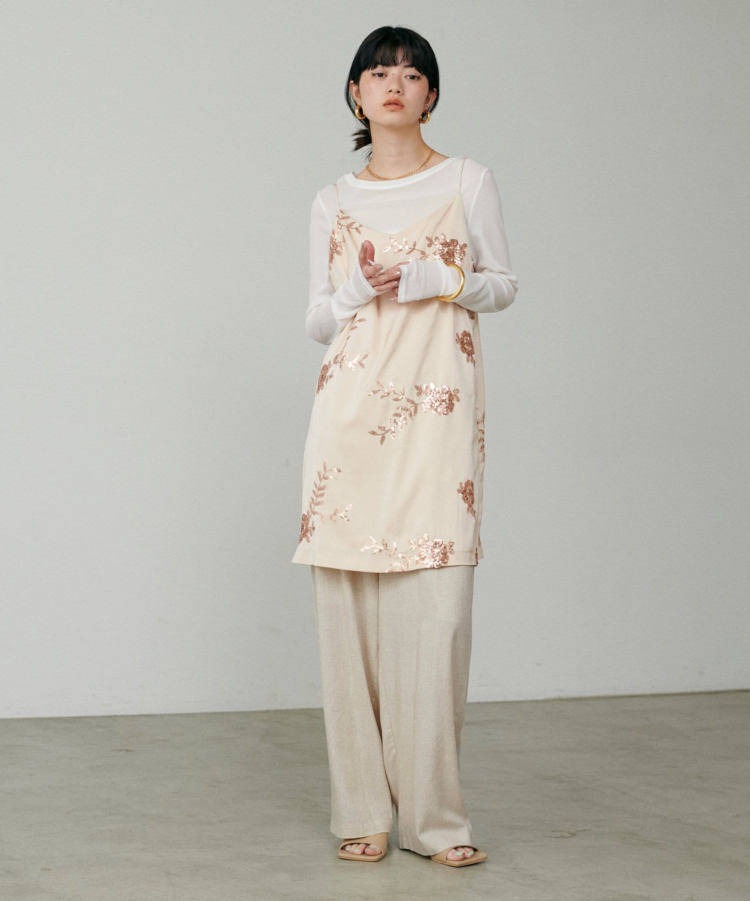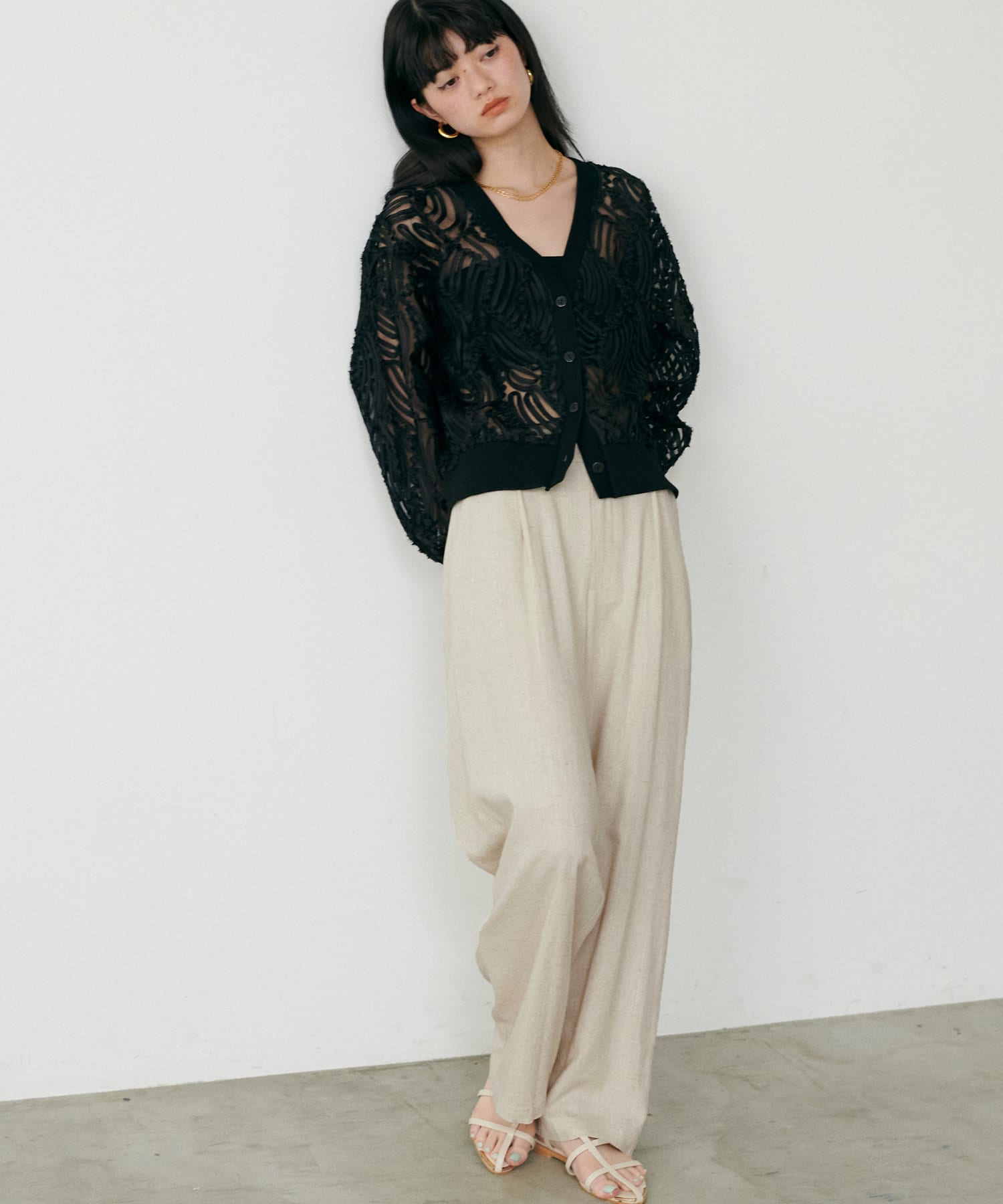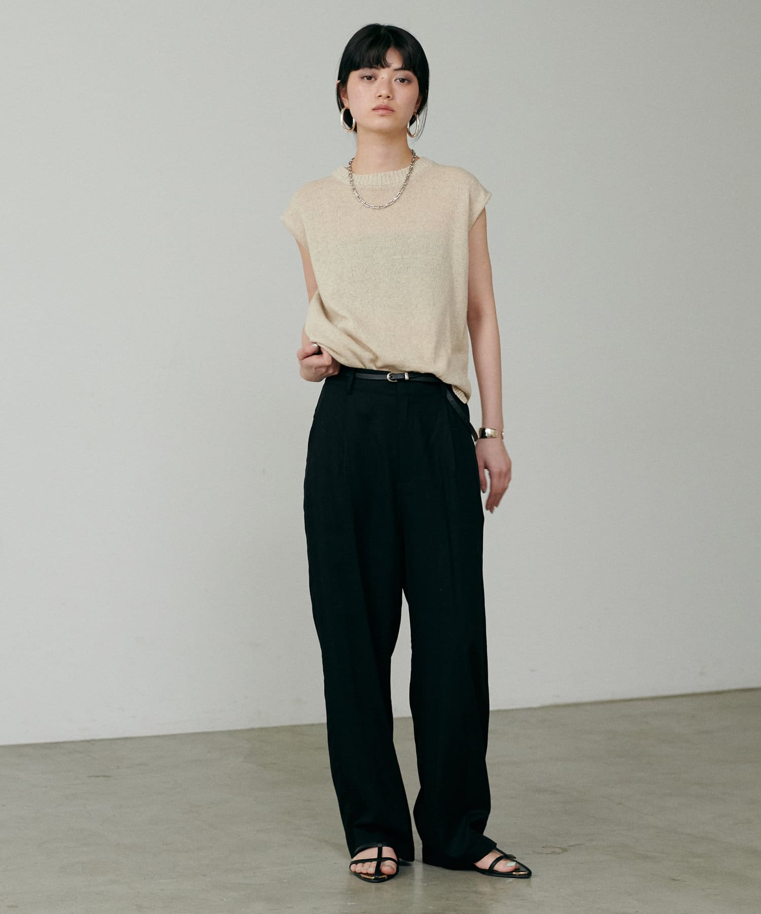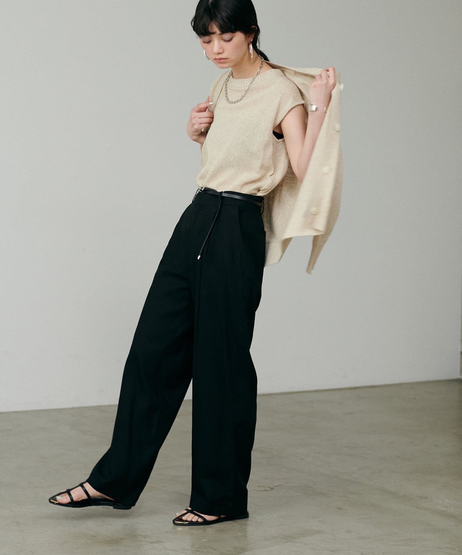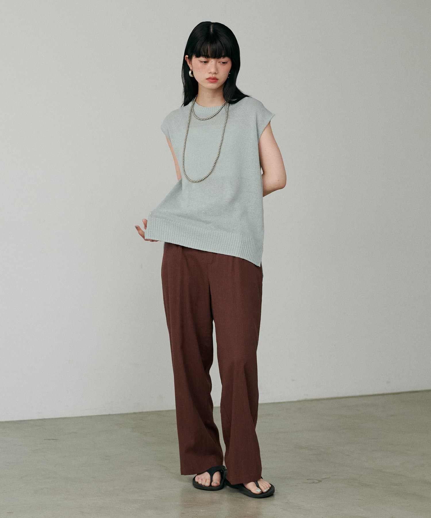 3051070140 麻調5分袖ジャケットとのセットアップ着用がおすすめ。