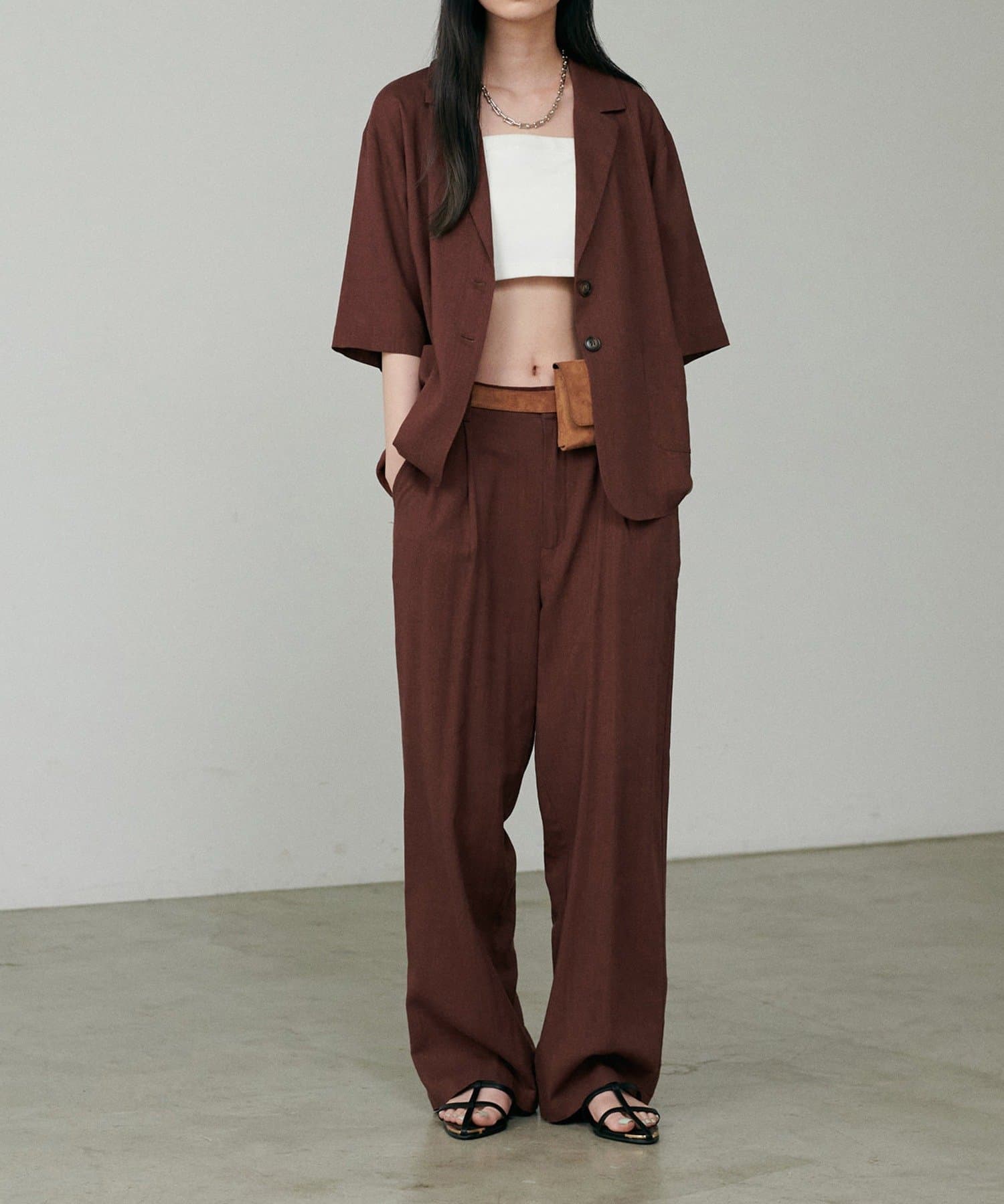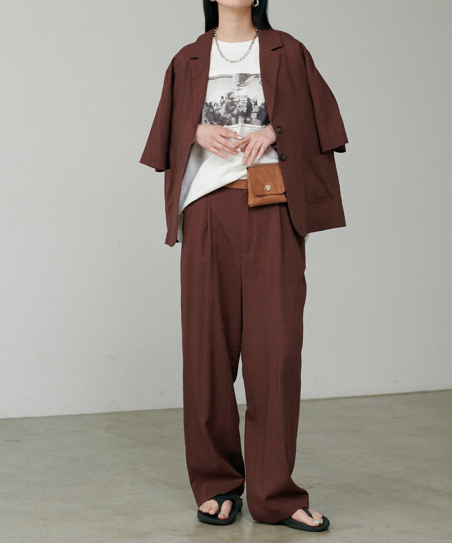 3051070140 麻調5分袖ジャケットとのセットアップ着用がおすすめ。