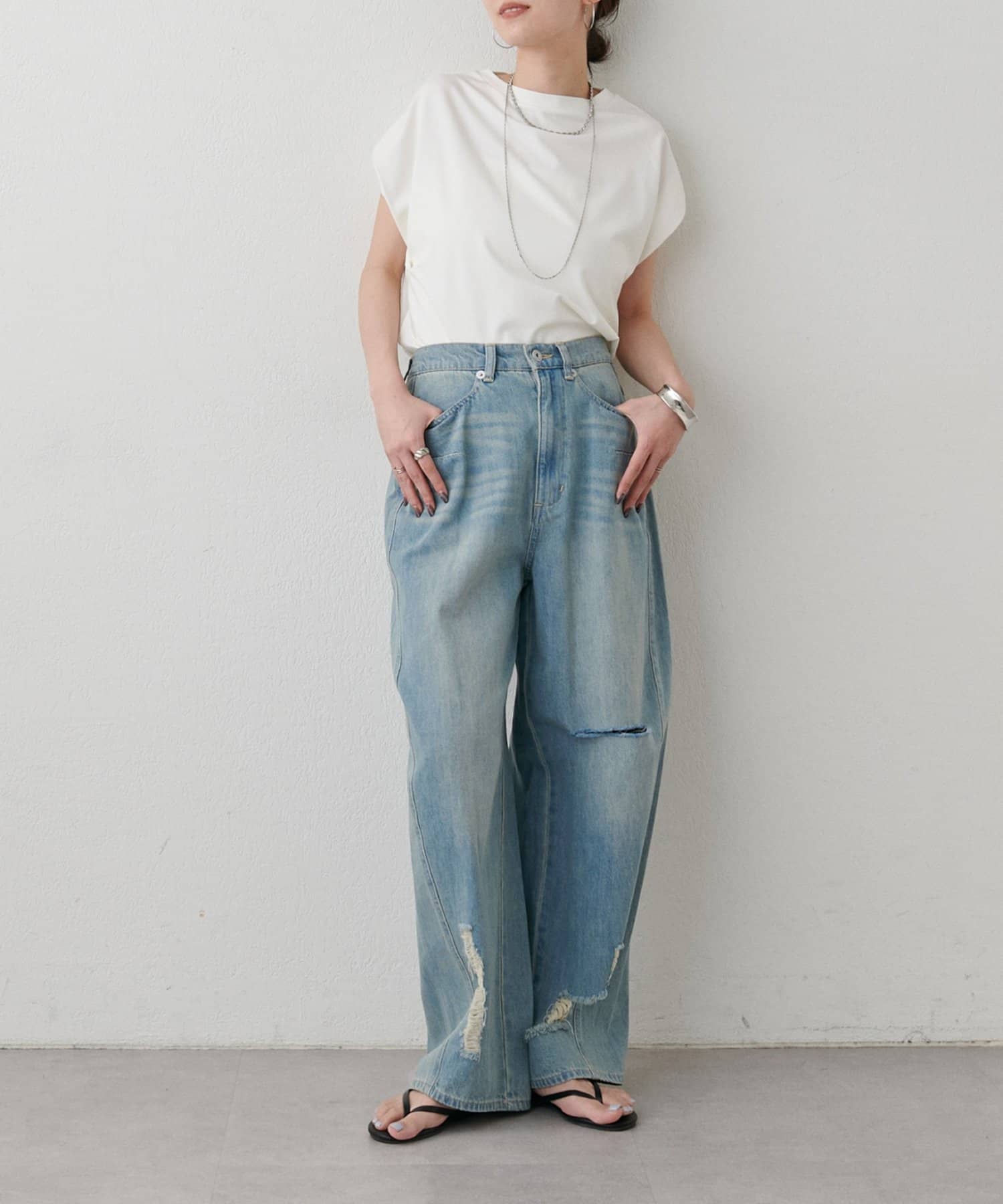 ゆったりとしたサイズ感なので、ルーズに着こなしていただくのがおすすめです。