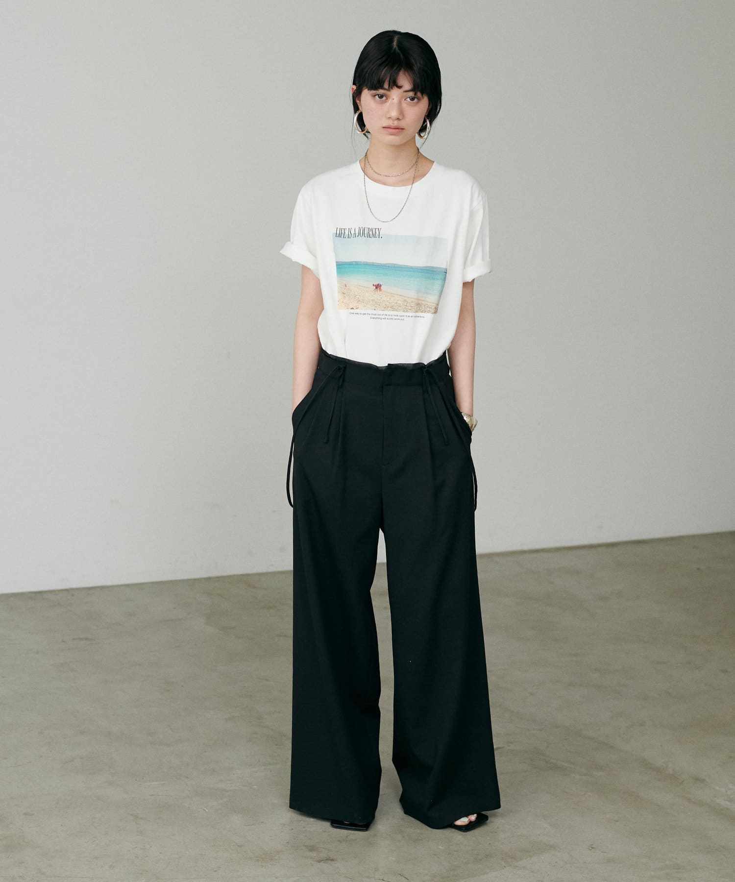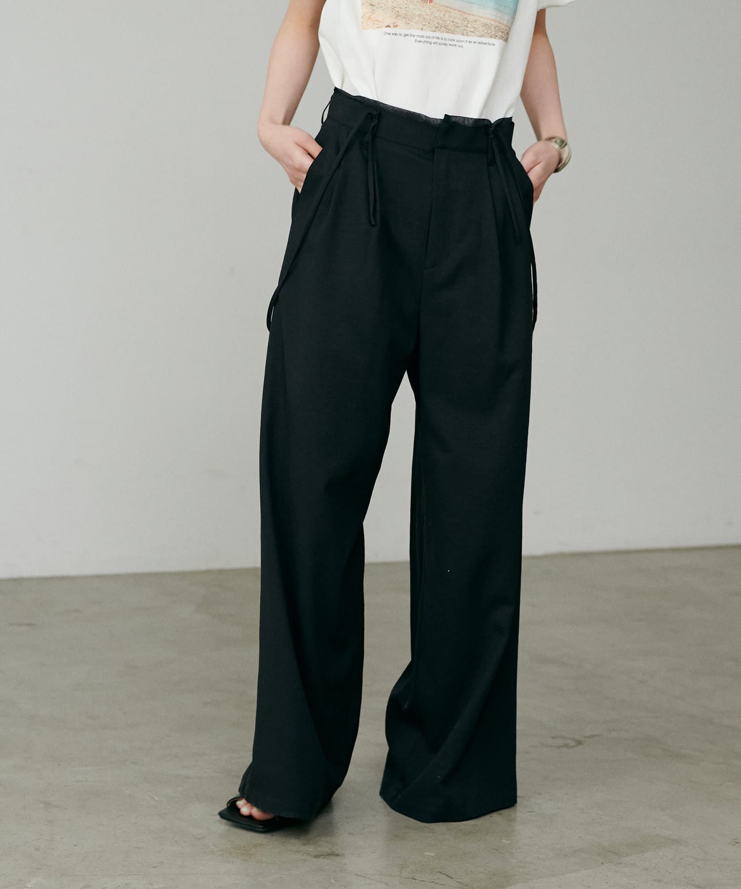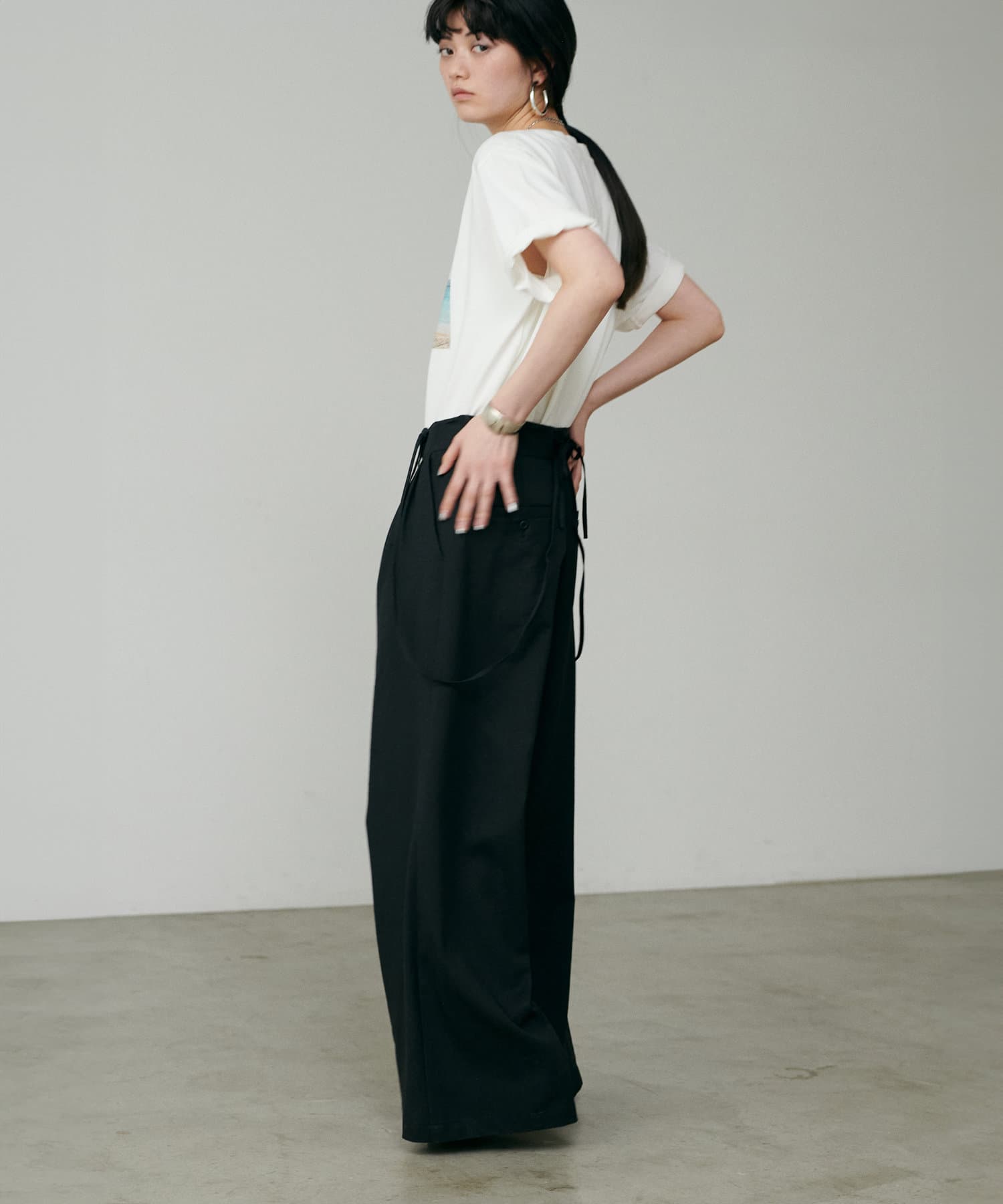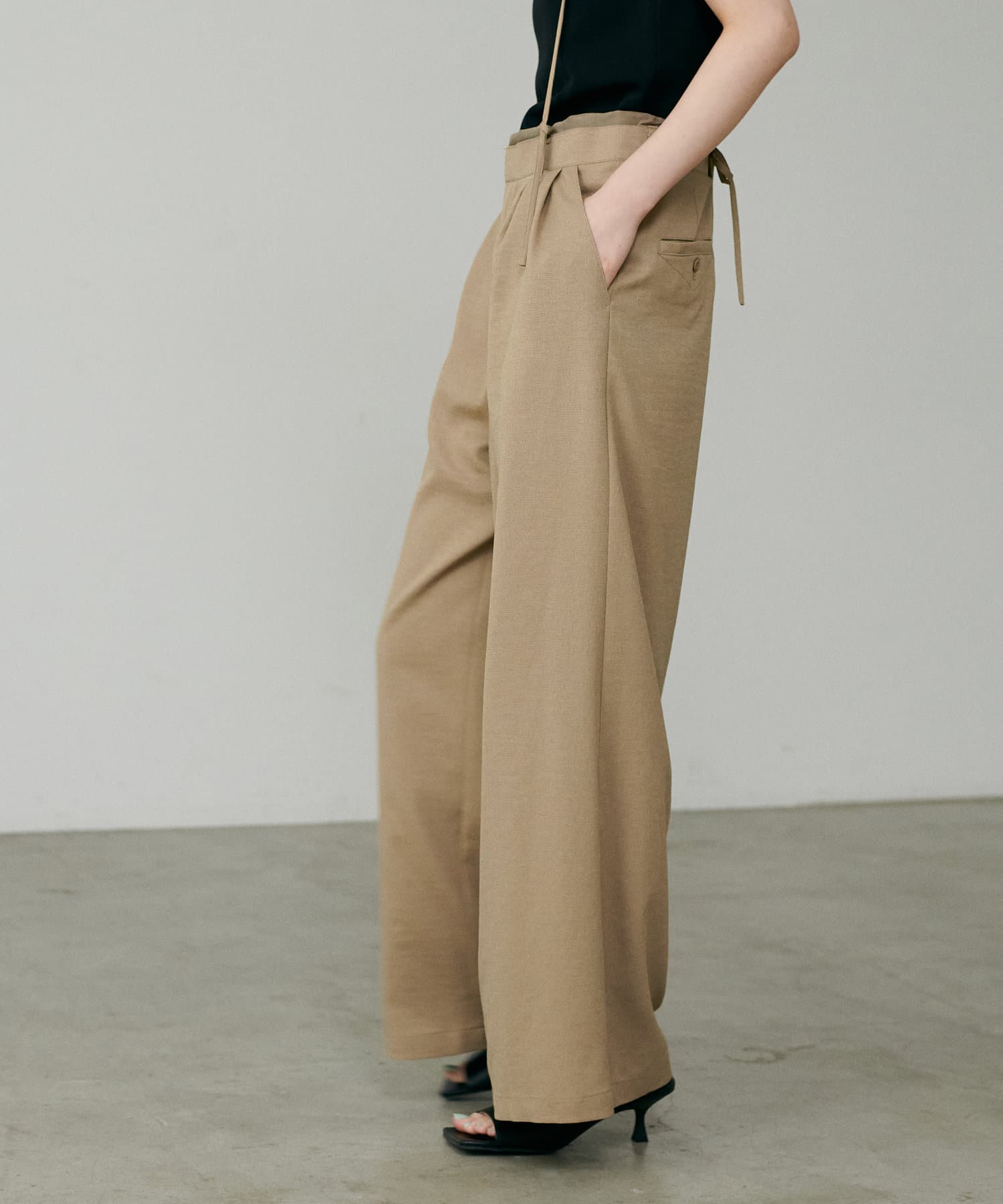 程よくリラックス感のあるワイドシルエットで脚のラインを美しく見せてくれる一着。