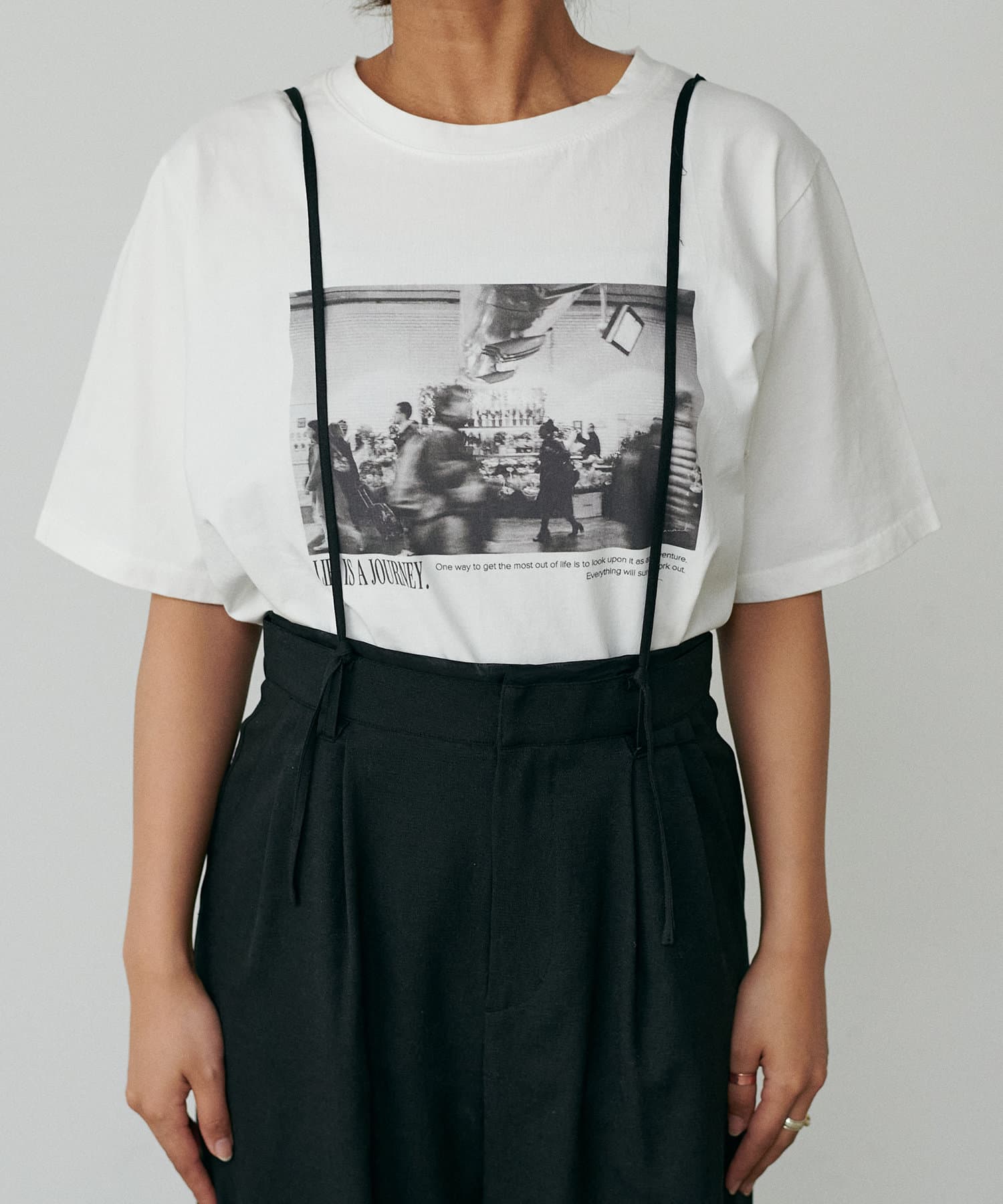 細めのストラップはサスペンダーのように着用したり、チャームのように垂らしても◎