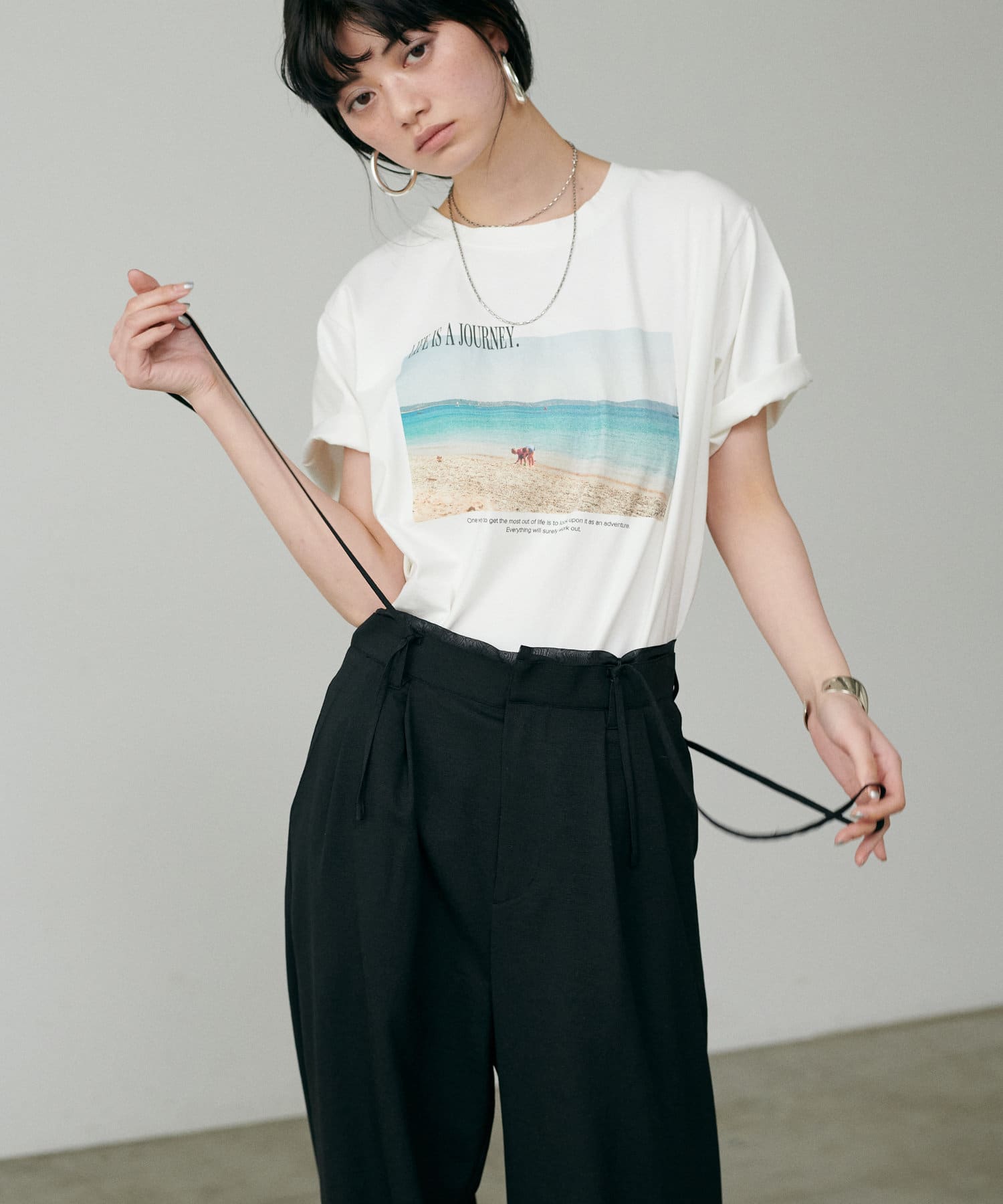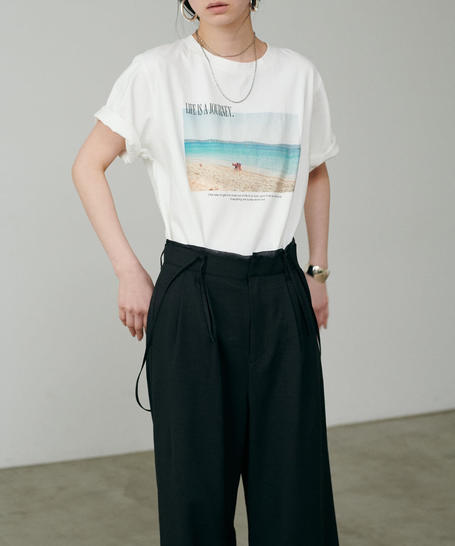 コンパクトなトップスを合わせていただくのがおすすめ。