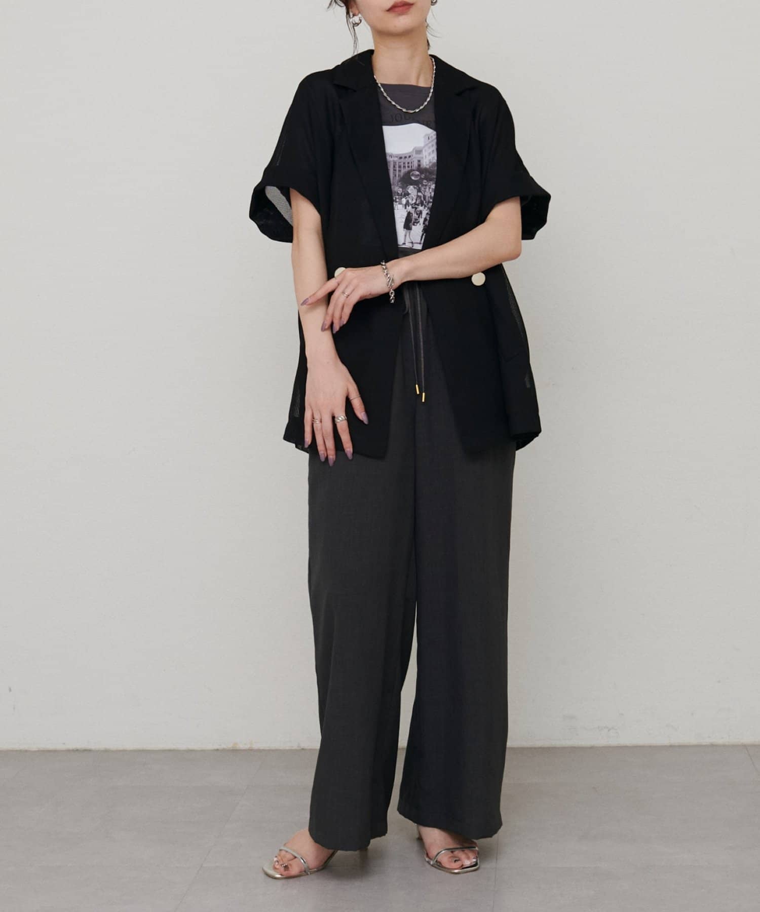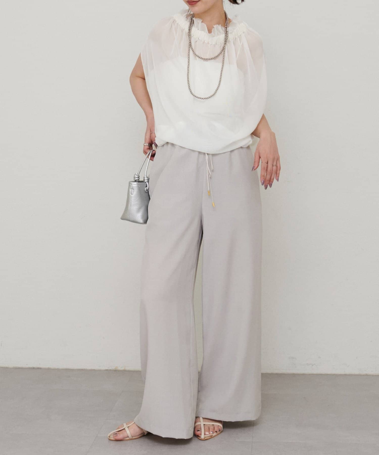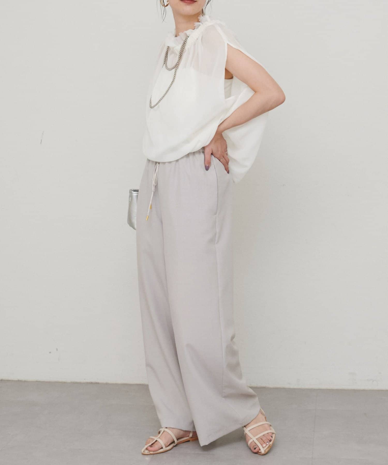 脚のラインを拾わず、腰からヒップにかけてゆとりのあるシルエットに。