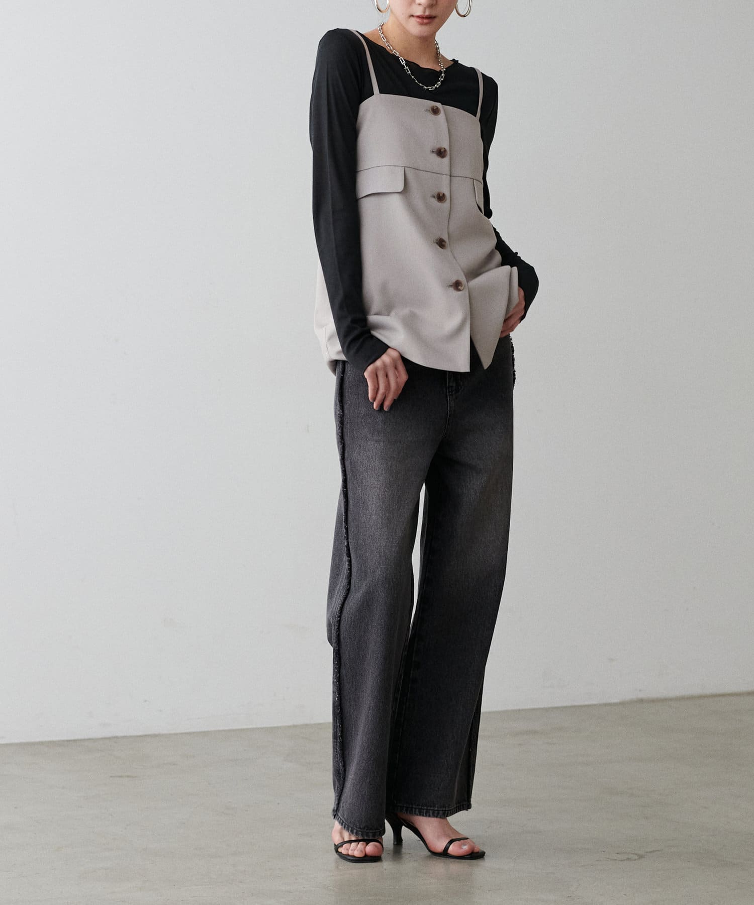 暑くなるシーズンにはノースリーブと重ねて肌見せも楽しめます。