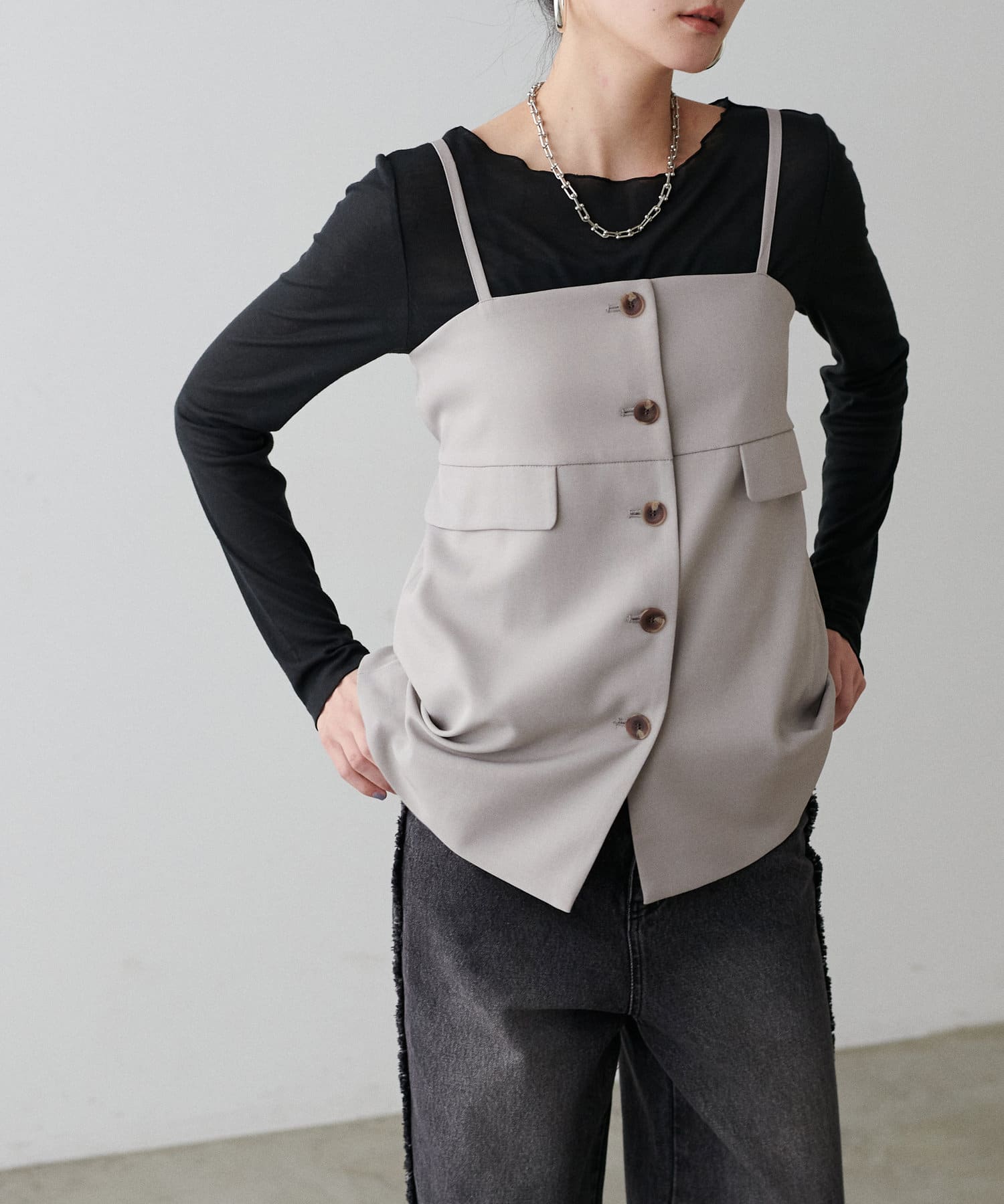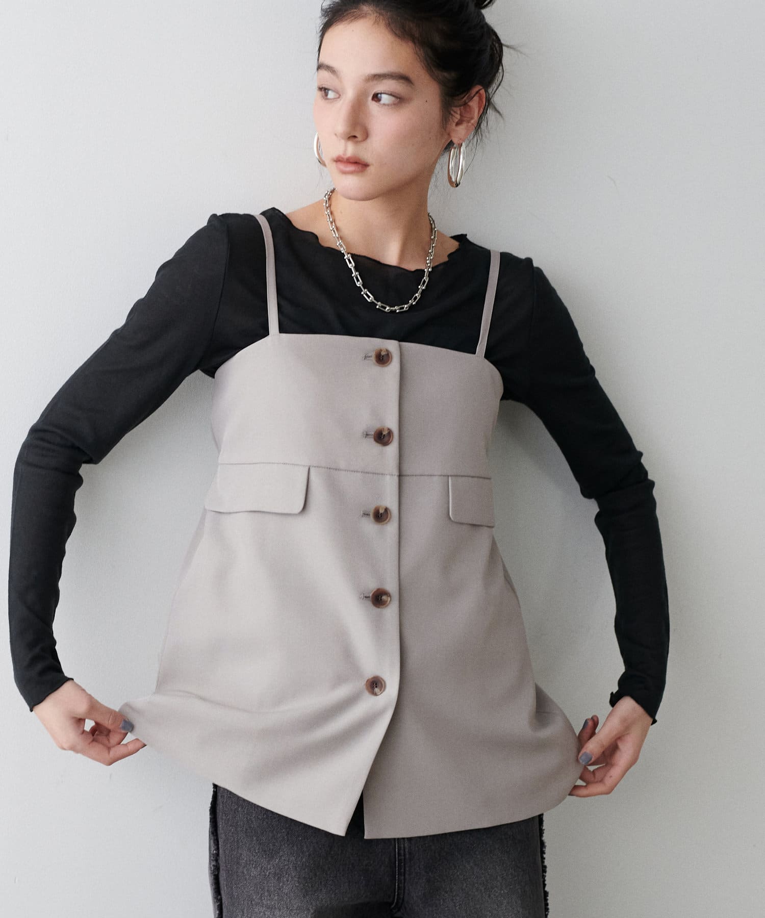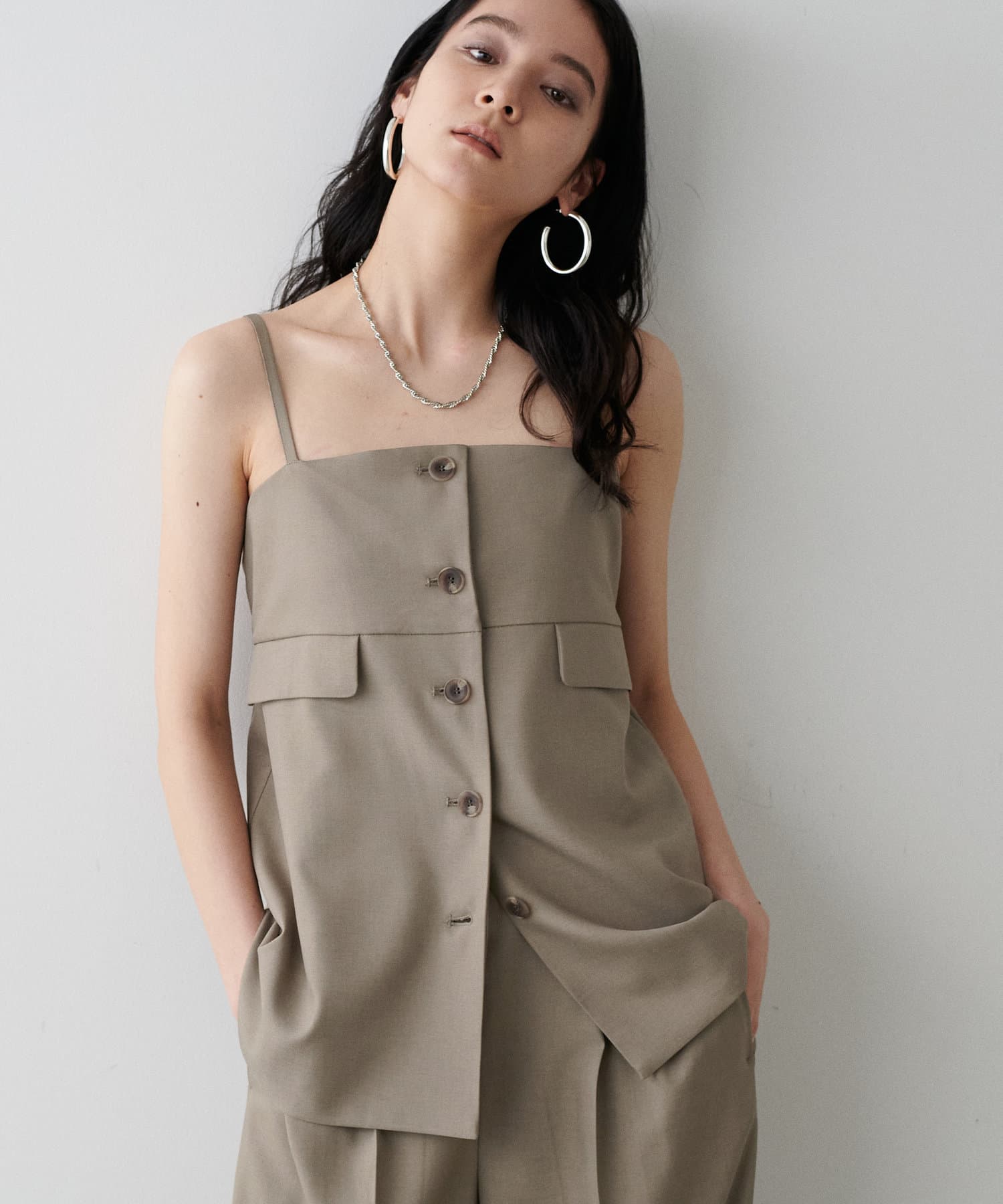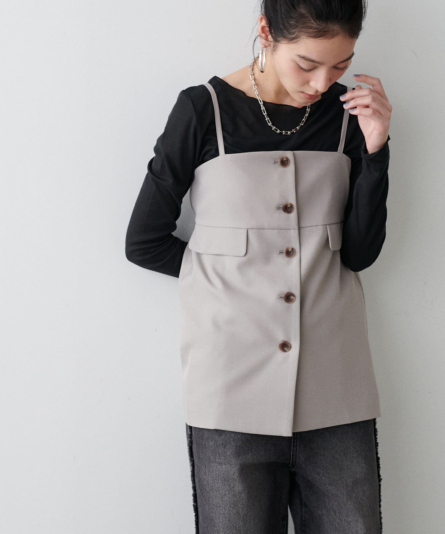 フロントボタンがアクセントになったビスチェデザインのキャミソール。