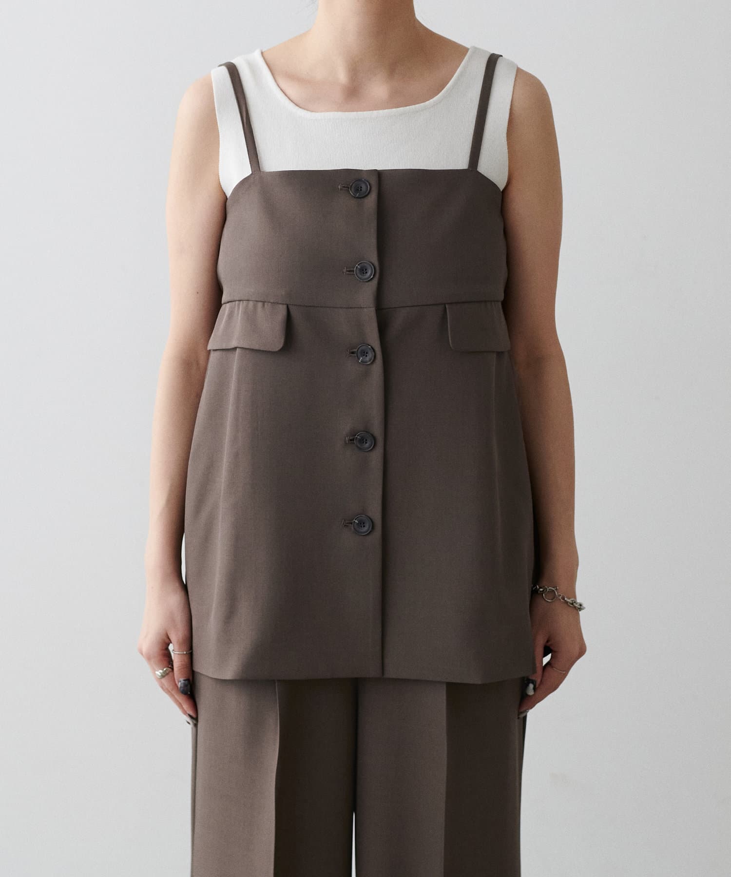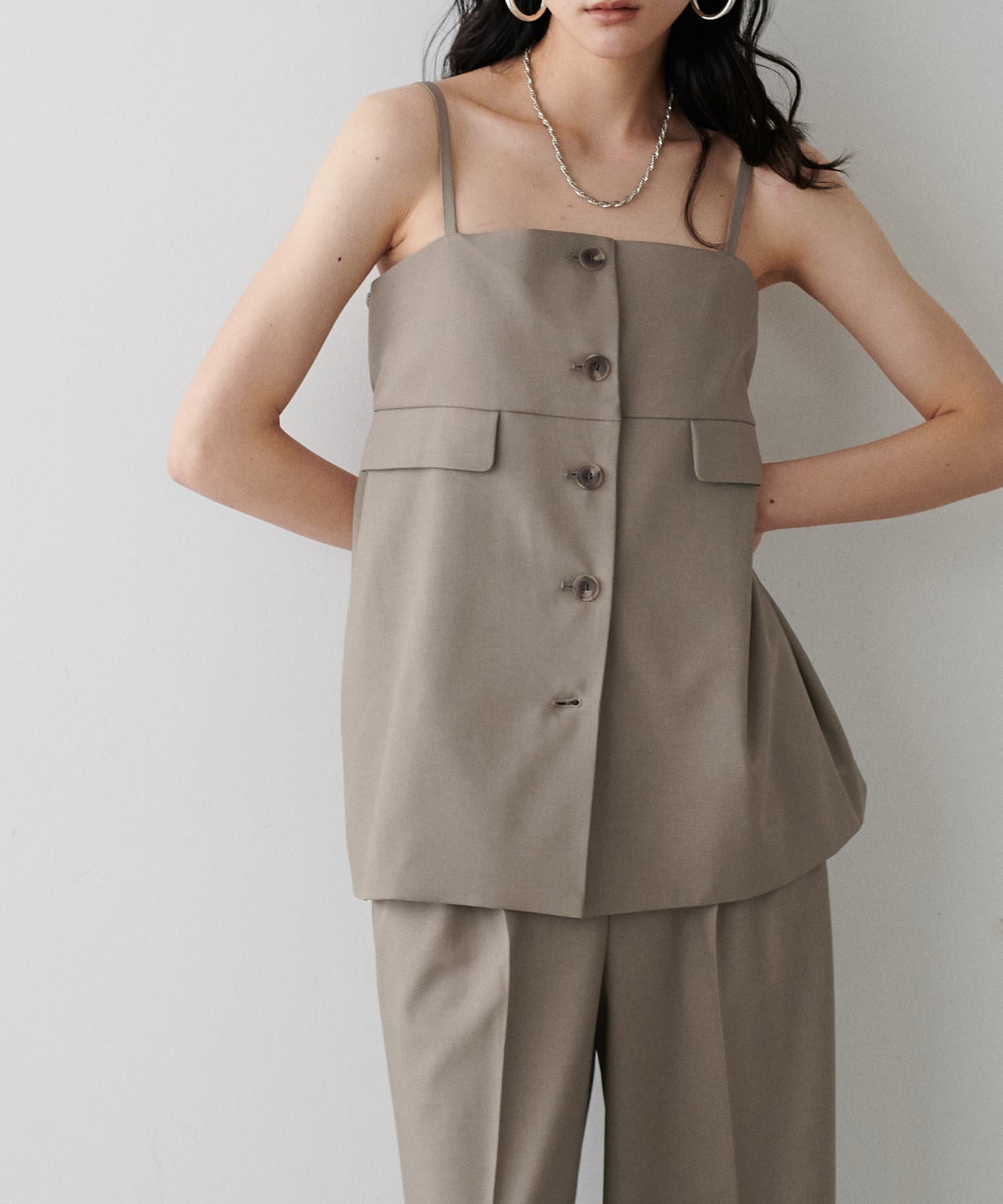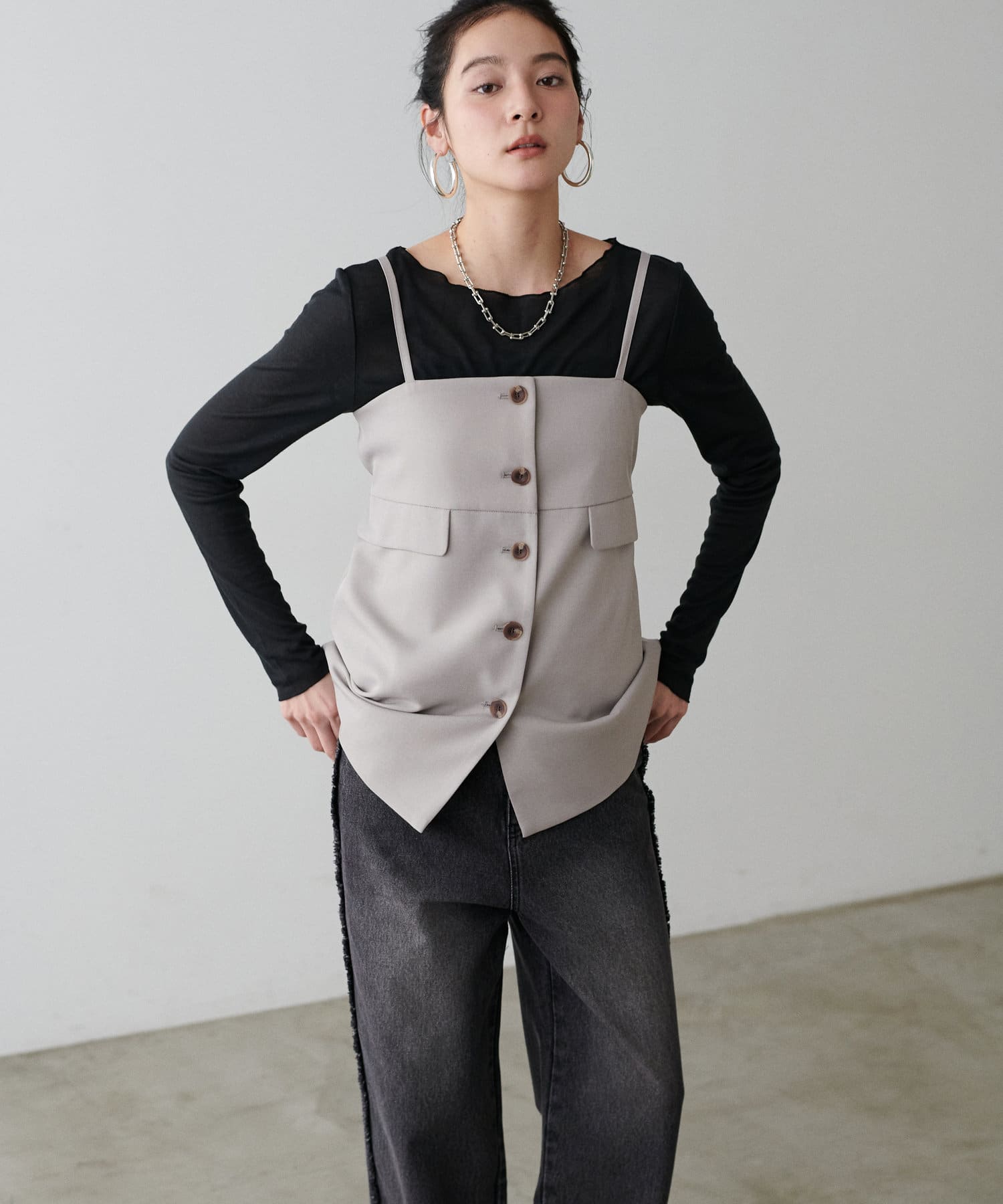 フロントボタンがアクセントになったビスチェデザインのキャミソール。