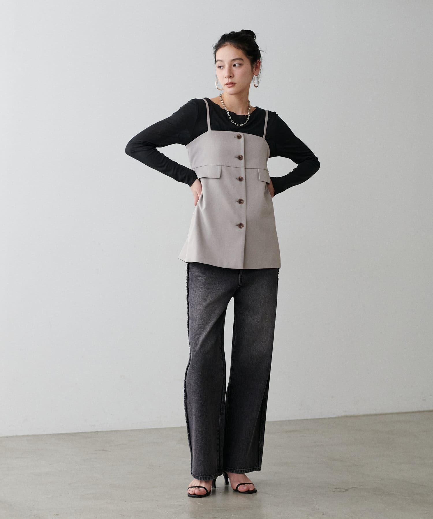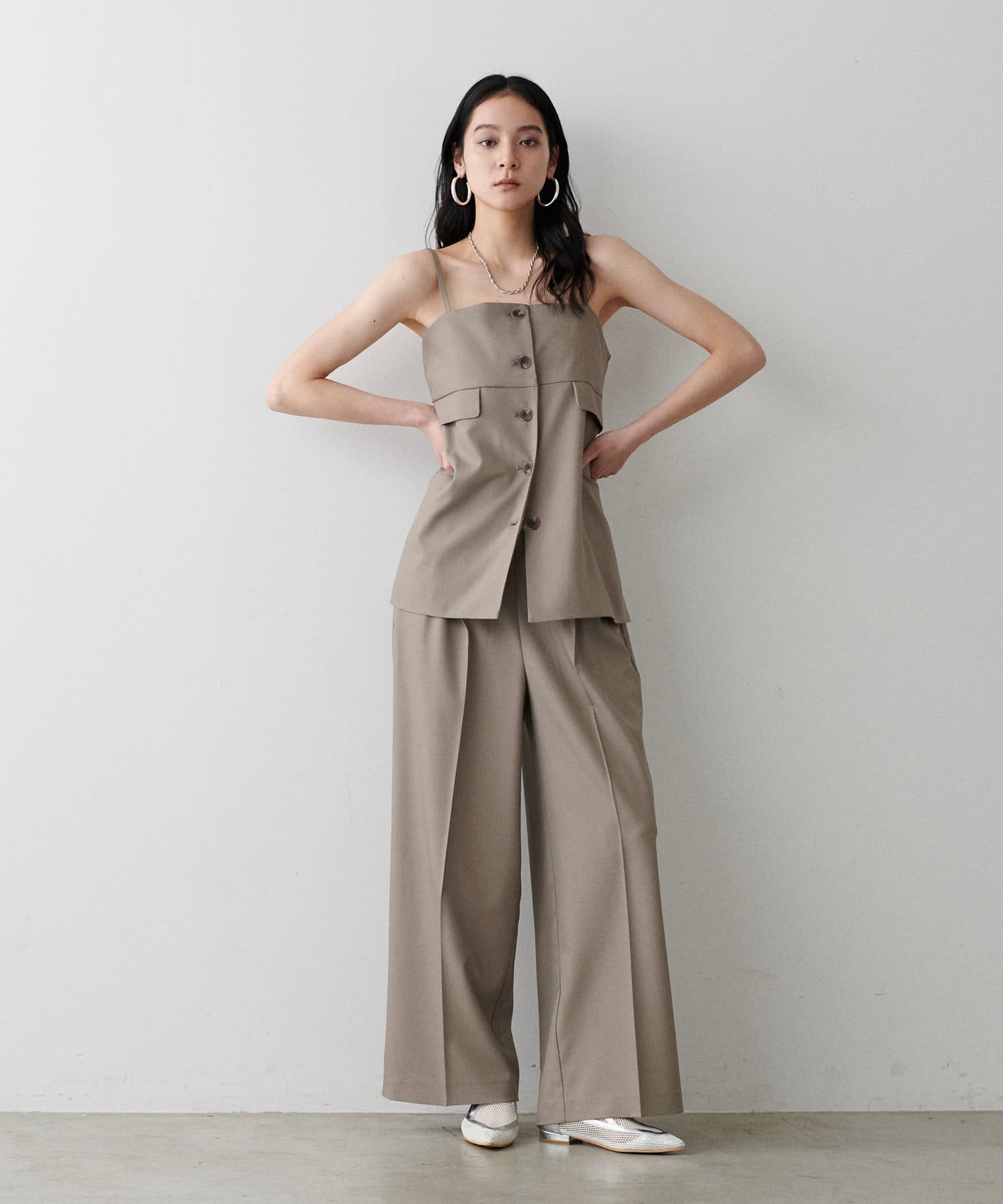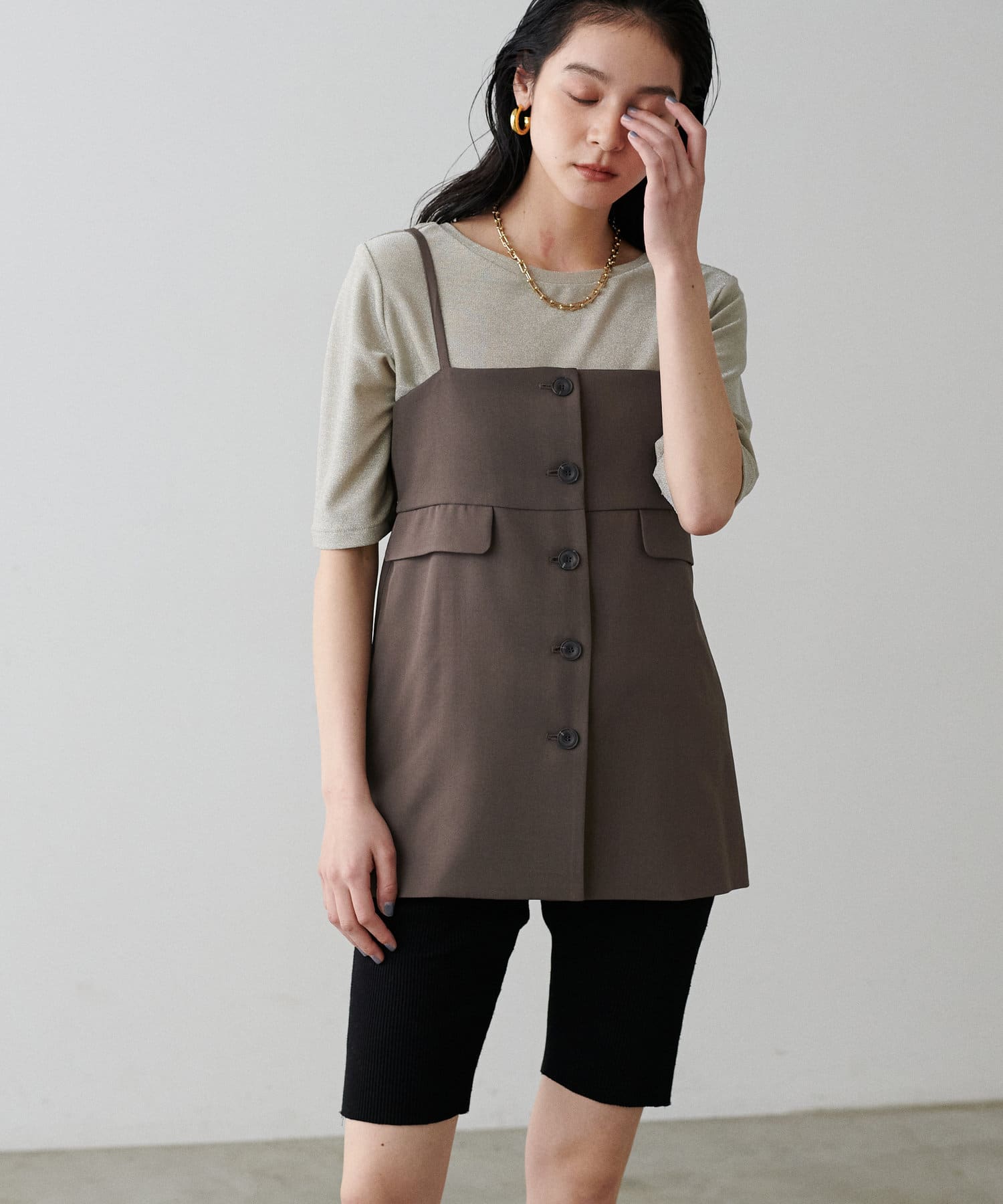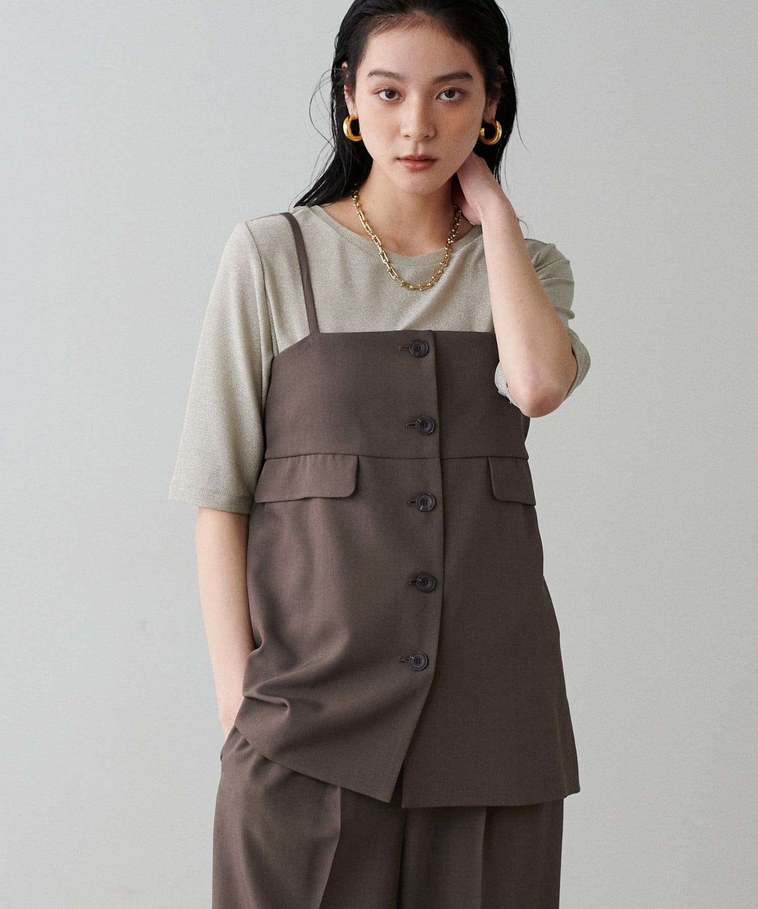 フロントボタンがアクセントになったビスチェデザインのキャミソール。