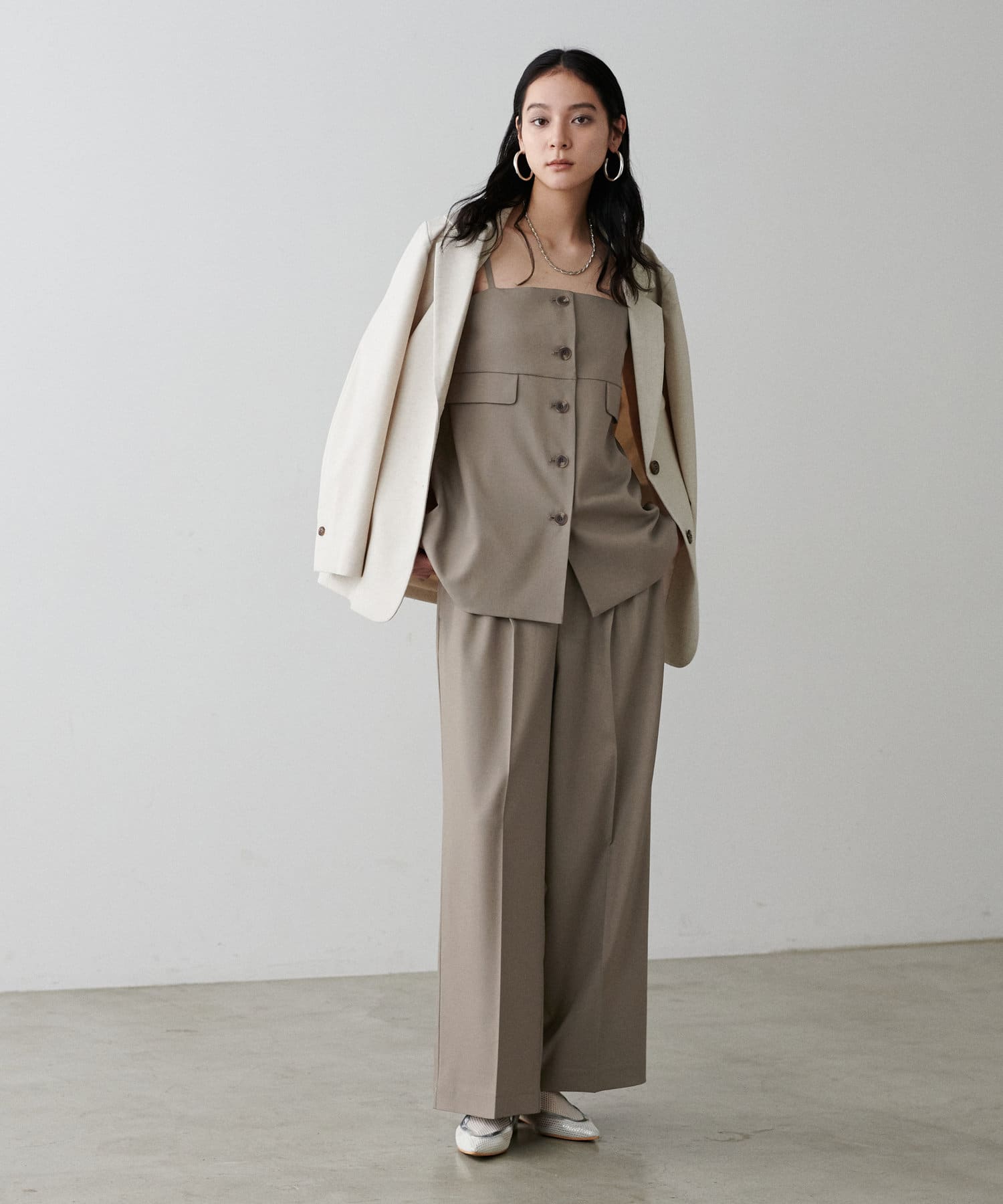 同素材を使用した 3051020080 タックワイドパンツとのセットアップ着用がおすすめ。