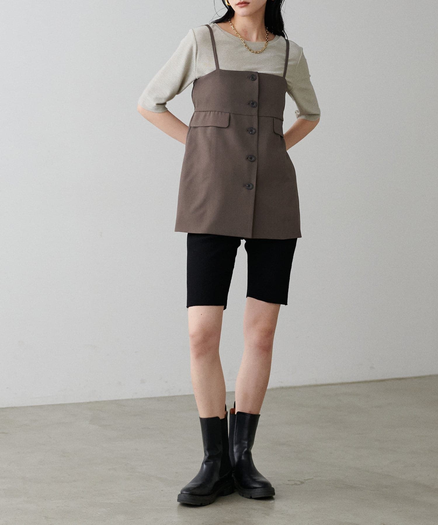 フロントボタンがアクセントになったビスチェデザインのキャミソール。