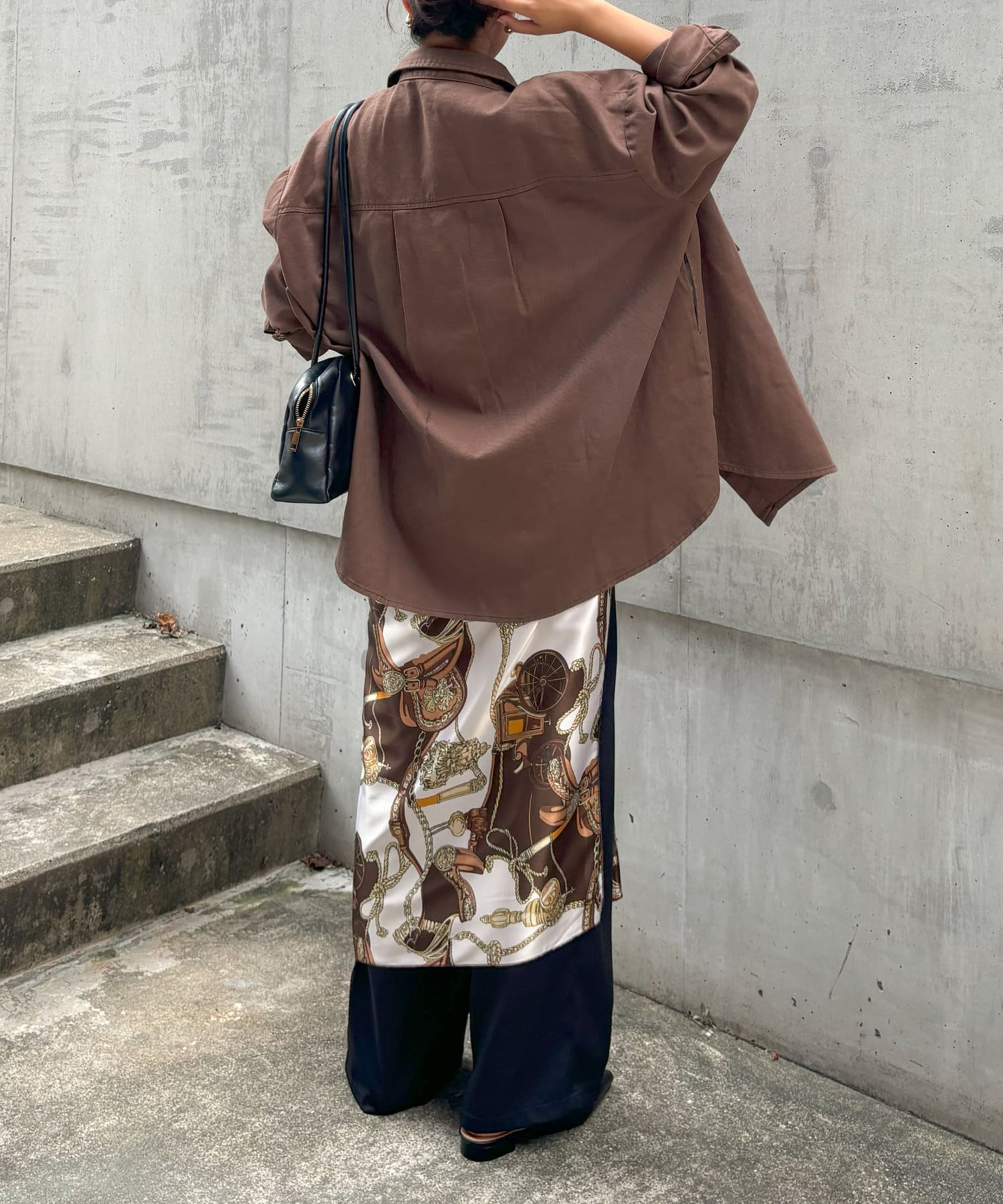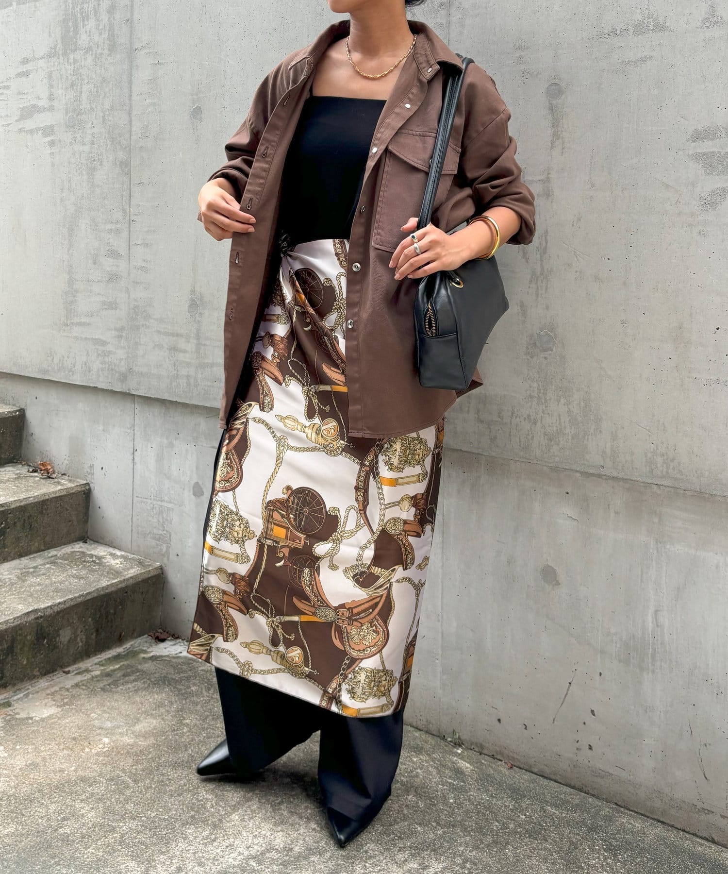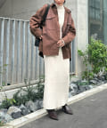 同色系のスラックスやデニムと合わせるハンサムな着こなしはもちろん