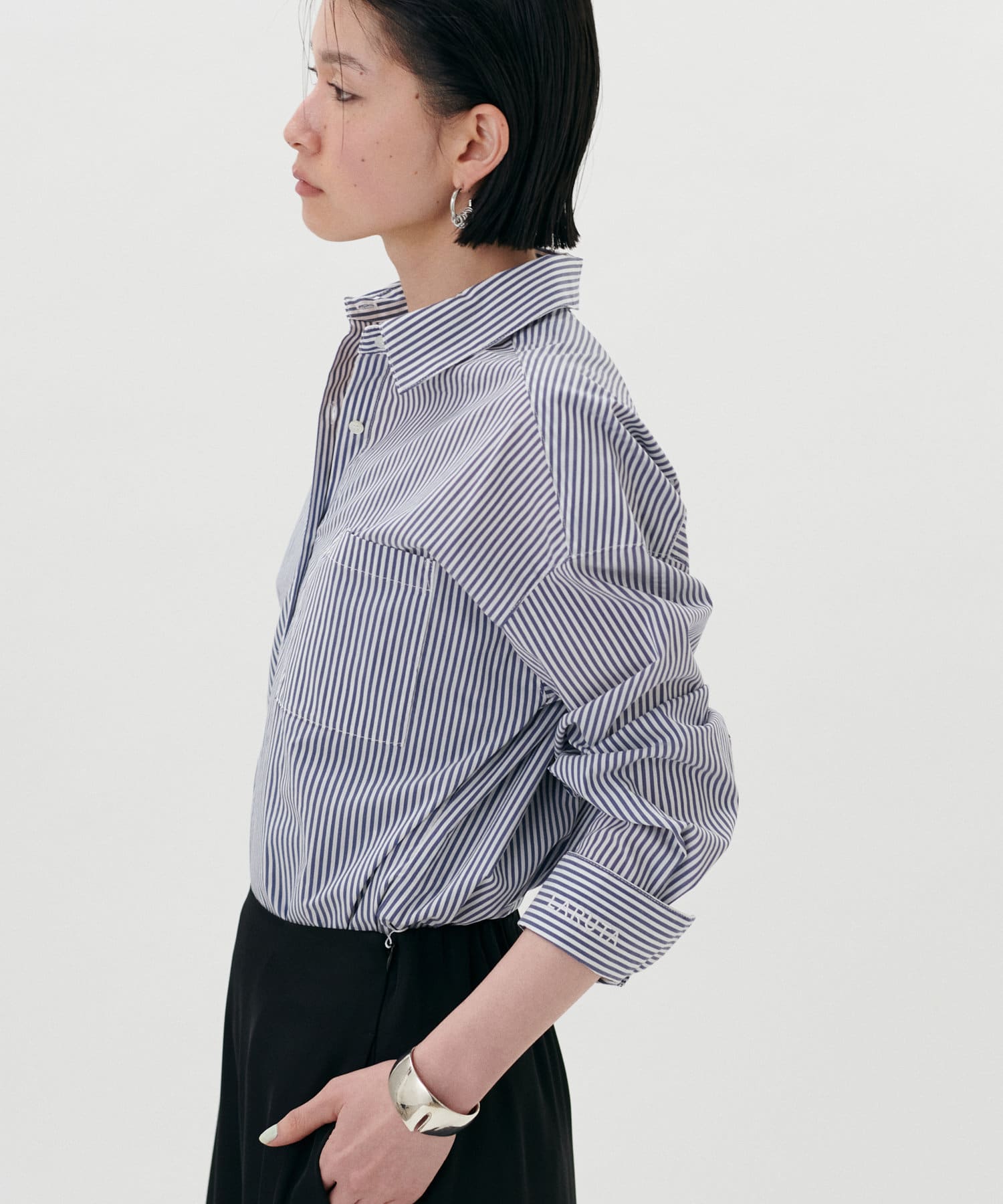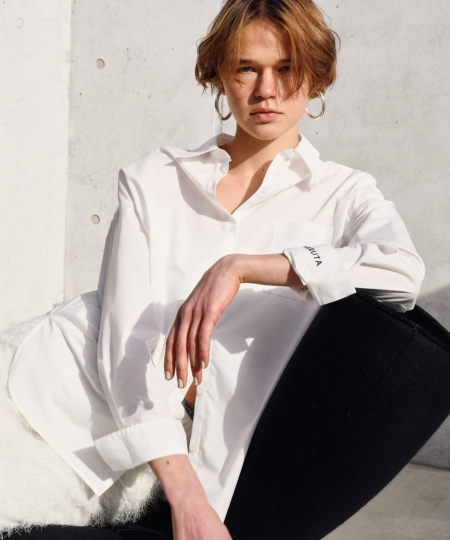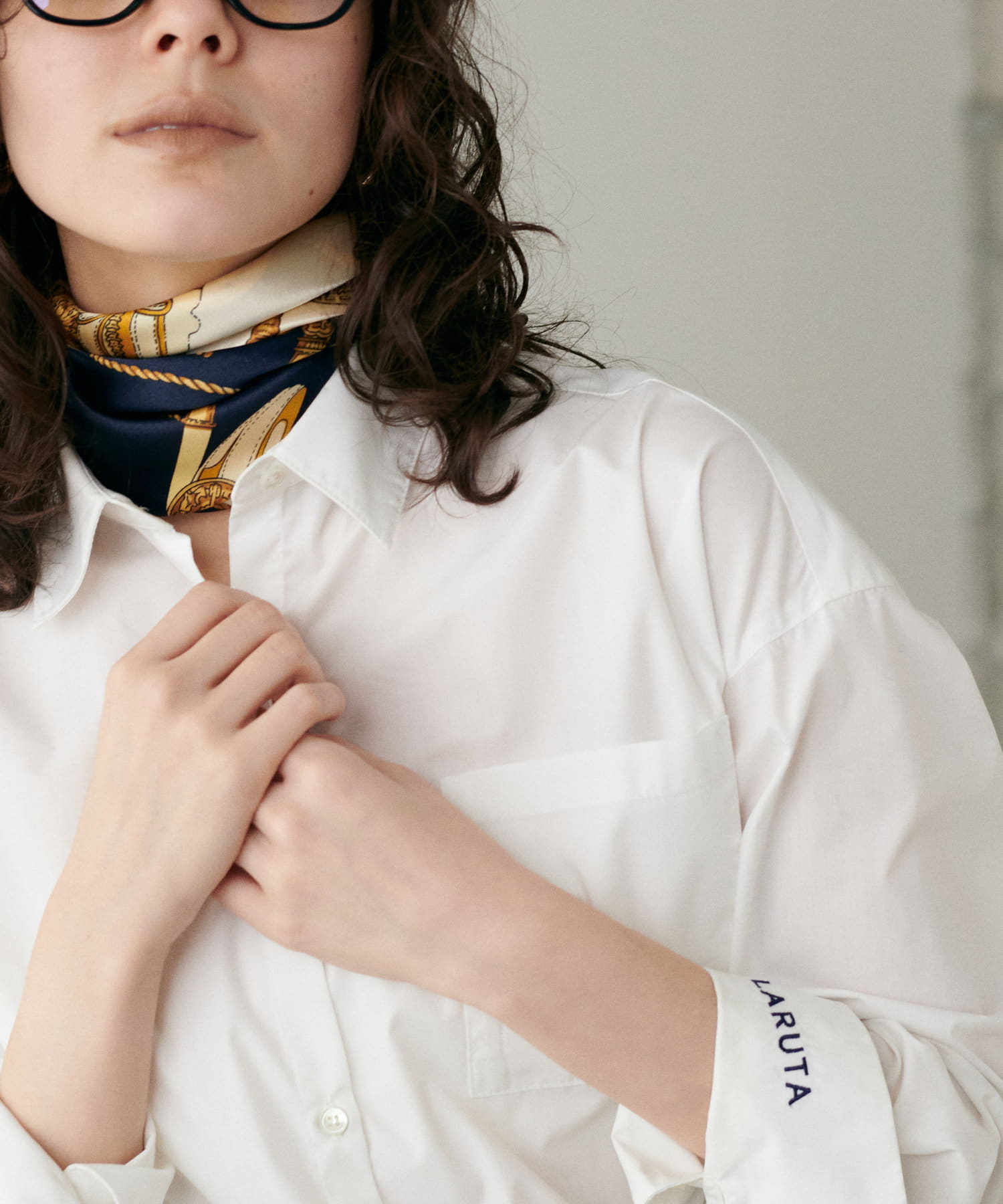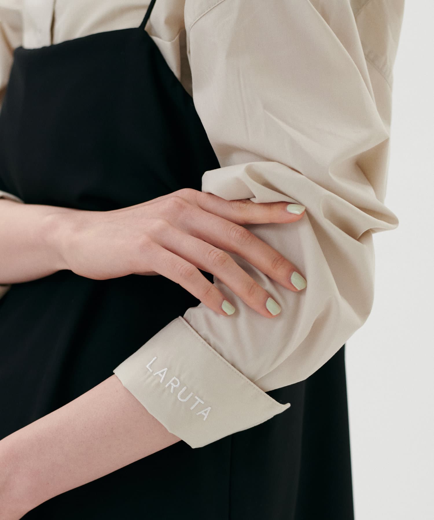 カフスを折り返すと現れるさり気ないロゴ刺繍がポイント。