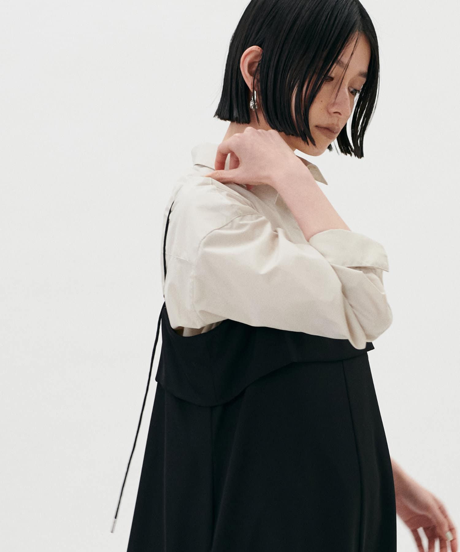 程よくフィットしたデザインで窮屈さがなく、背中に施したダーツで後ろ姿もすっきり。
