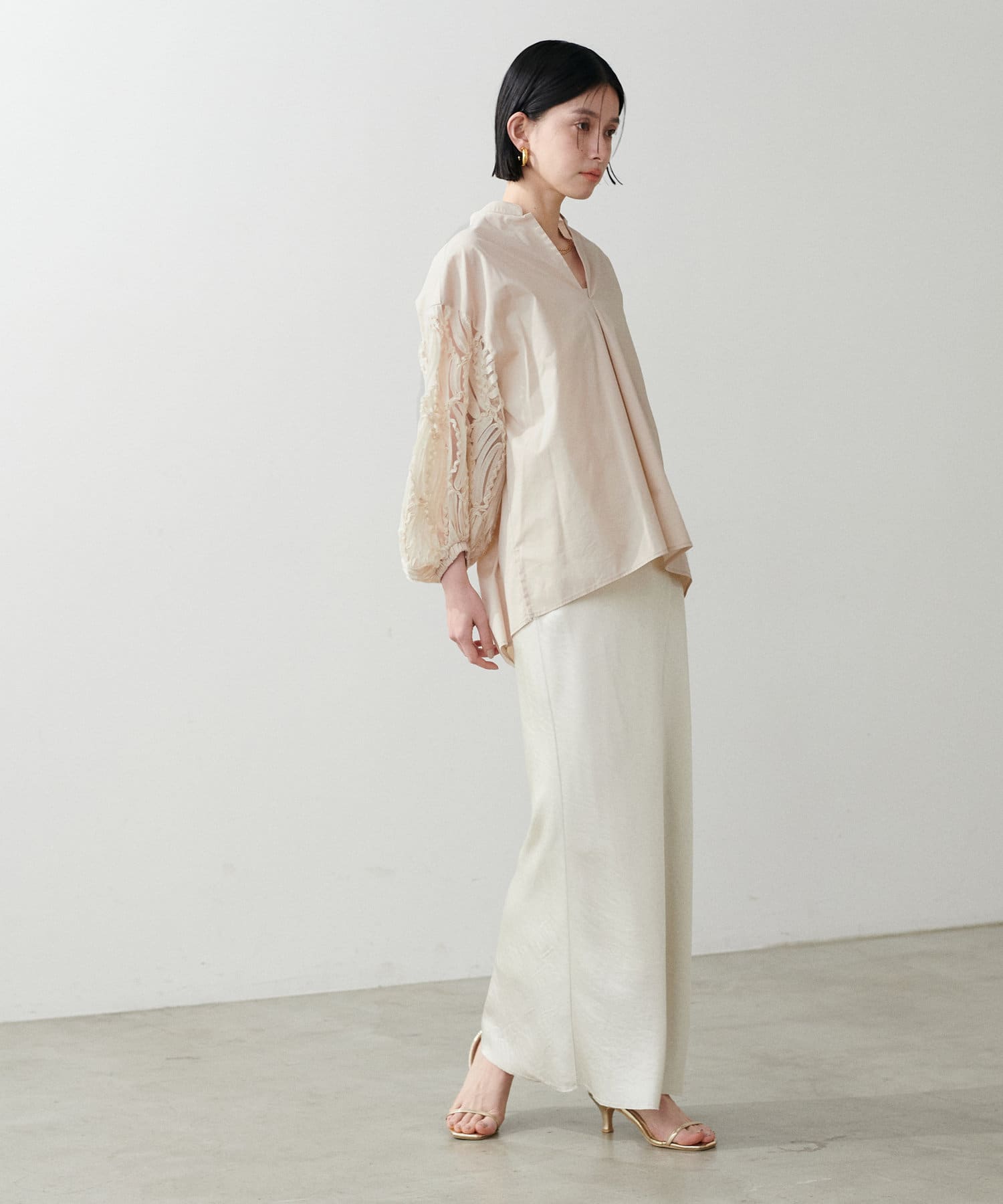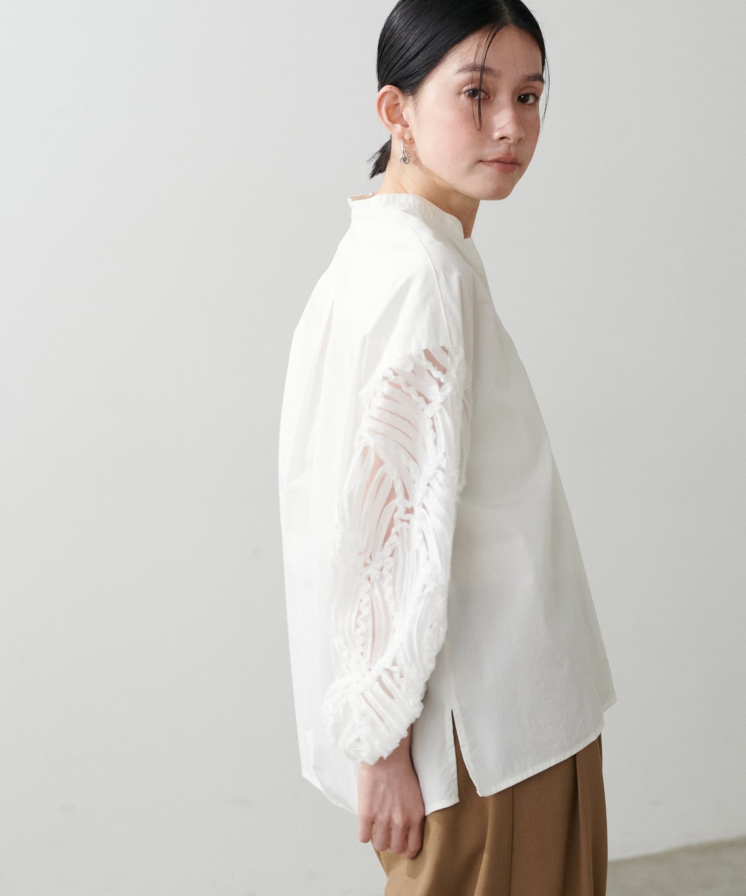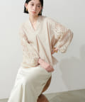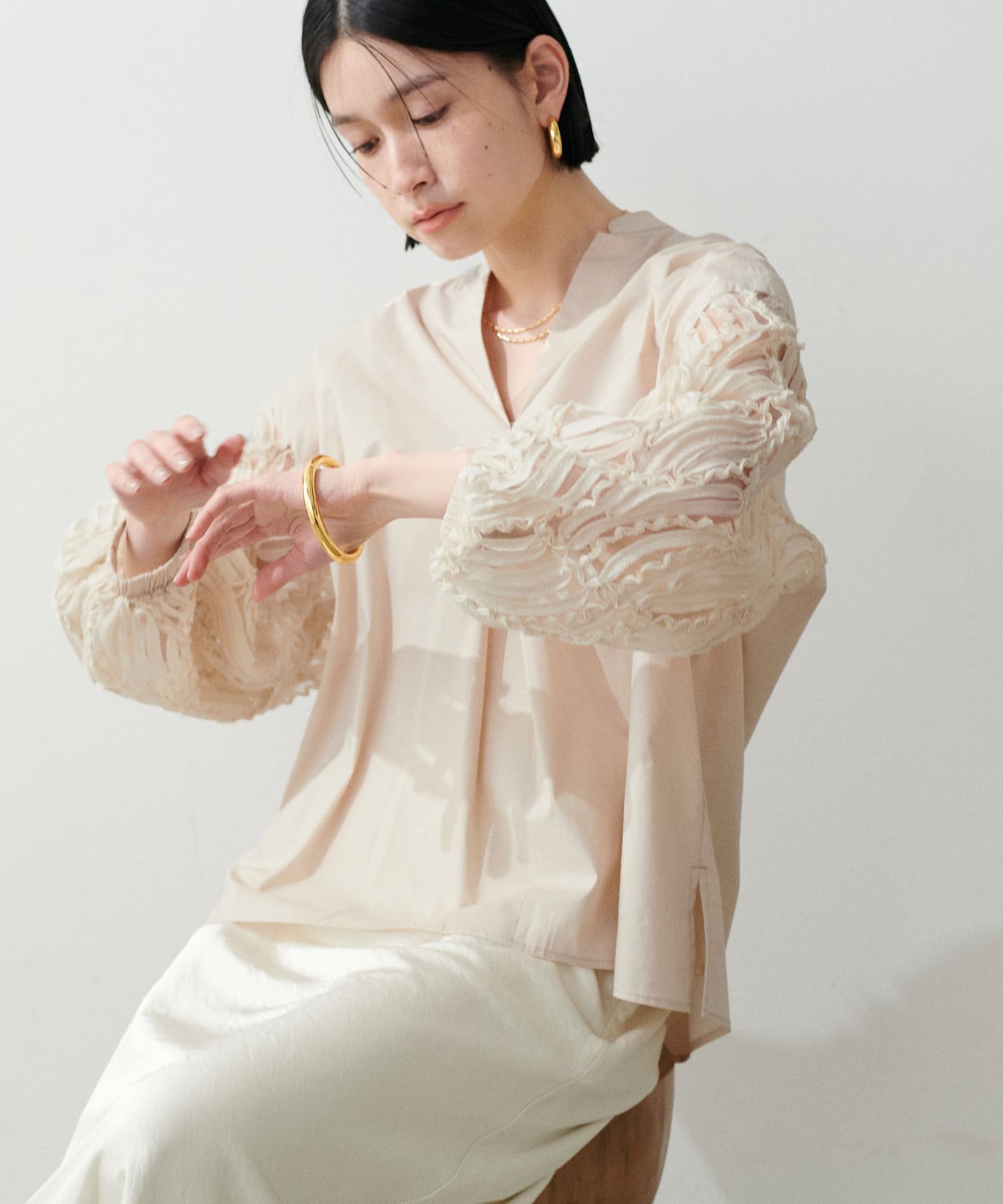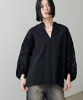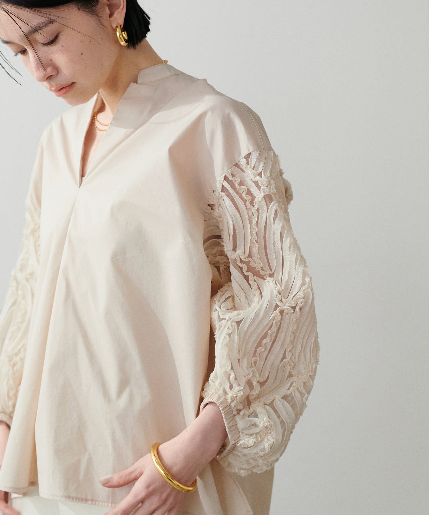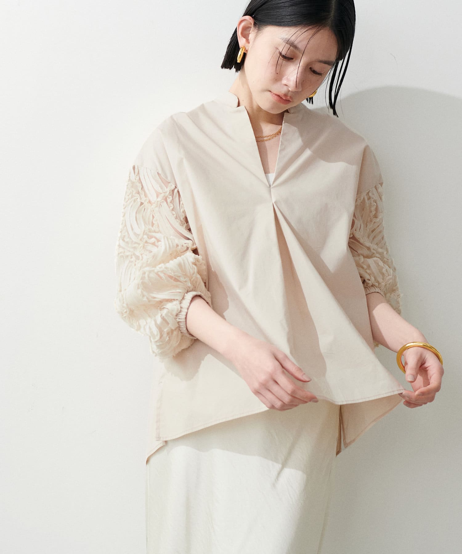 袖のニュアンスのレースデザインが上品なブラウスが登場。