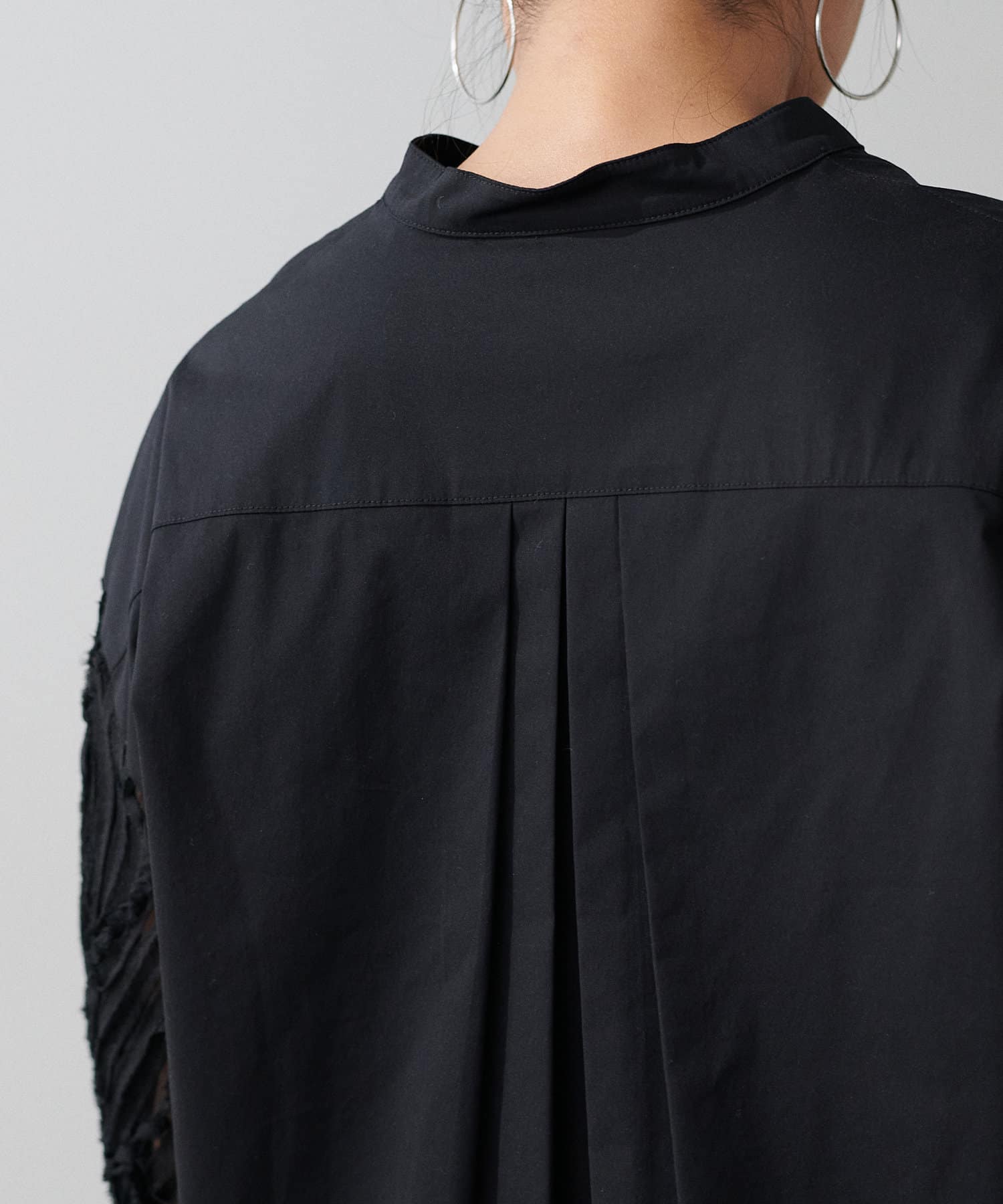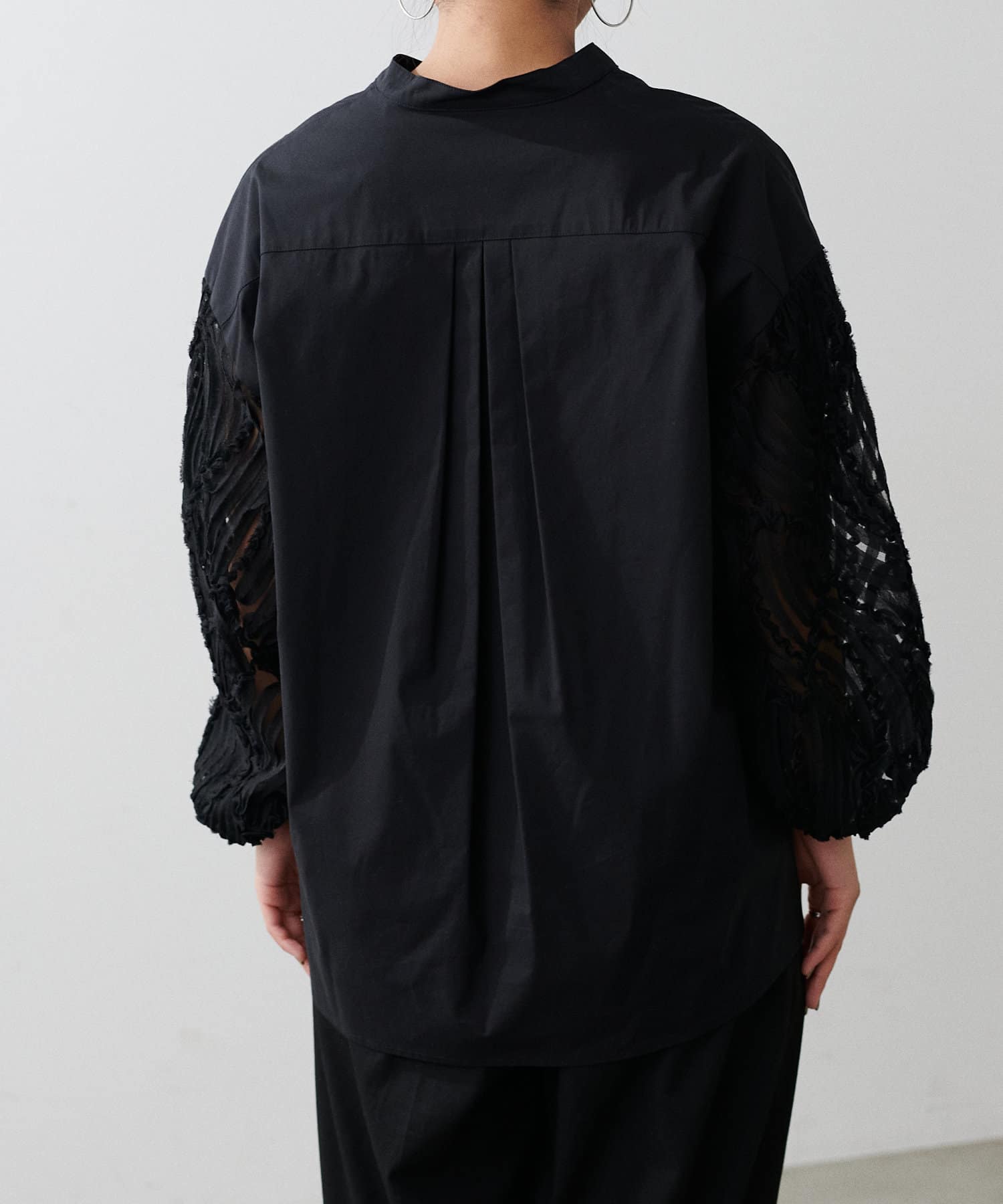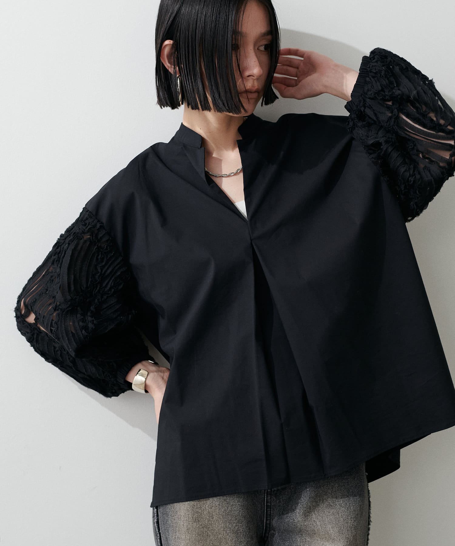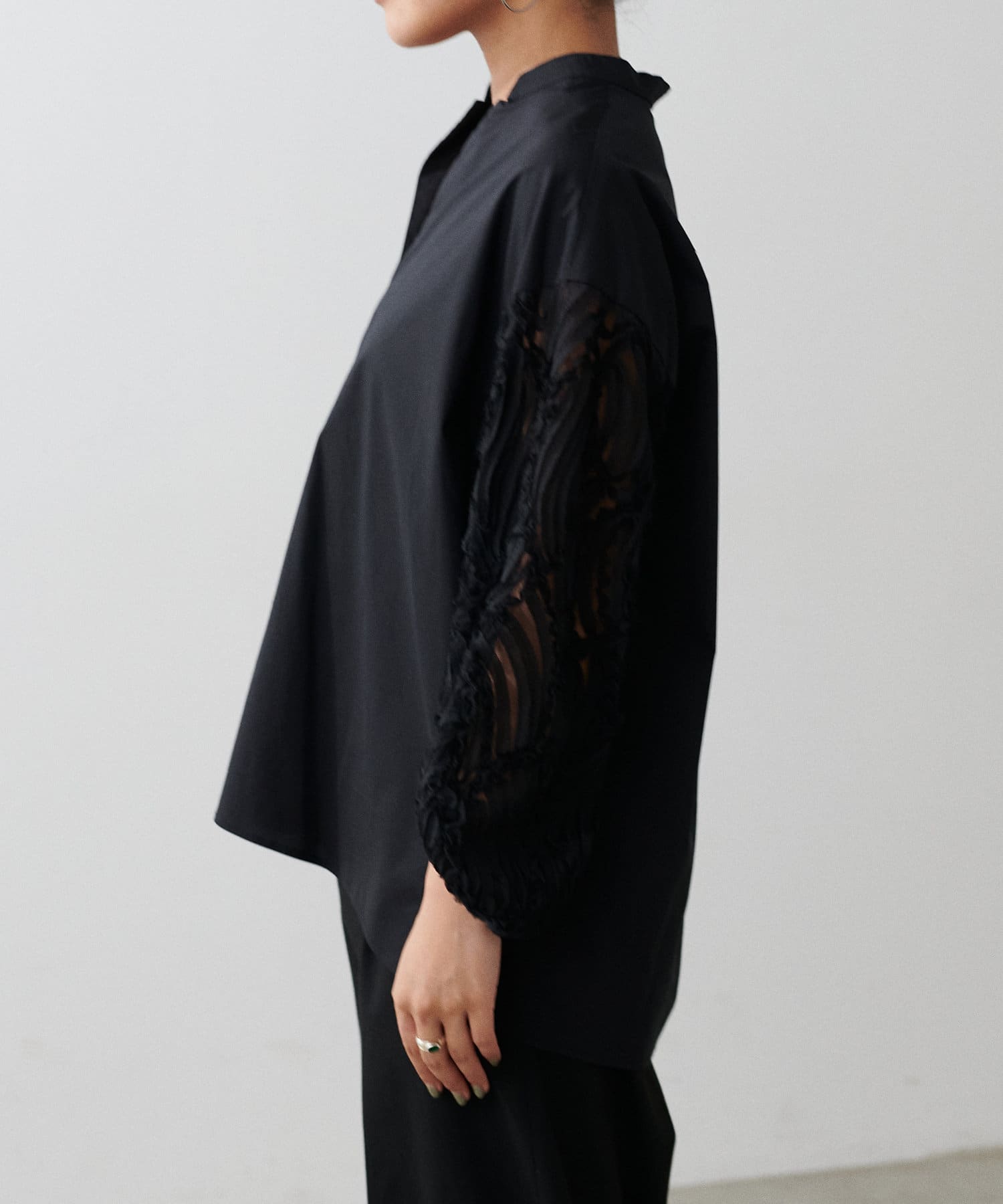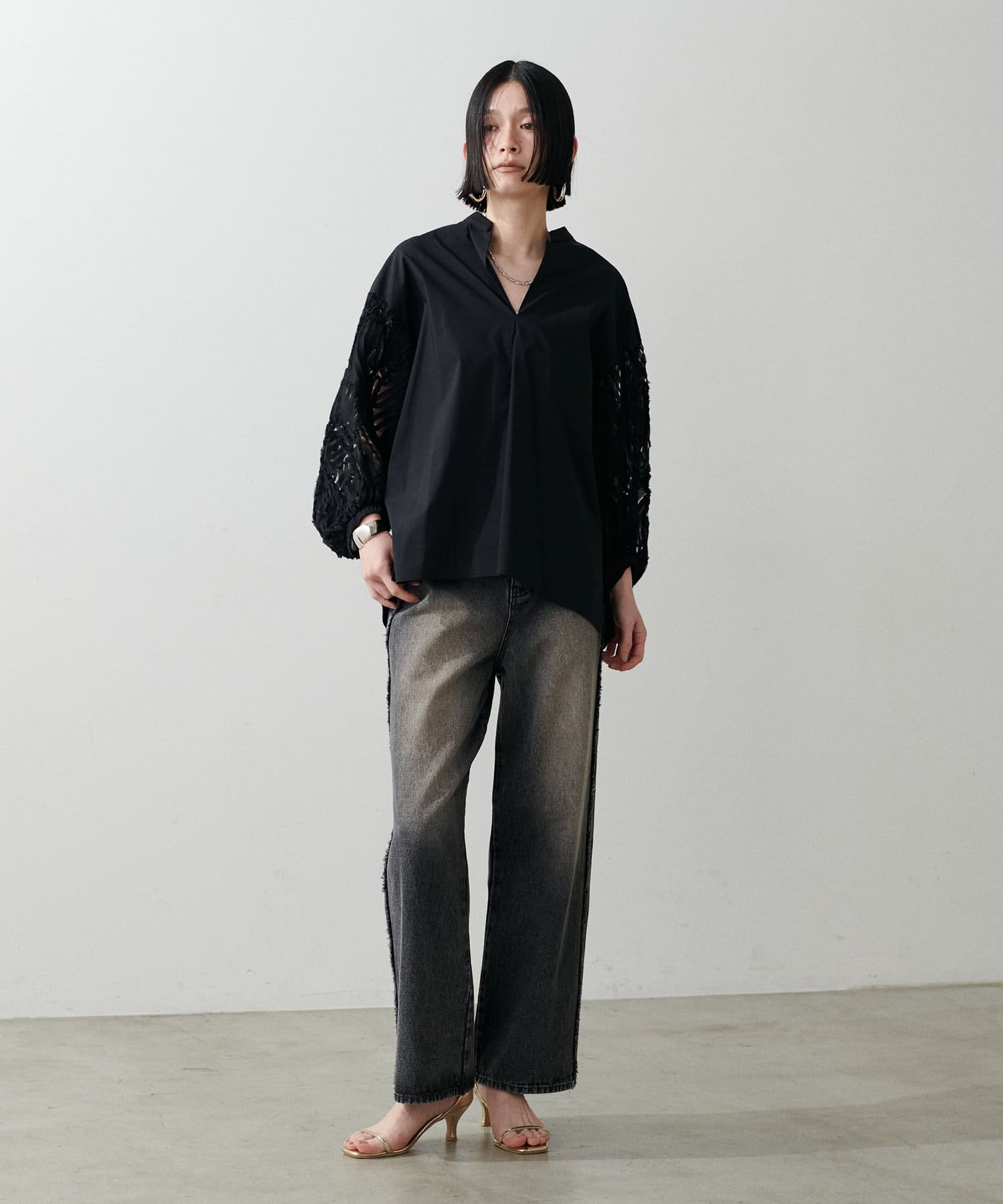 袖のニュアンスのレースデザインが上品なブラウスが登場。