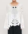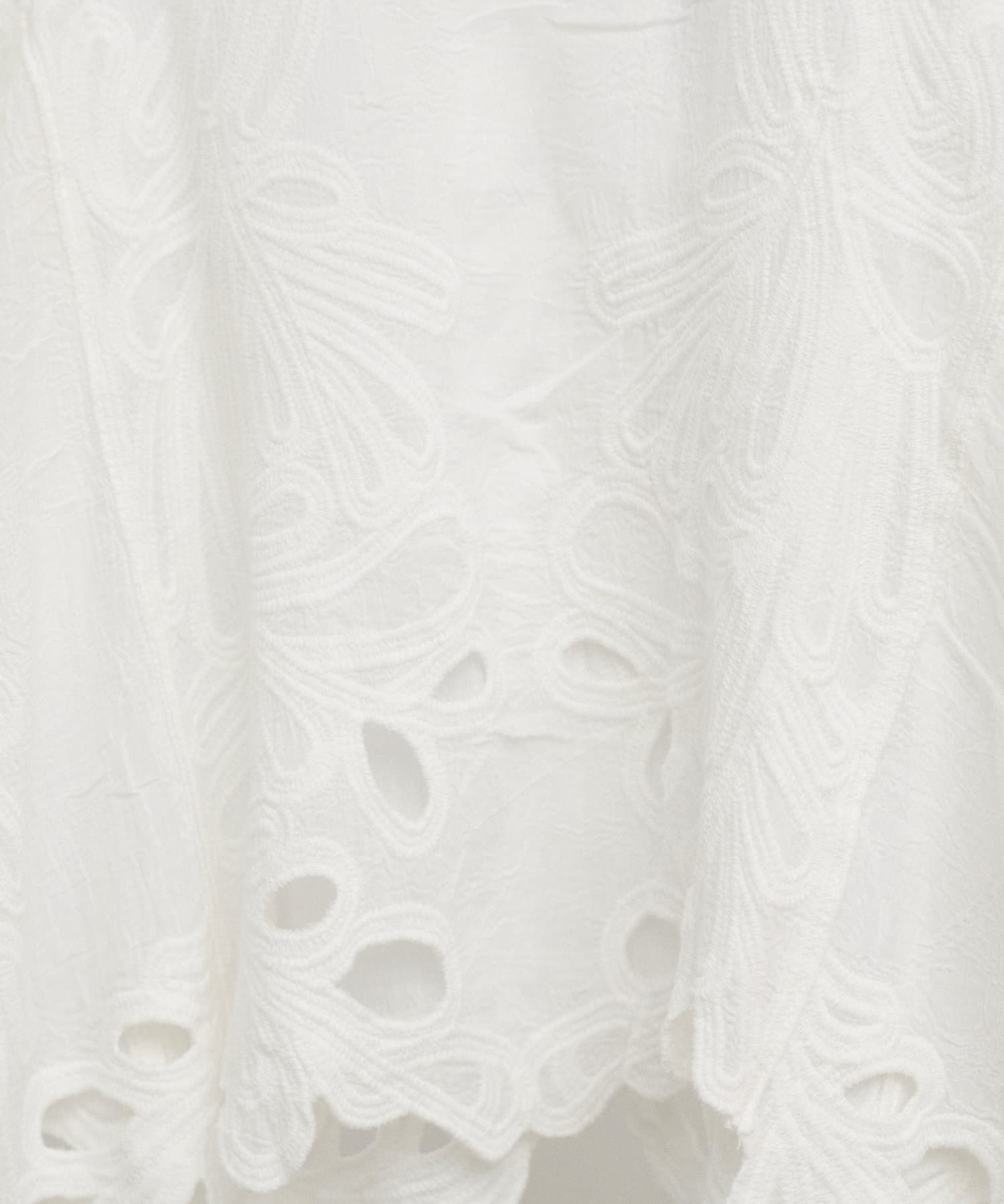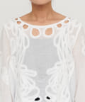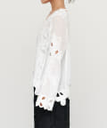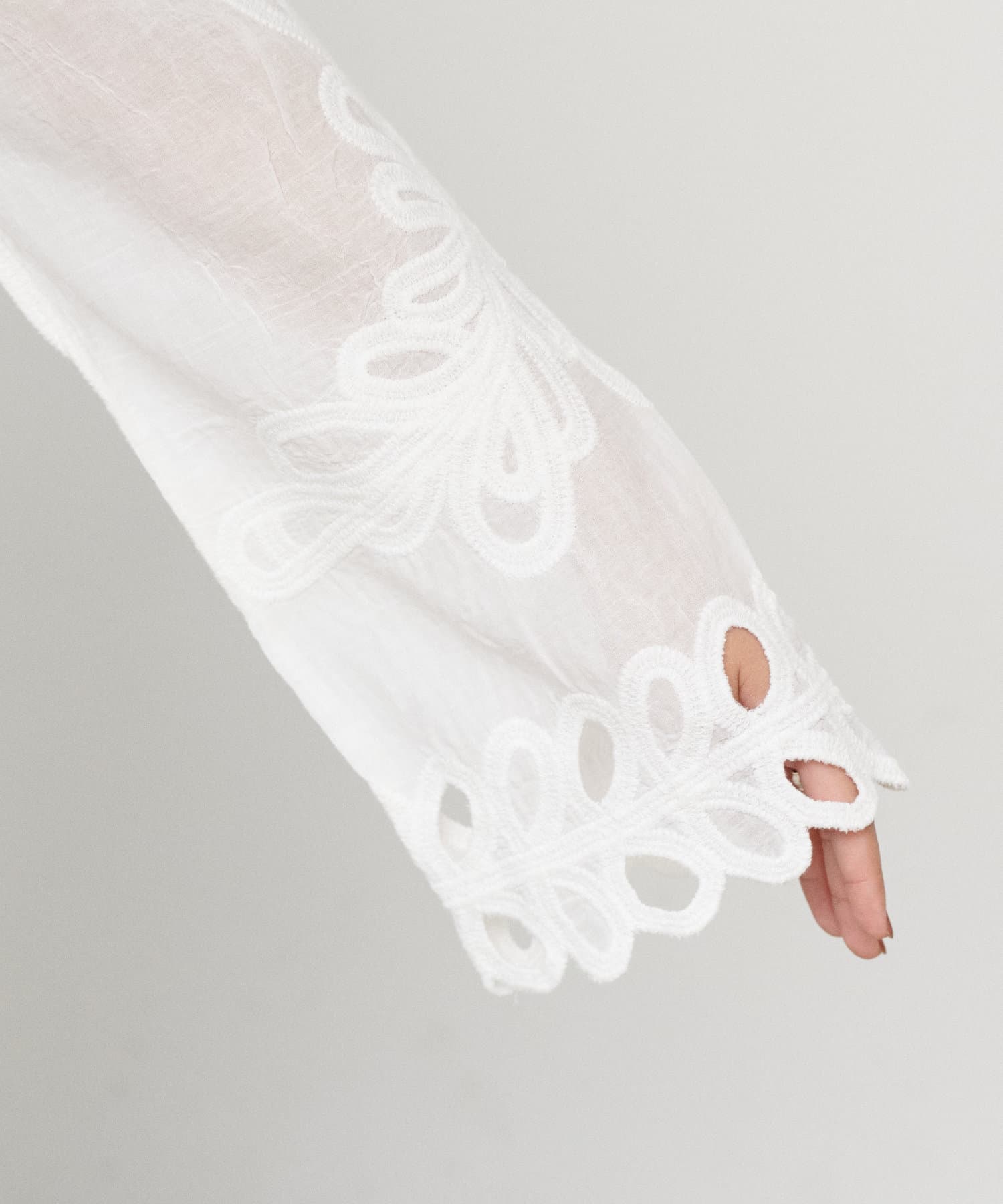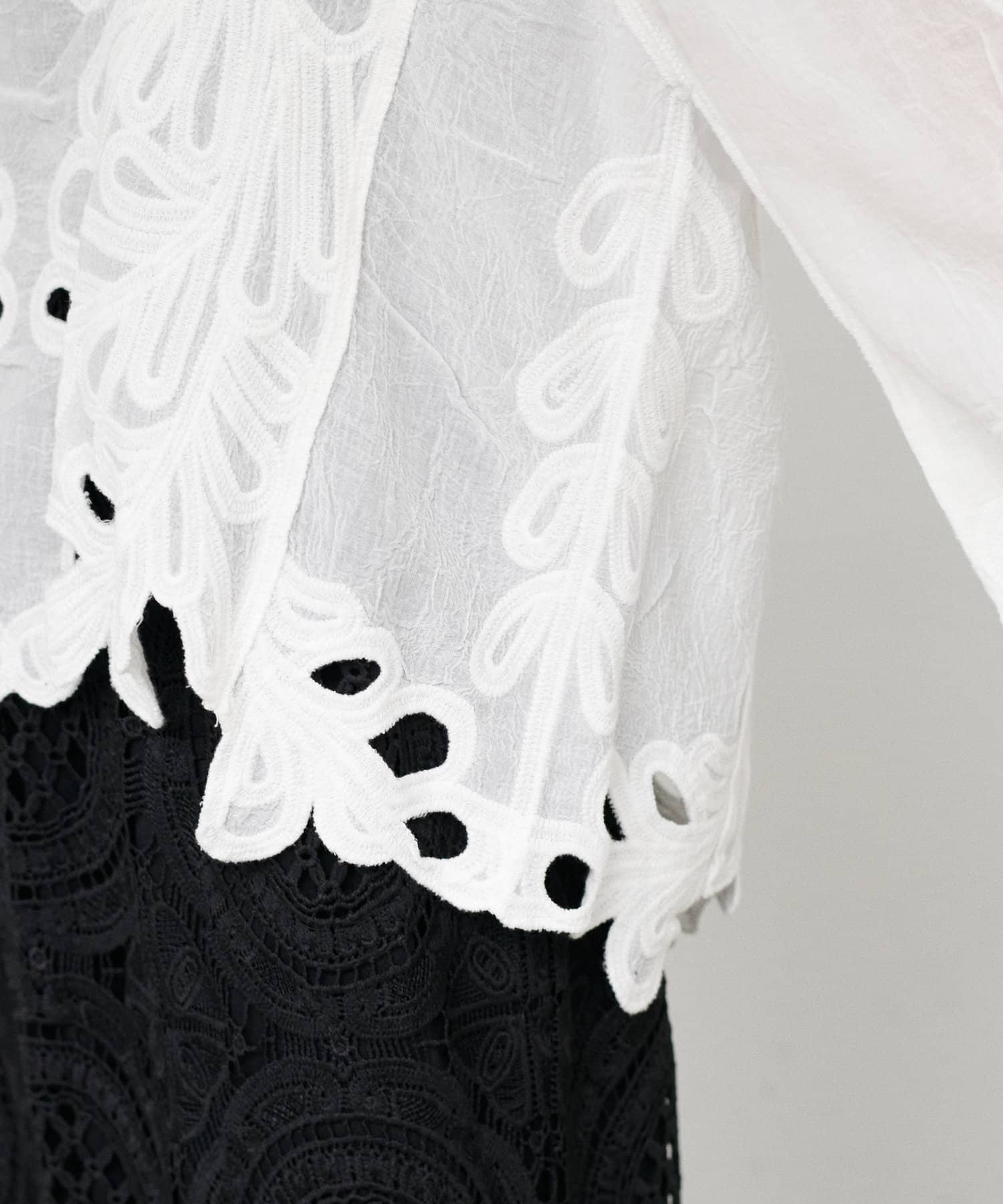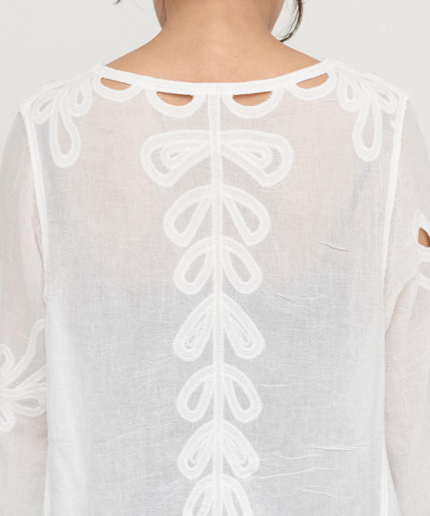 軽やかな透け感と繊細な刺繍が、大人の女性らしさを引き立てるトップス。