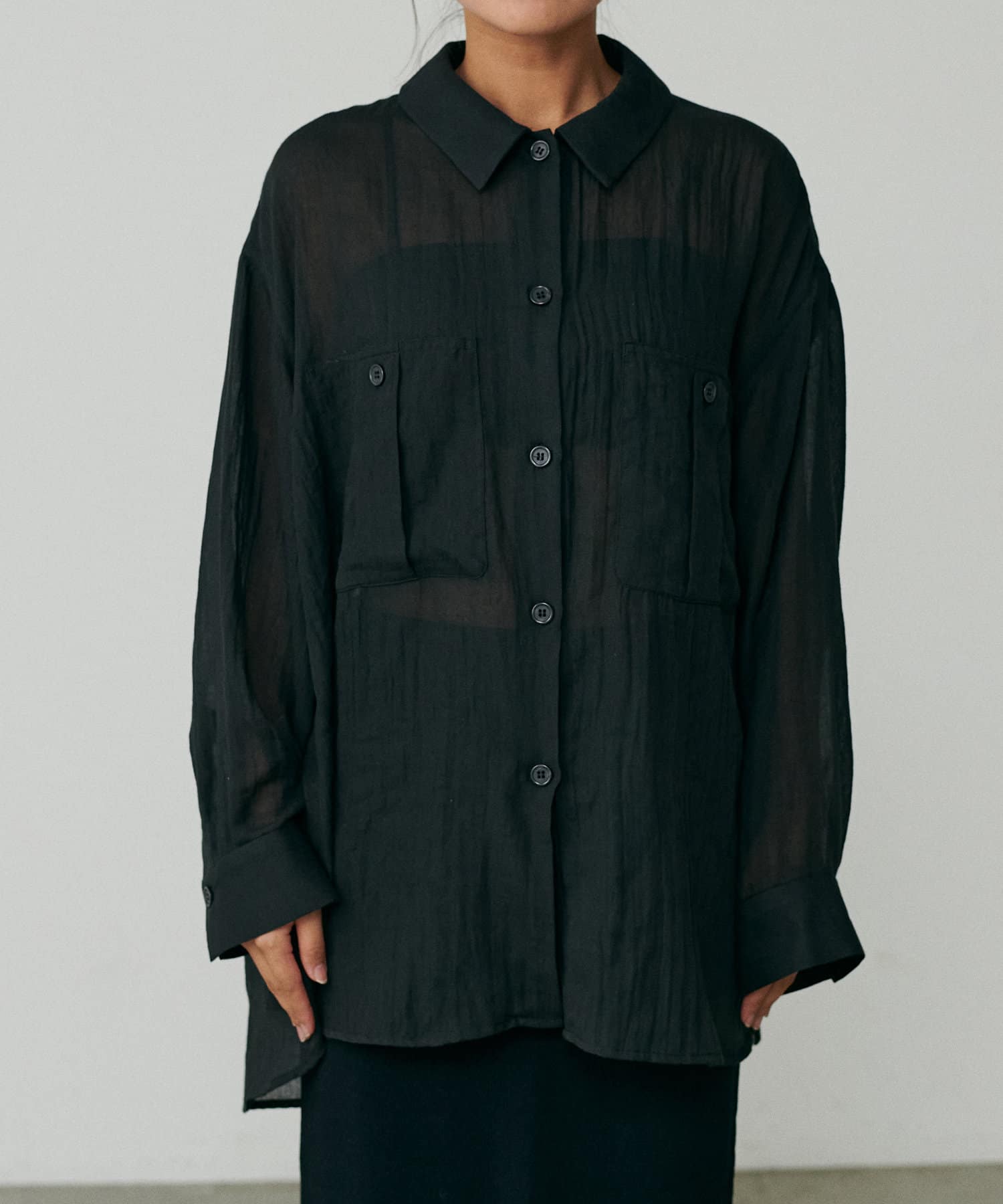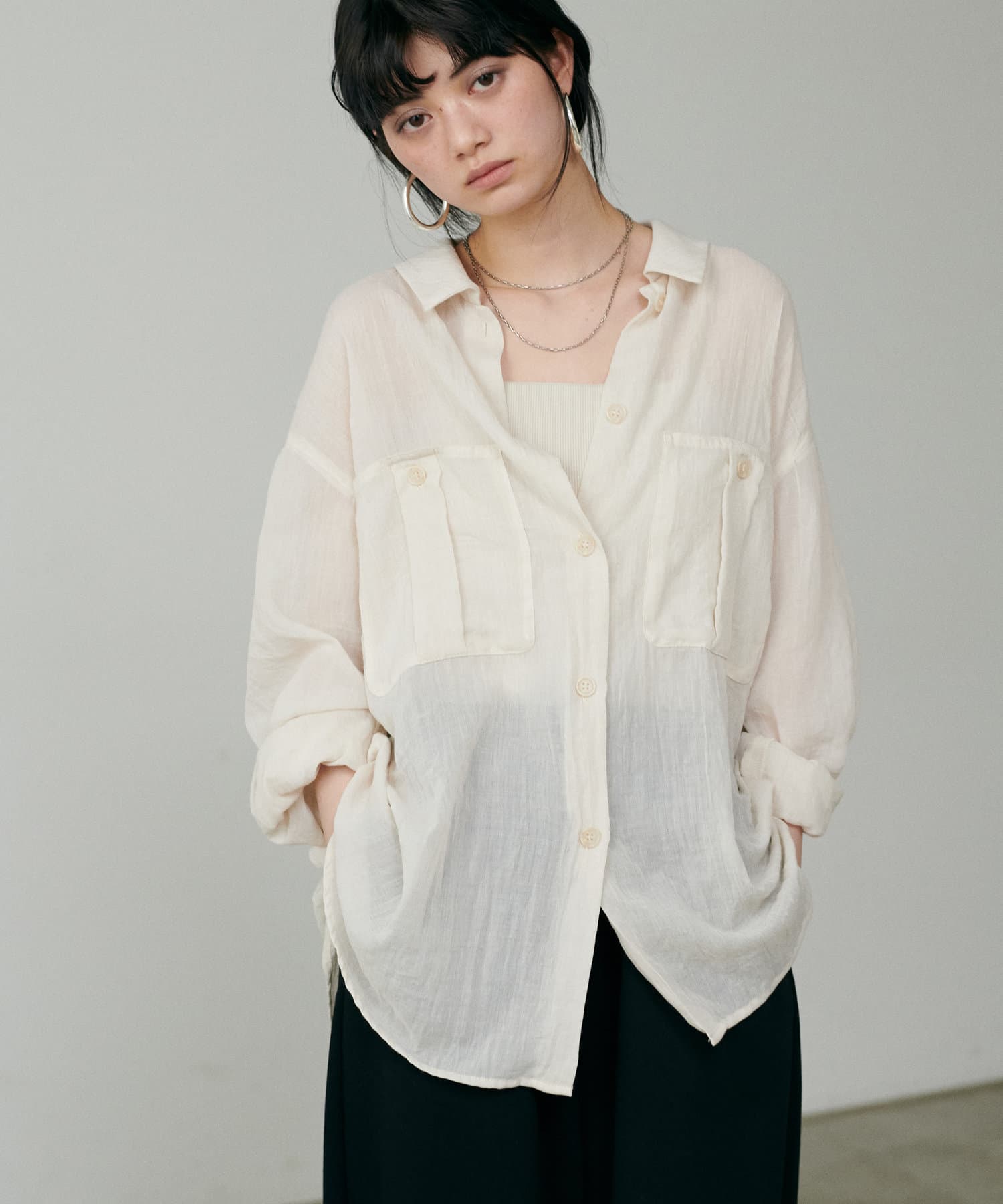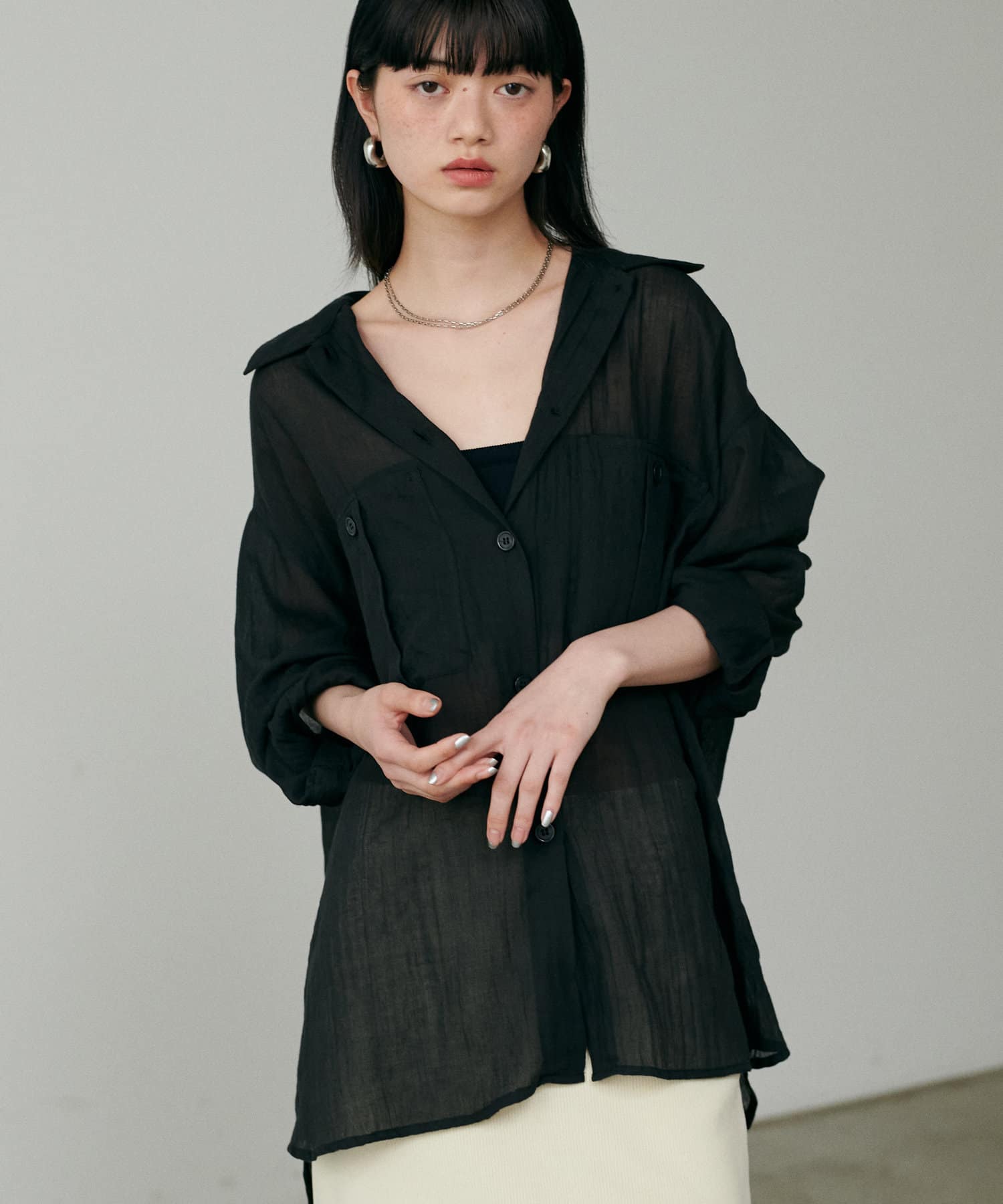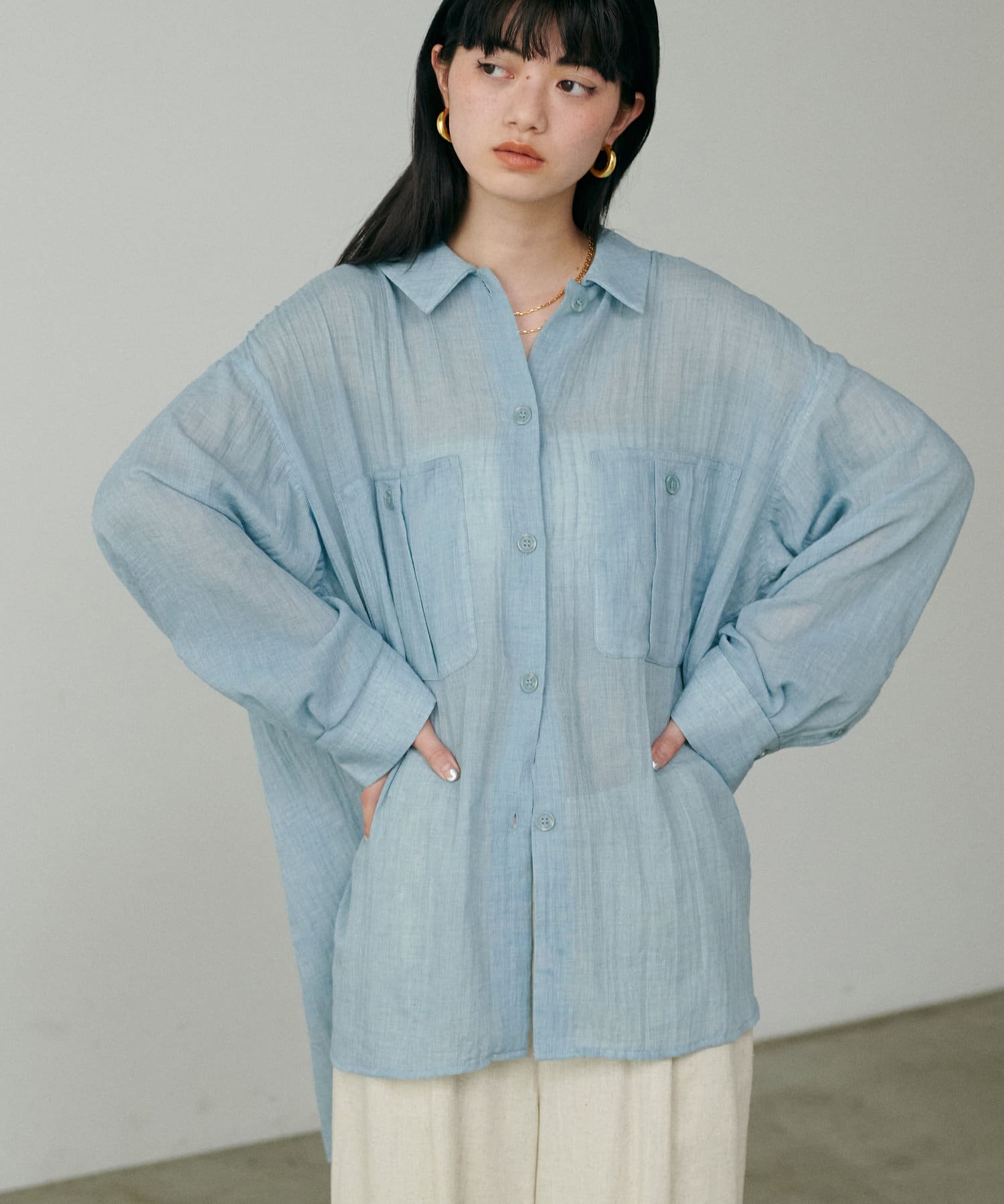 トレンドライクなシアー素材のオーバーサイズシャツ。