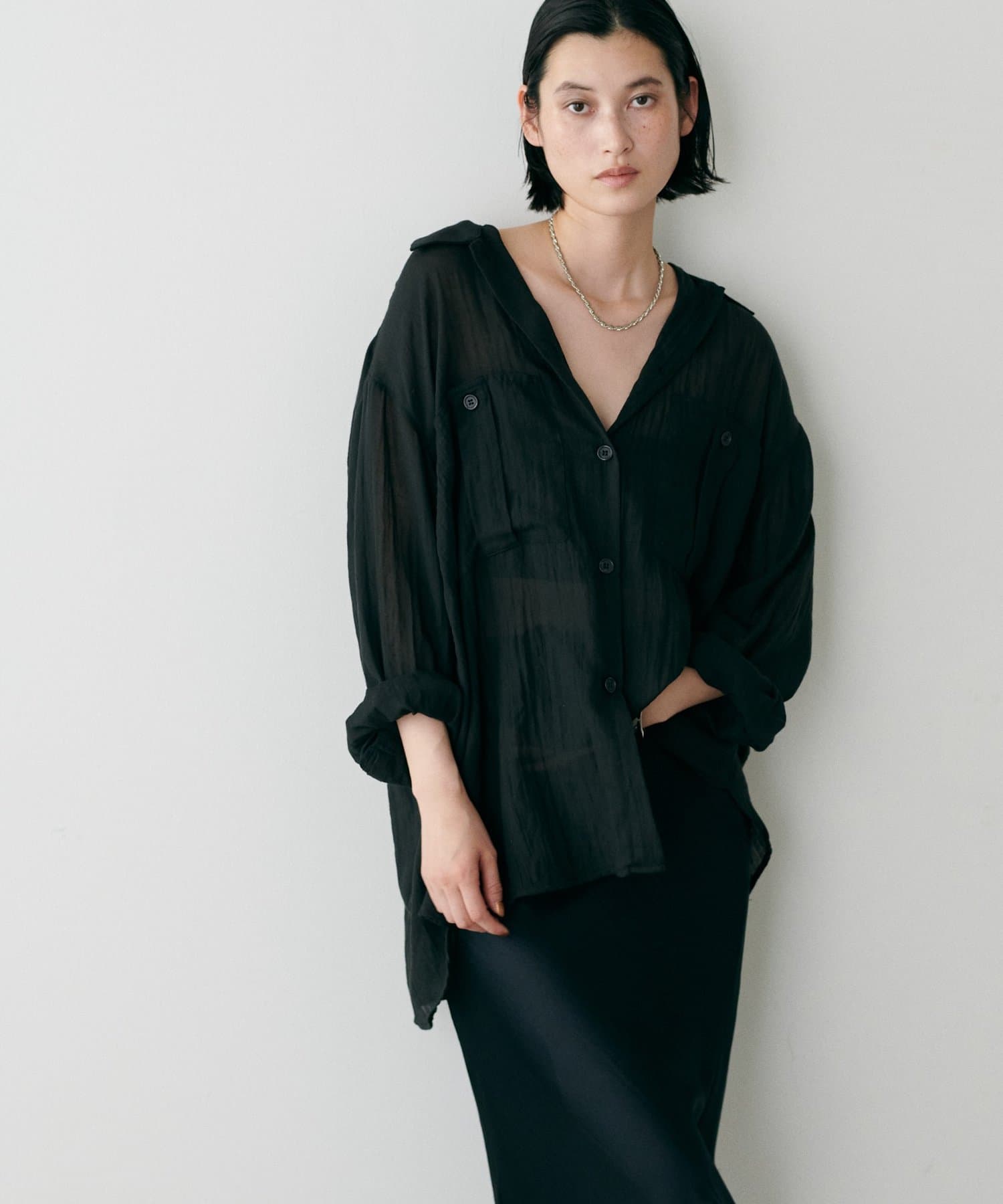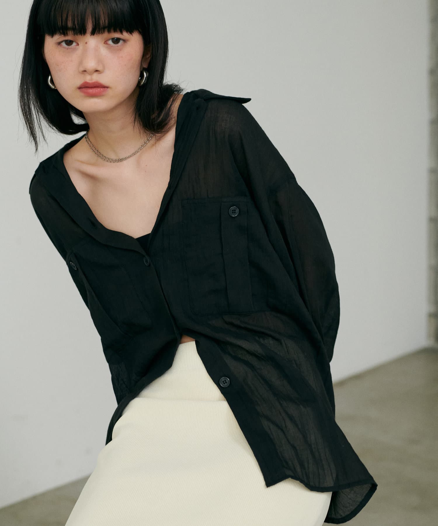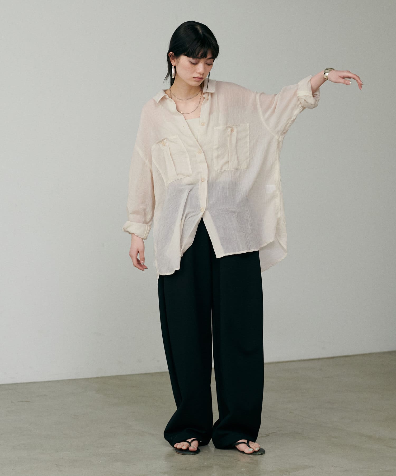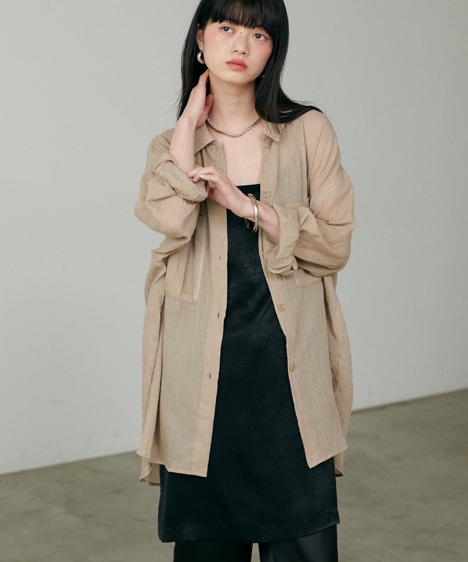 トレンドライクなシアー素材のオーバーサイズシャツ。