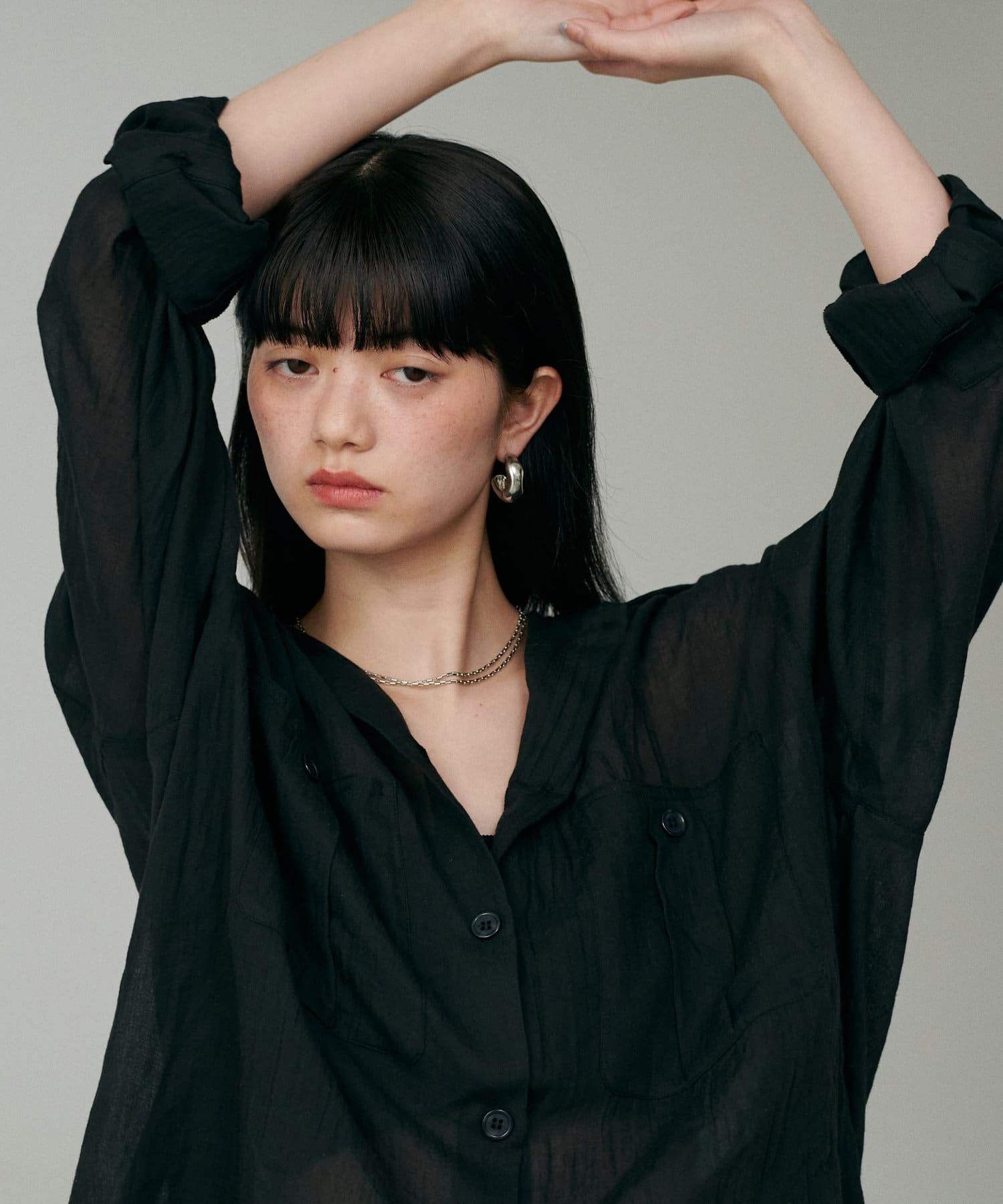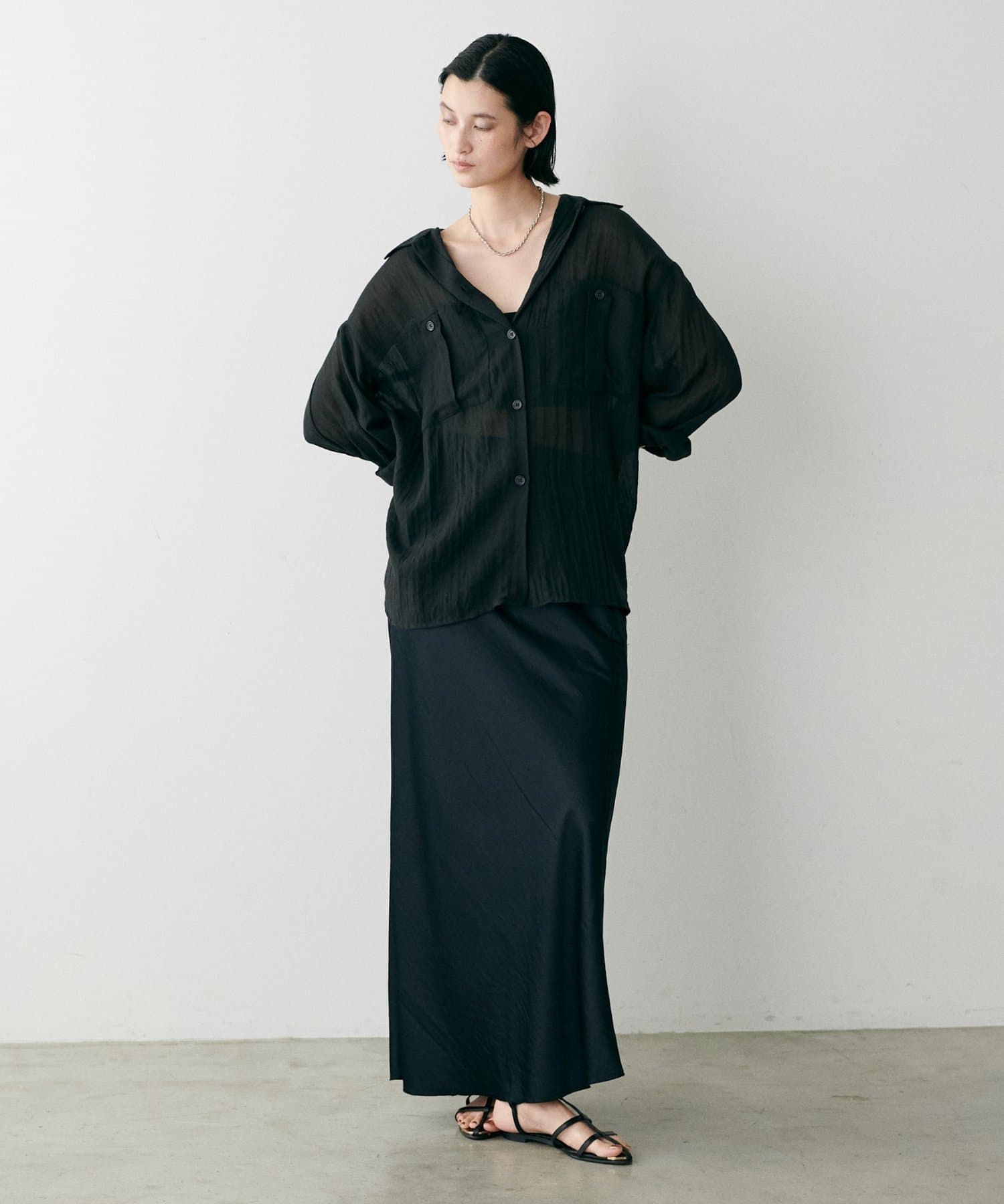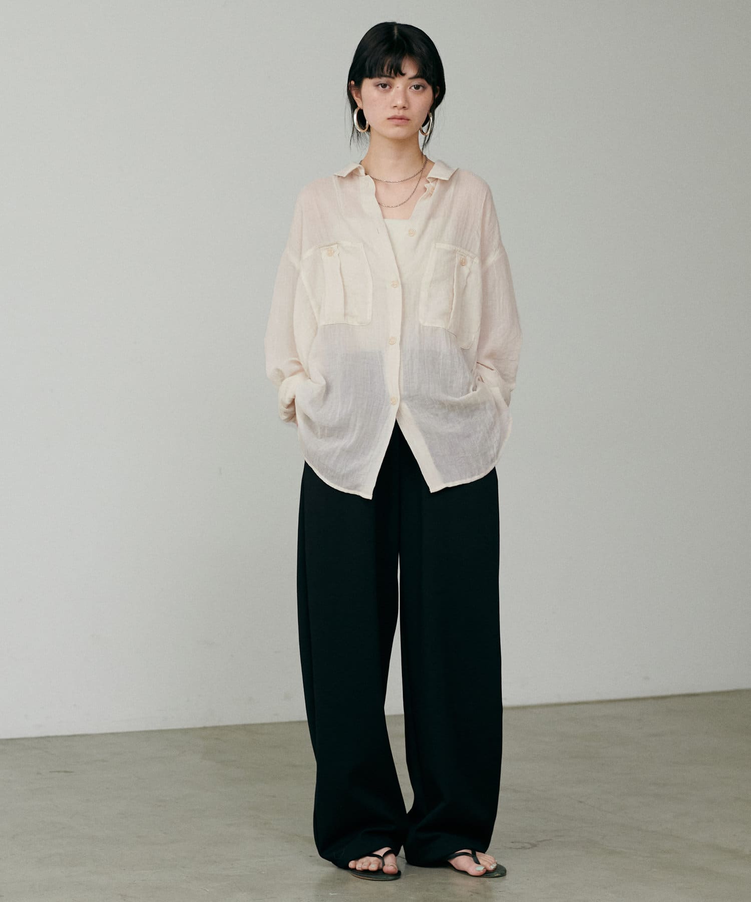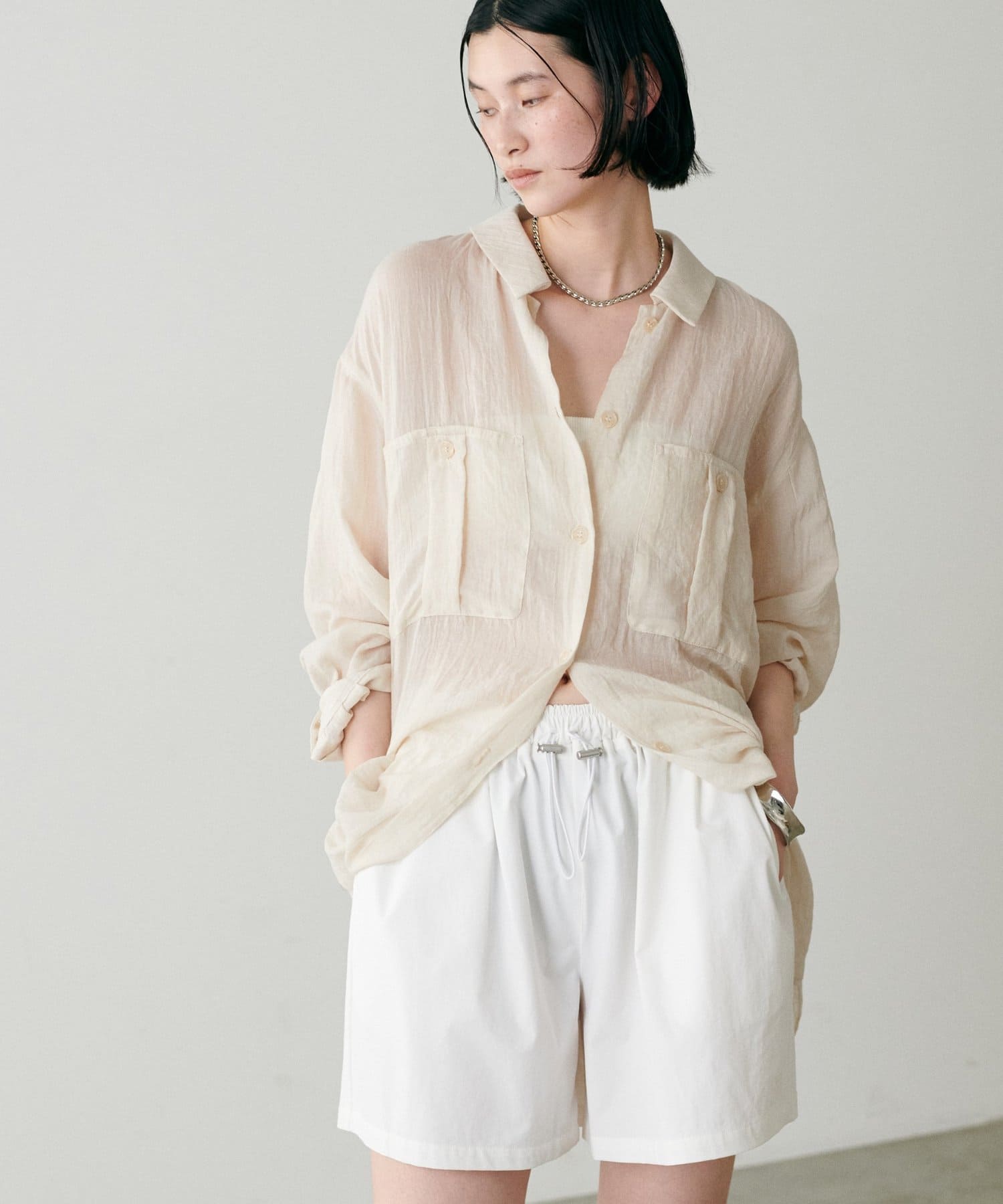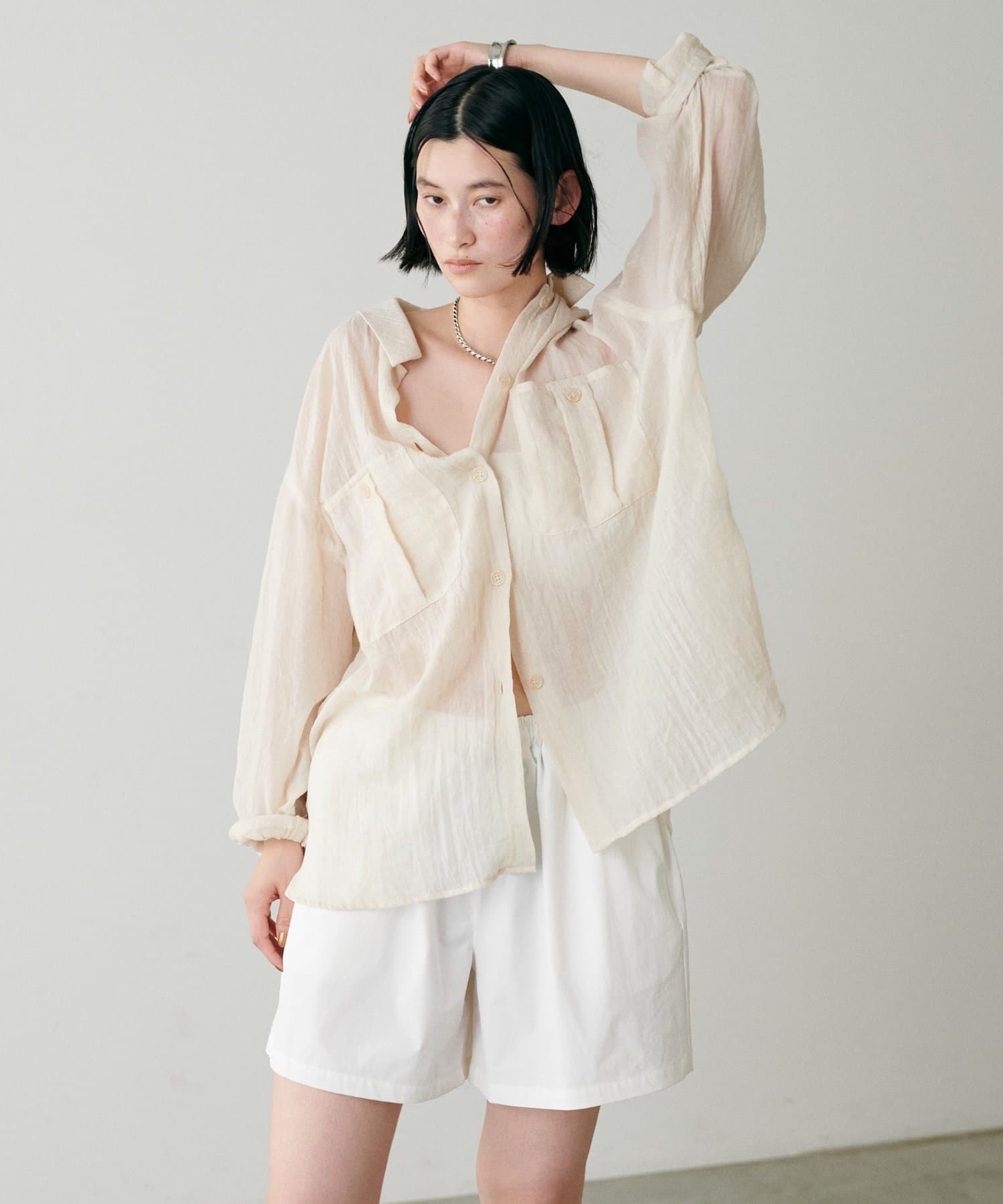 トレンドライクなシアー素材のオーバーサイズシャツ。