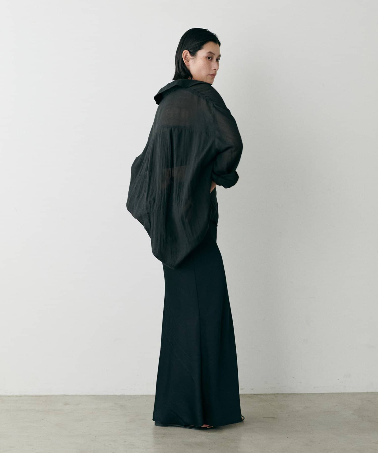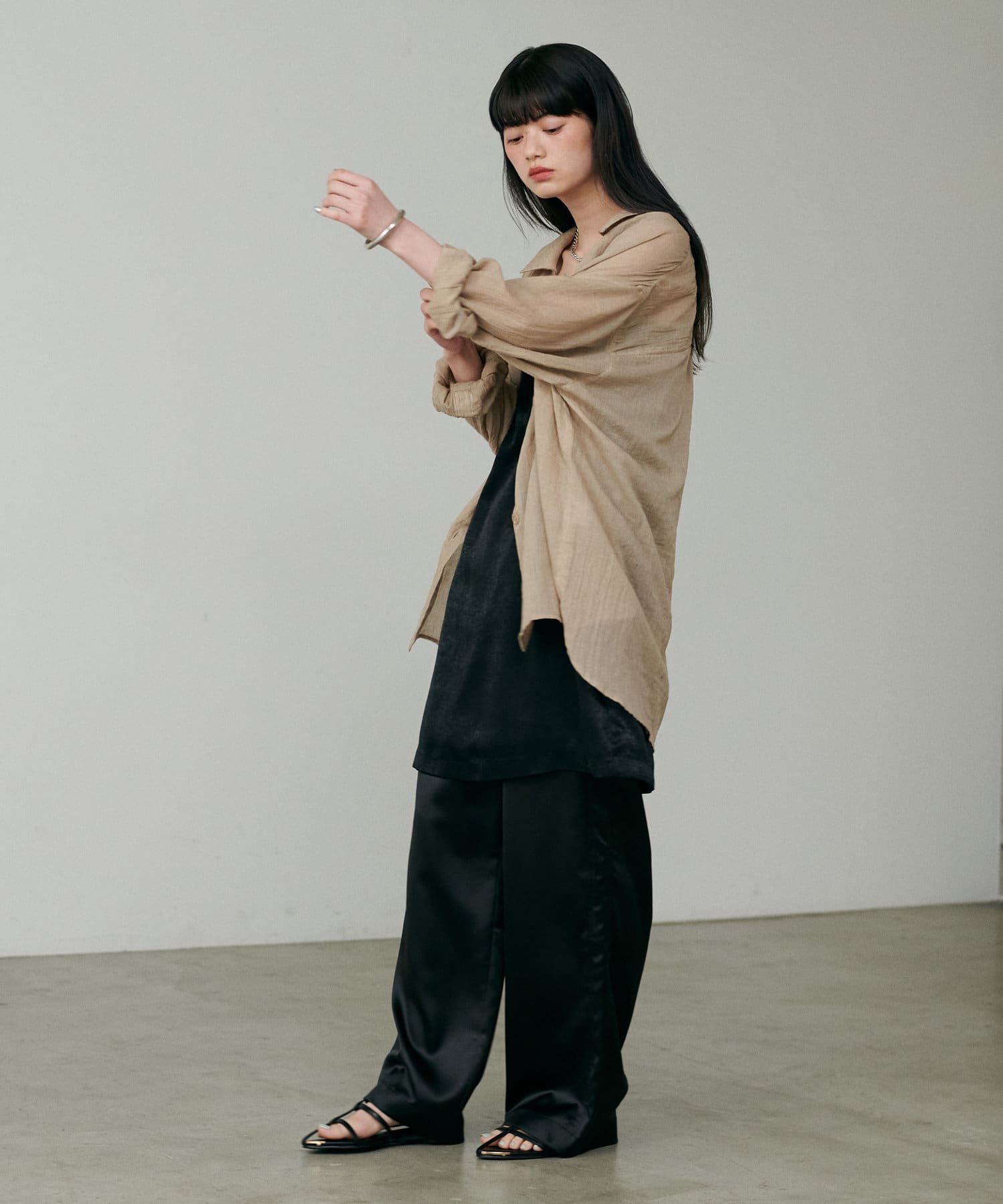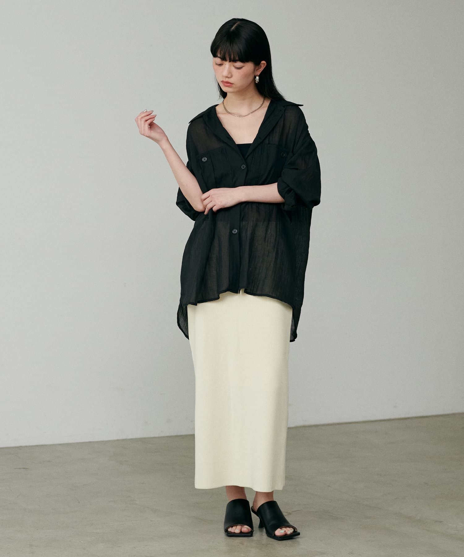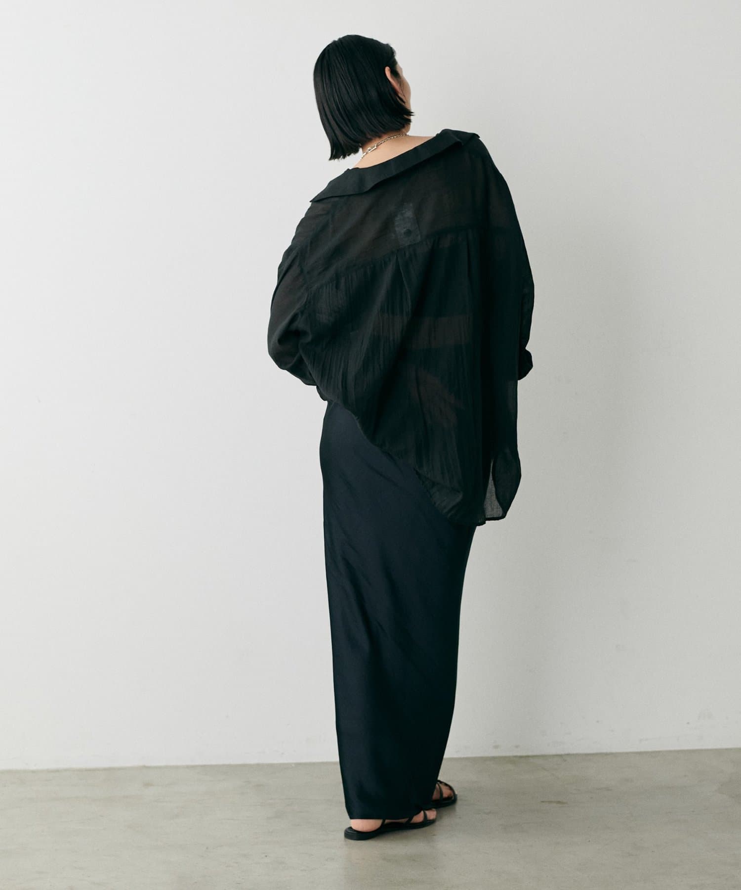 トレンドライクなシアー素材のオーバーサイズシャツ。