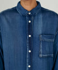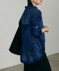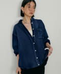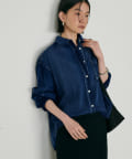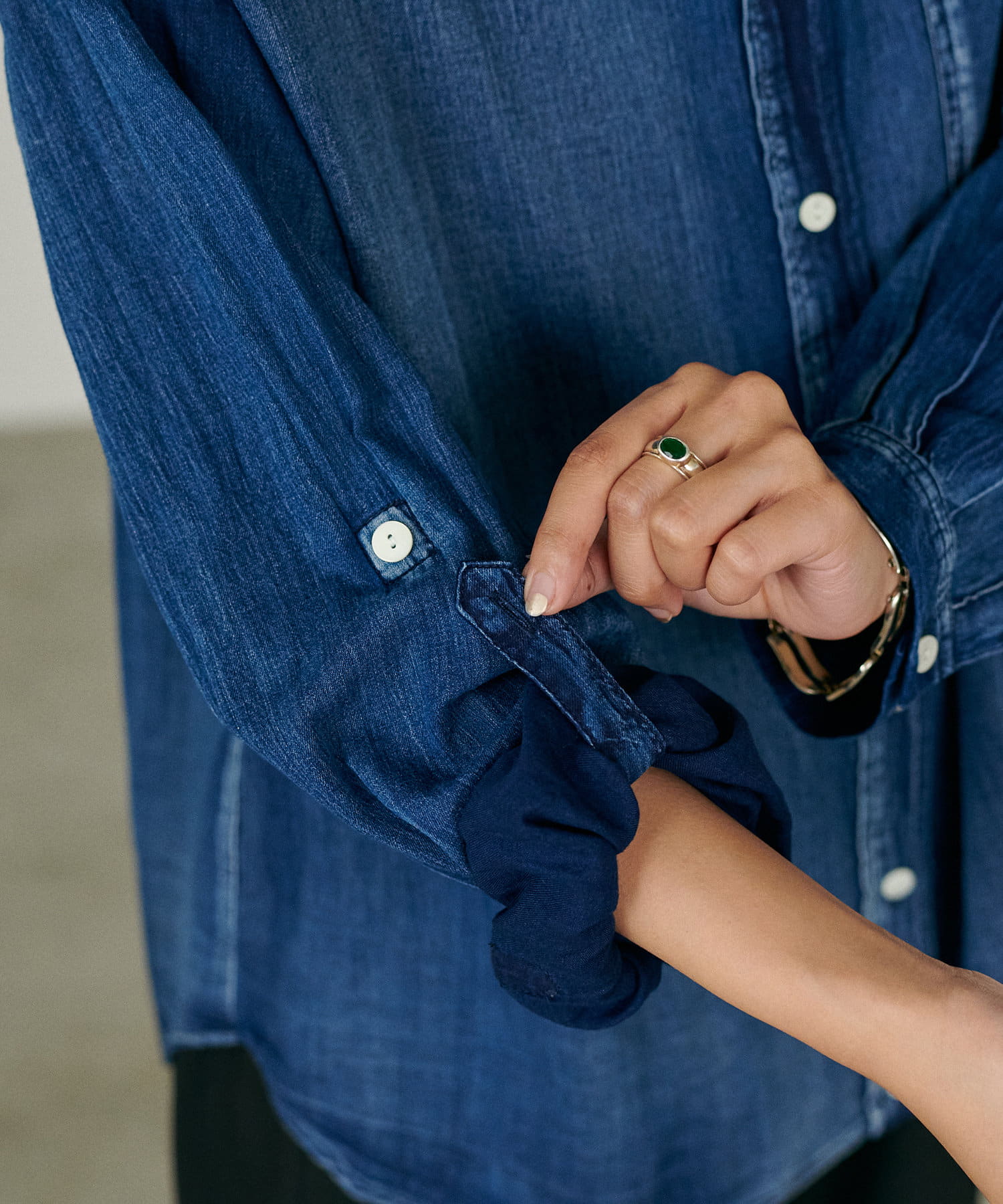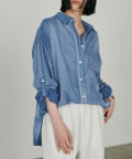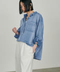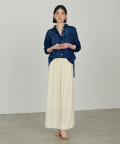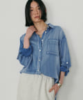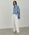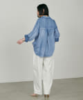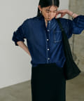 鮮やかなブルーのシャツなので、オフ系やカラーのアイテムとの相性が◎。