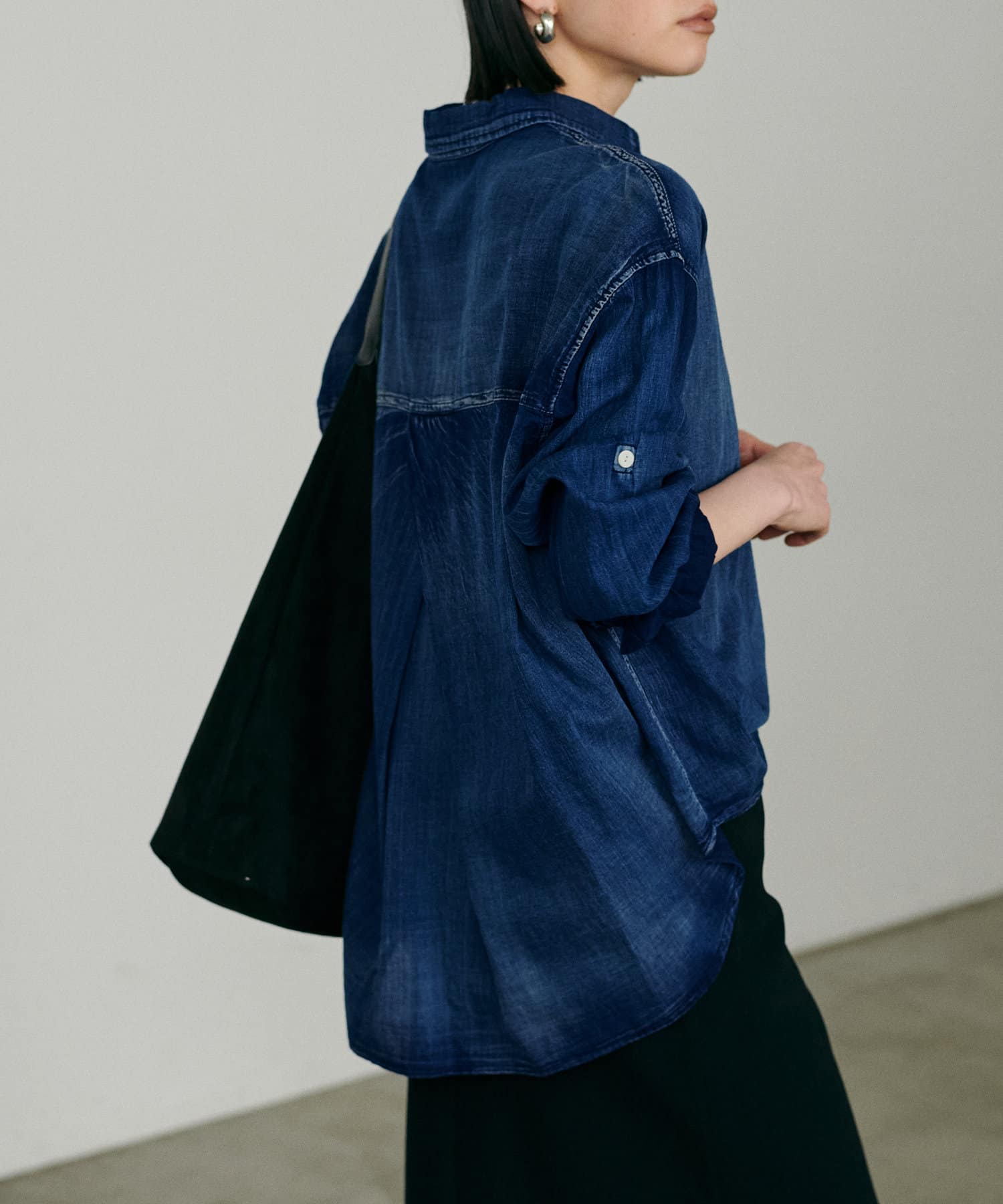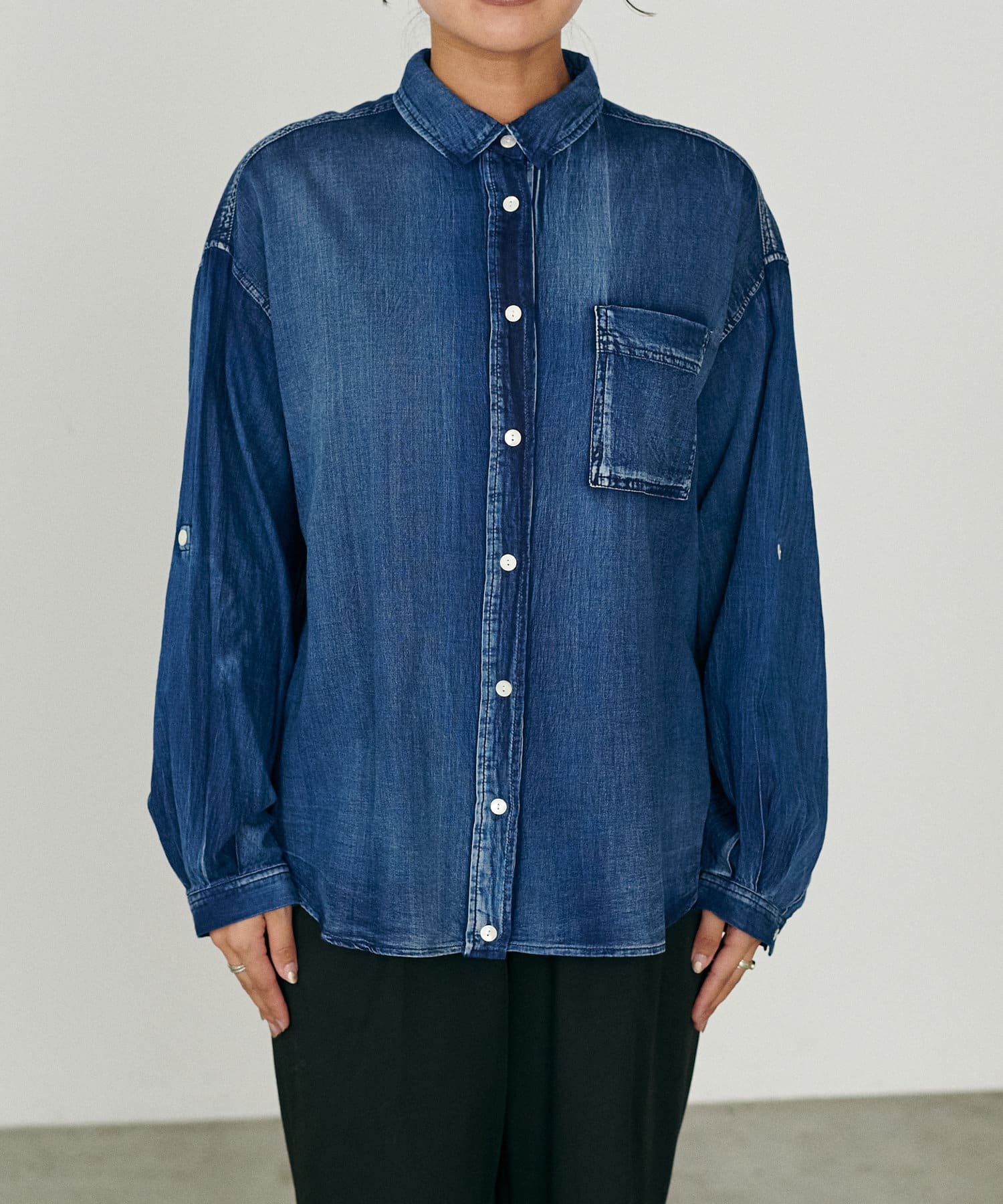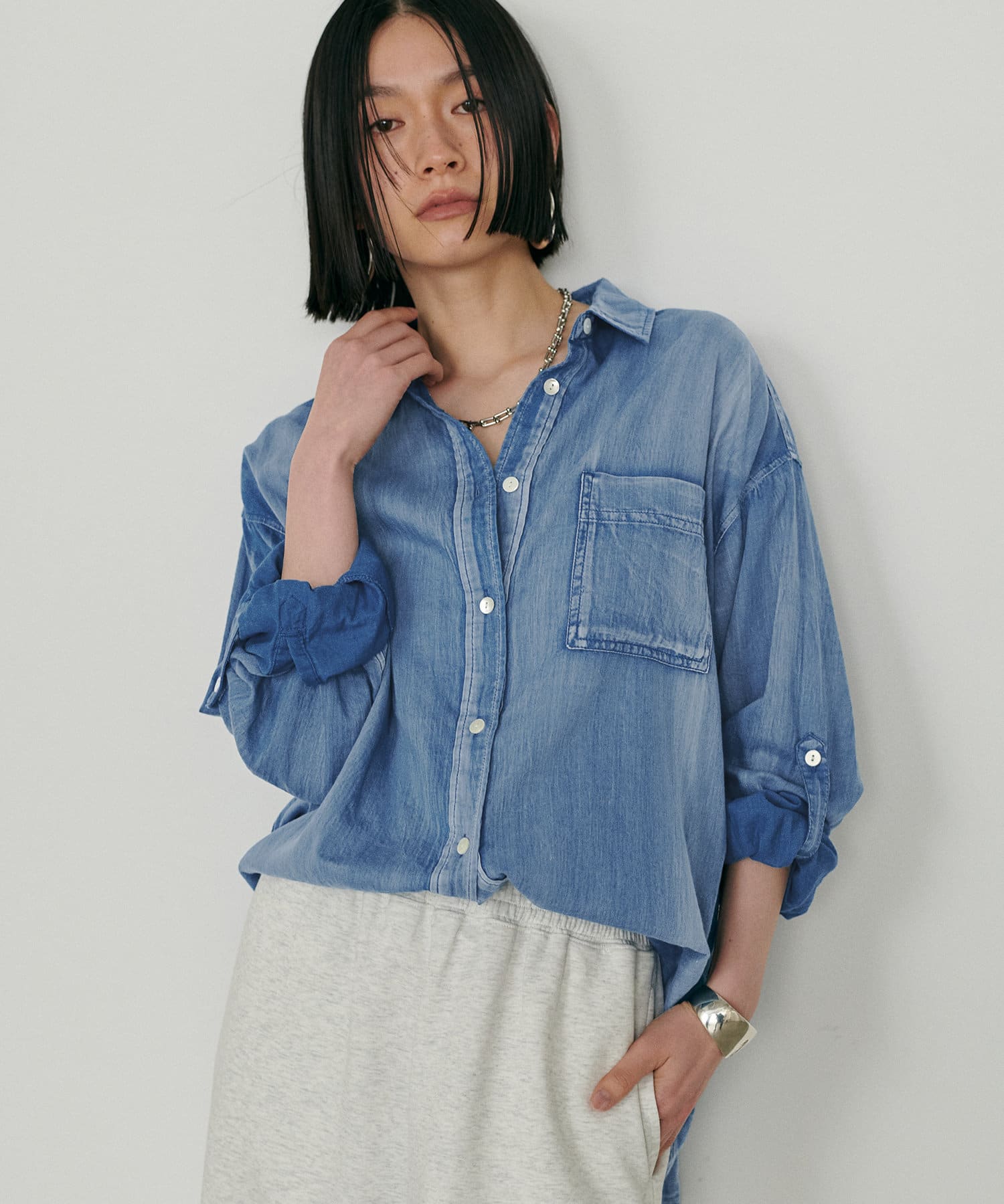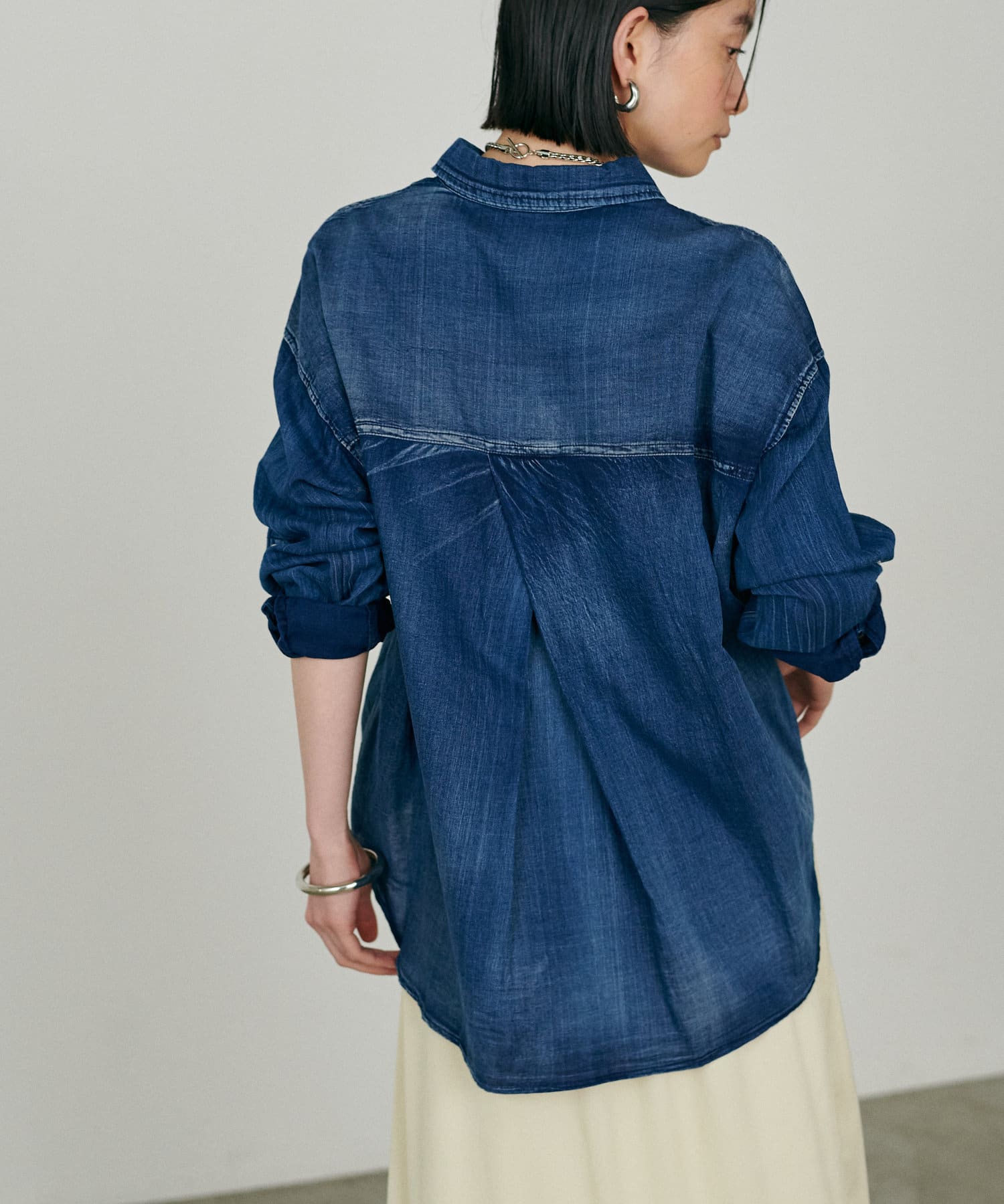 デニム風の染めをしていますが夏場も着られる薄手のお素材が特徴!