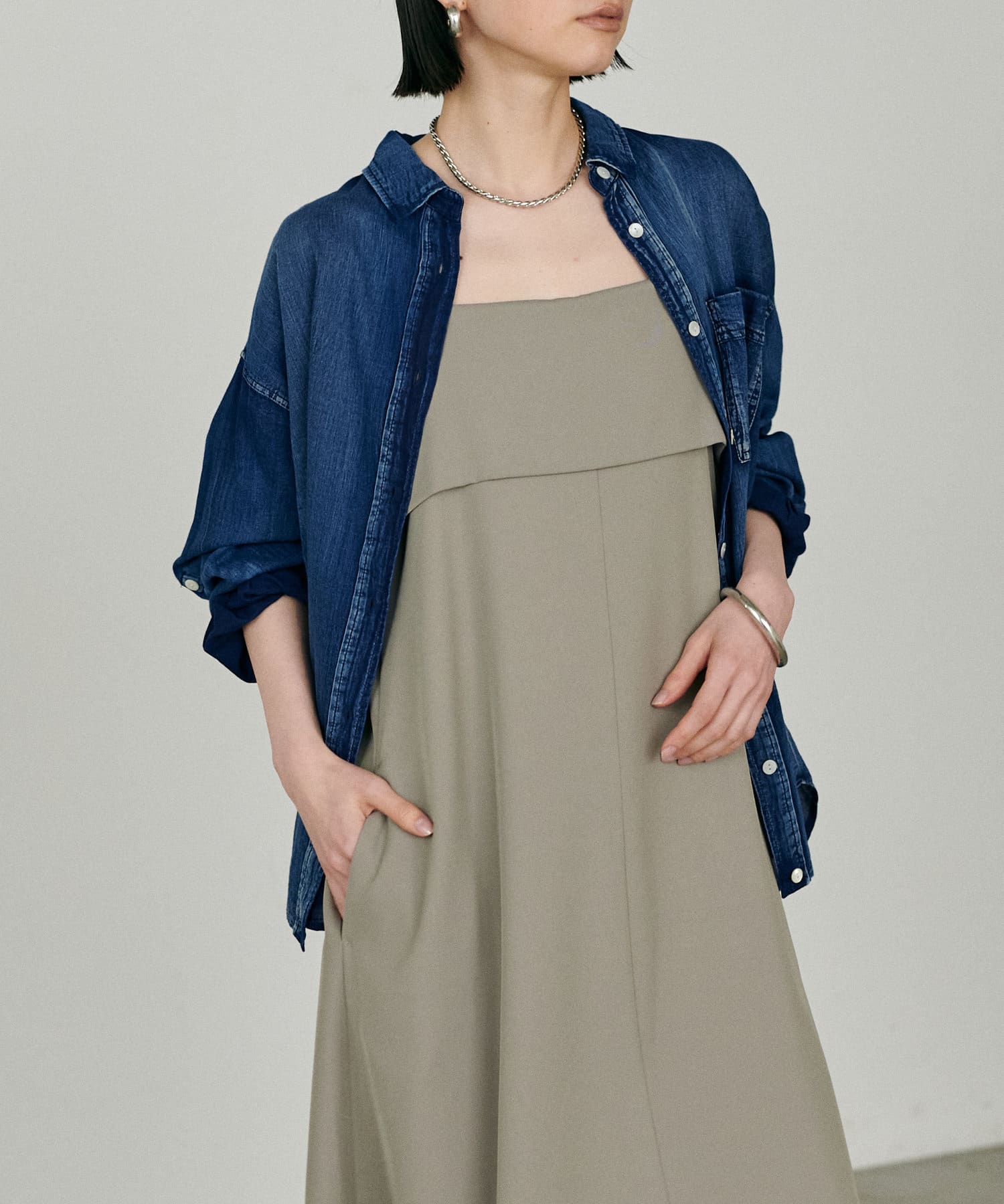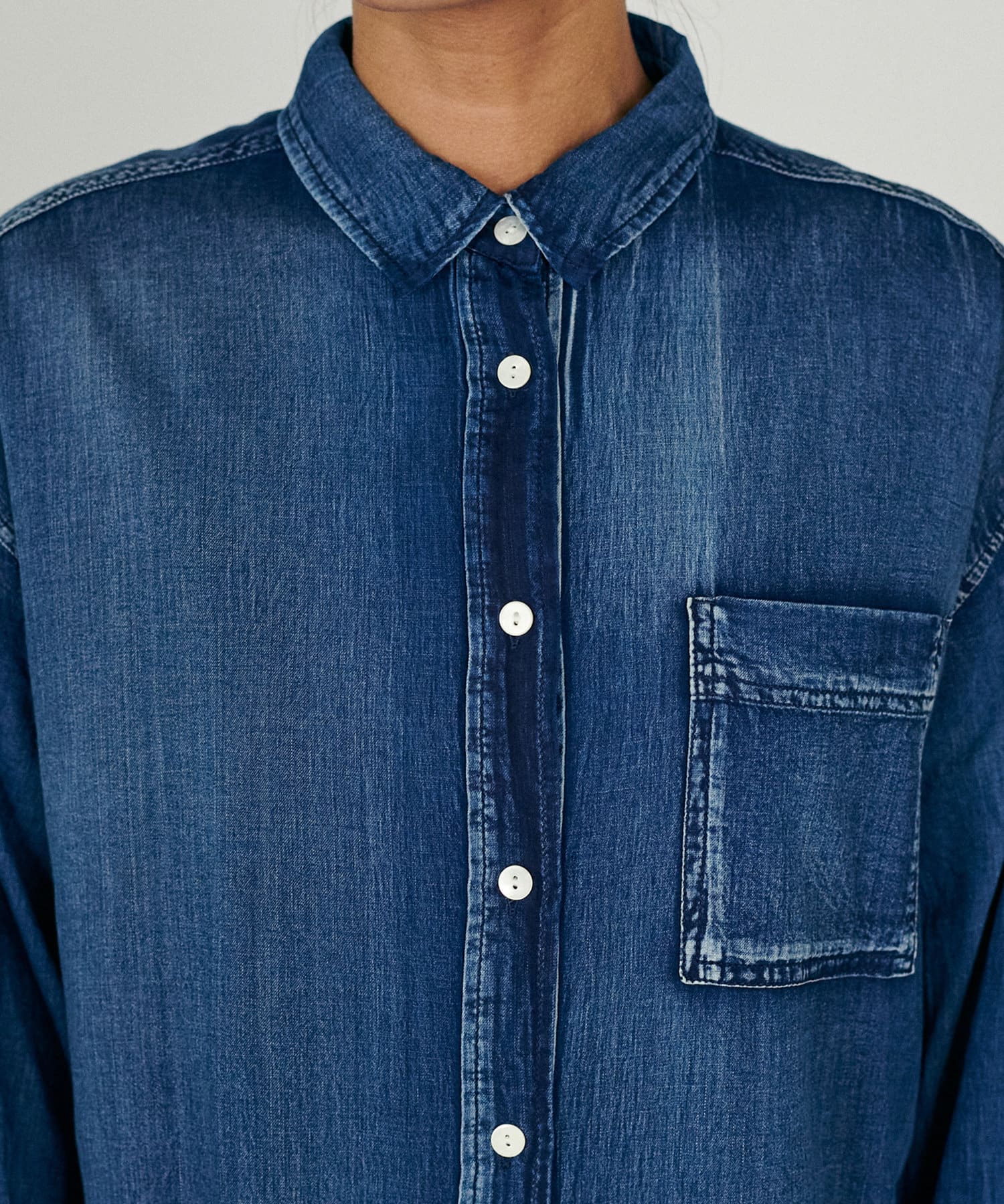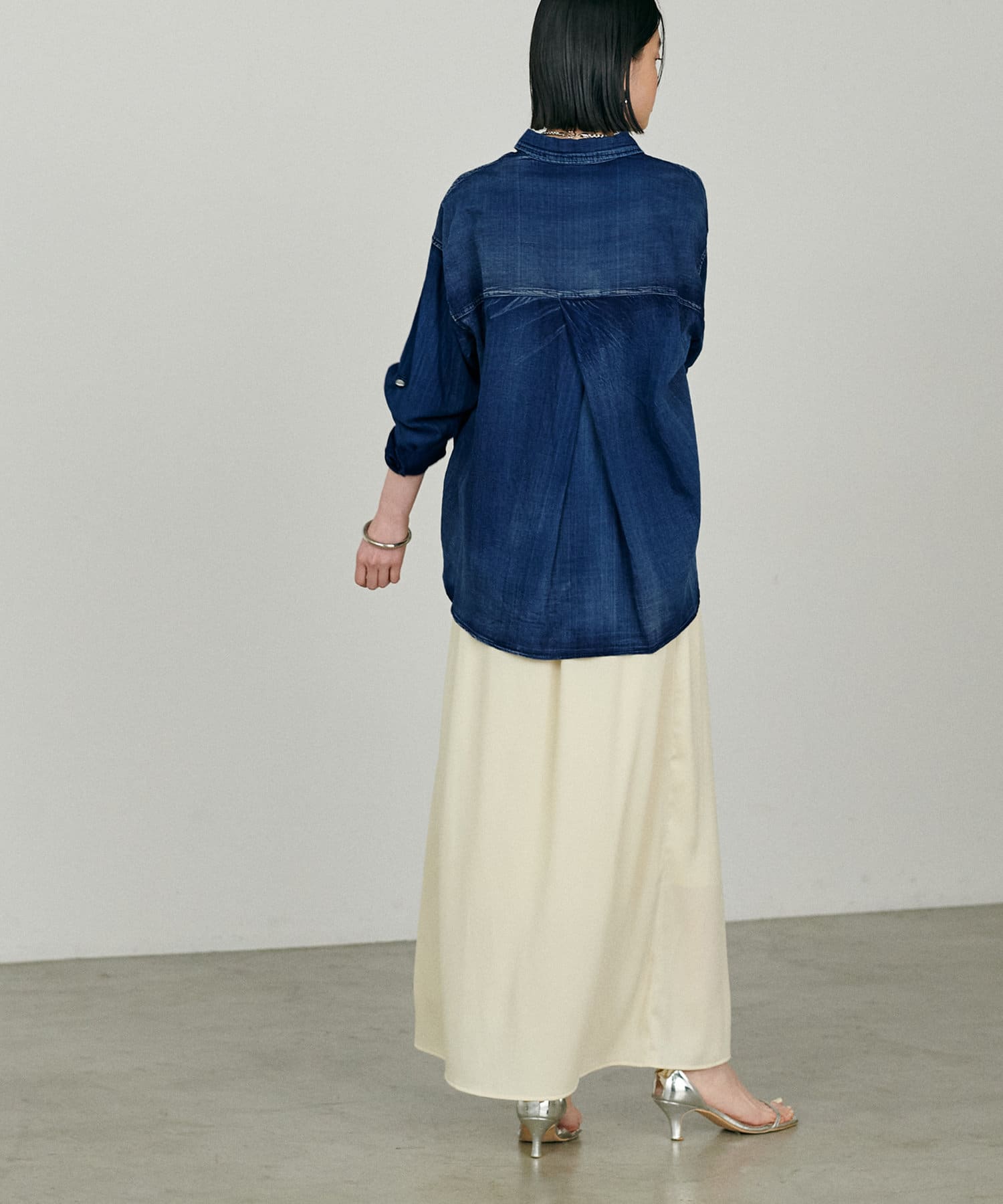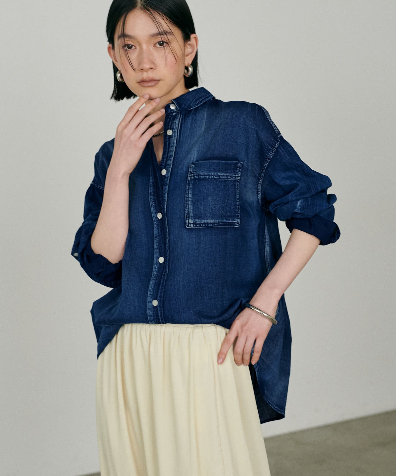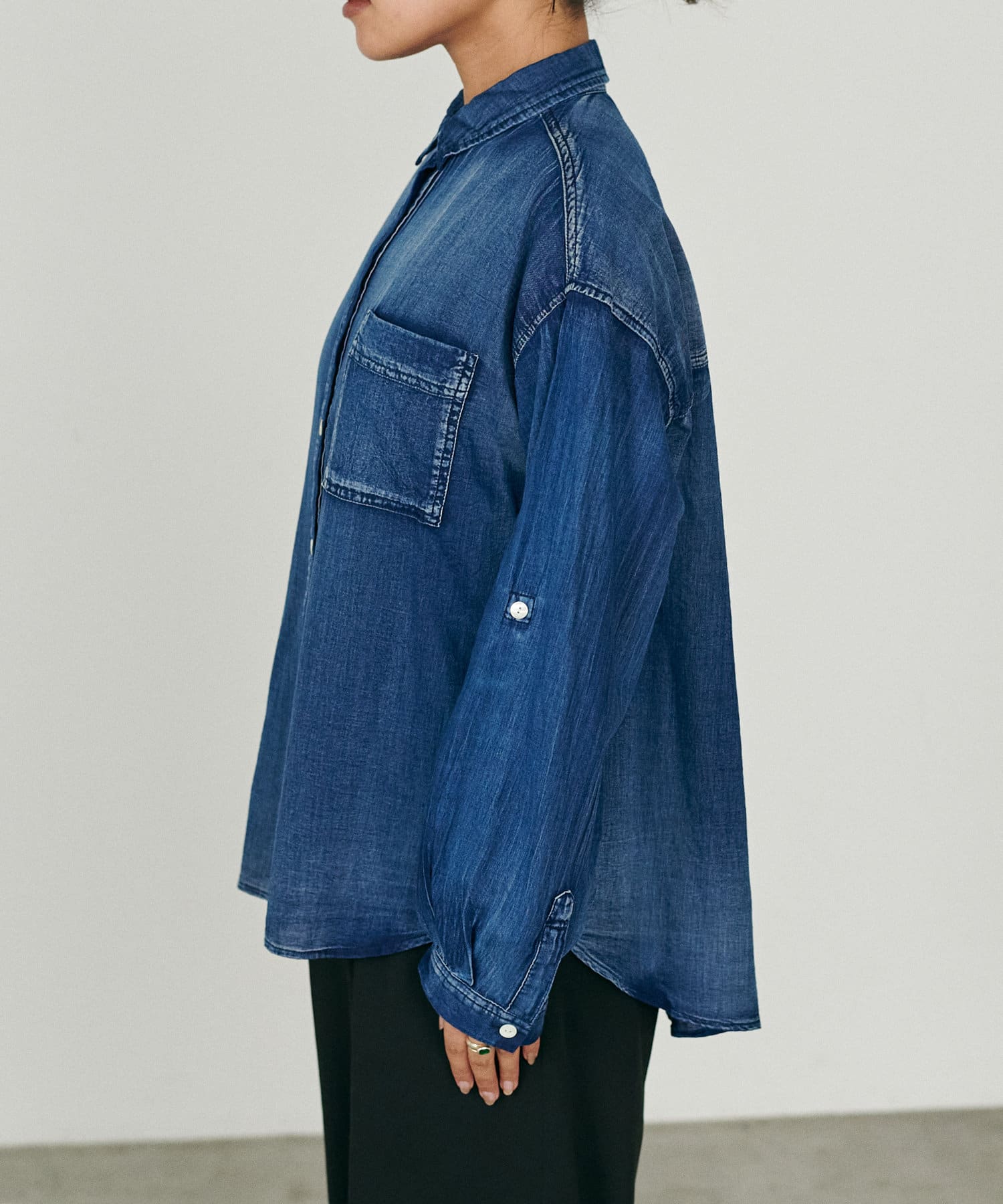 デニム風の染めをしていますが夏場も着られる薄手のお素材が特徴!