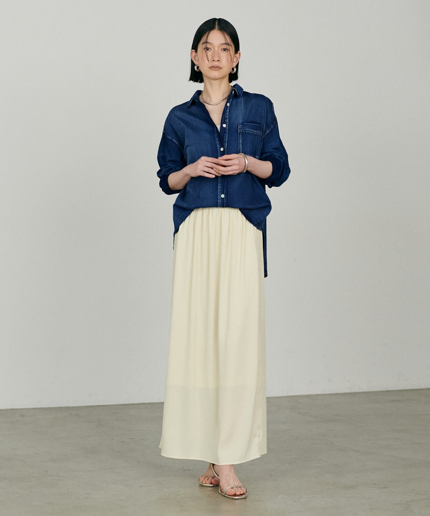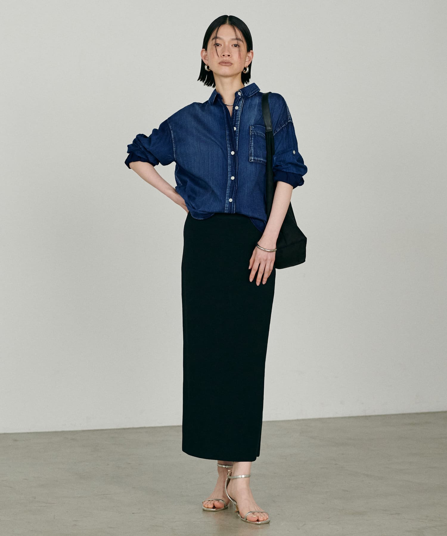 デニム特有のハリ感がなく、身体のラインに綺麗に馴染むのが特徴。